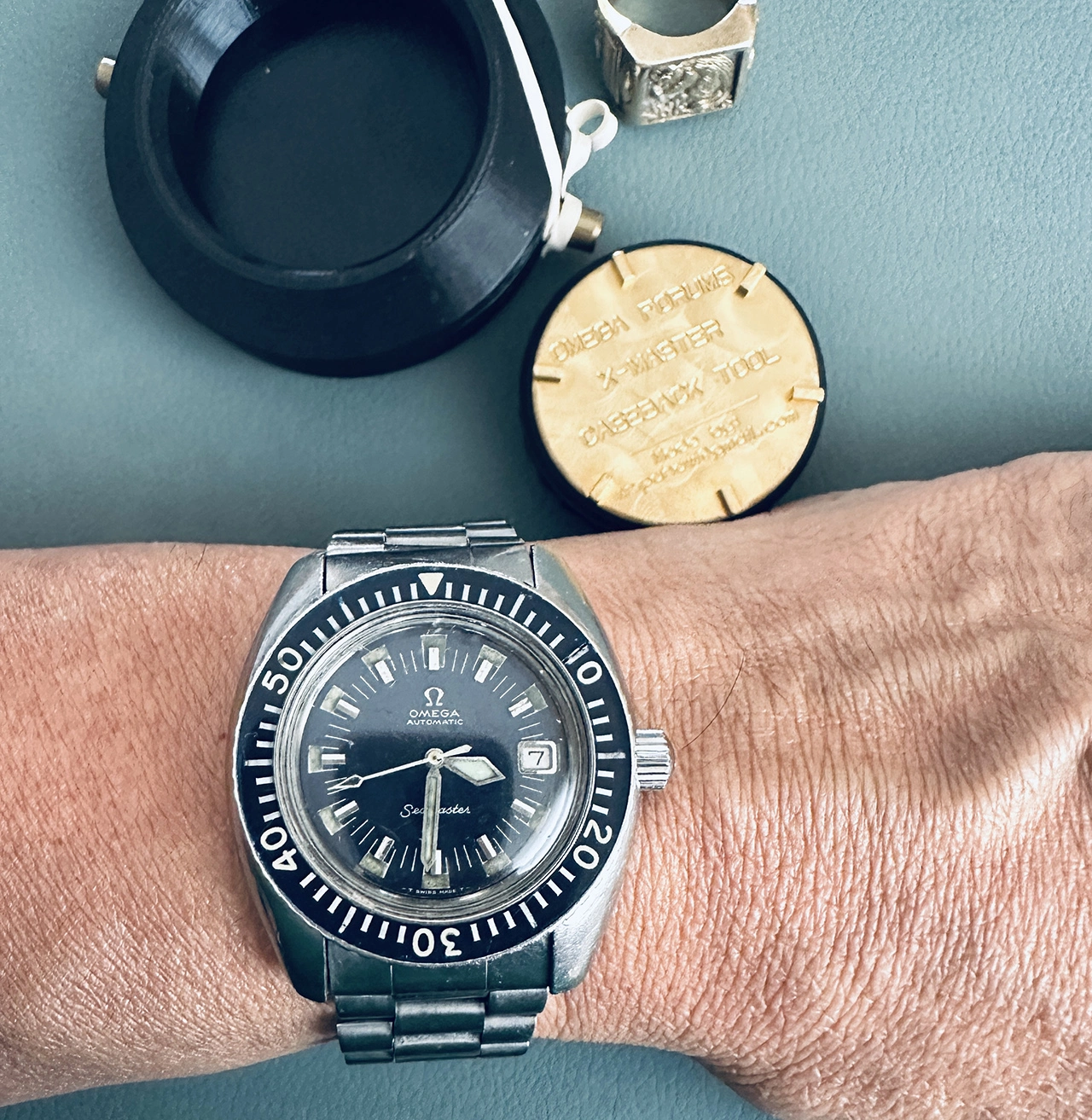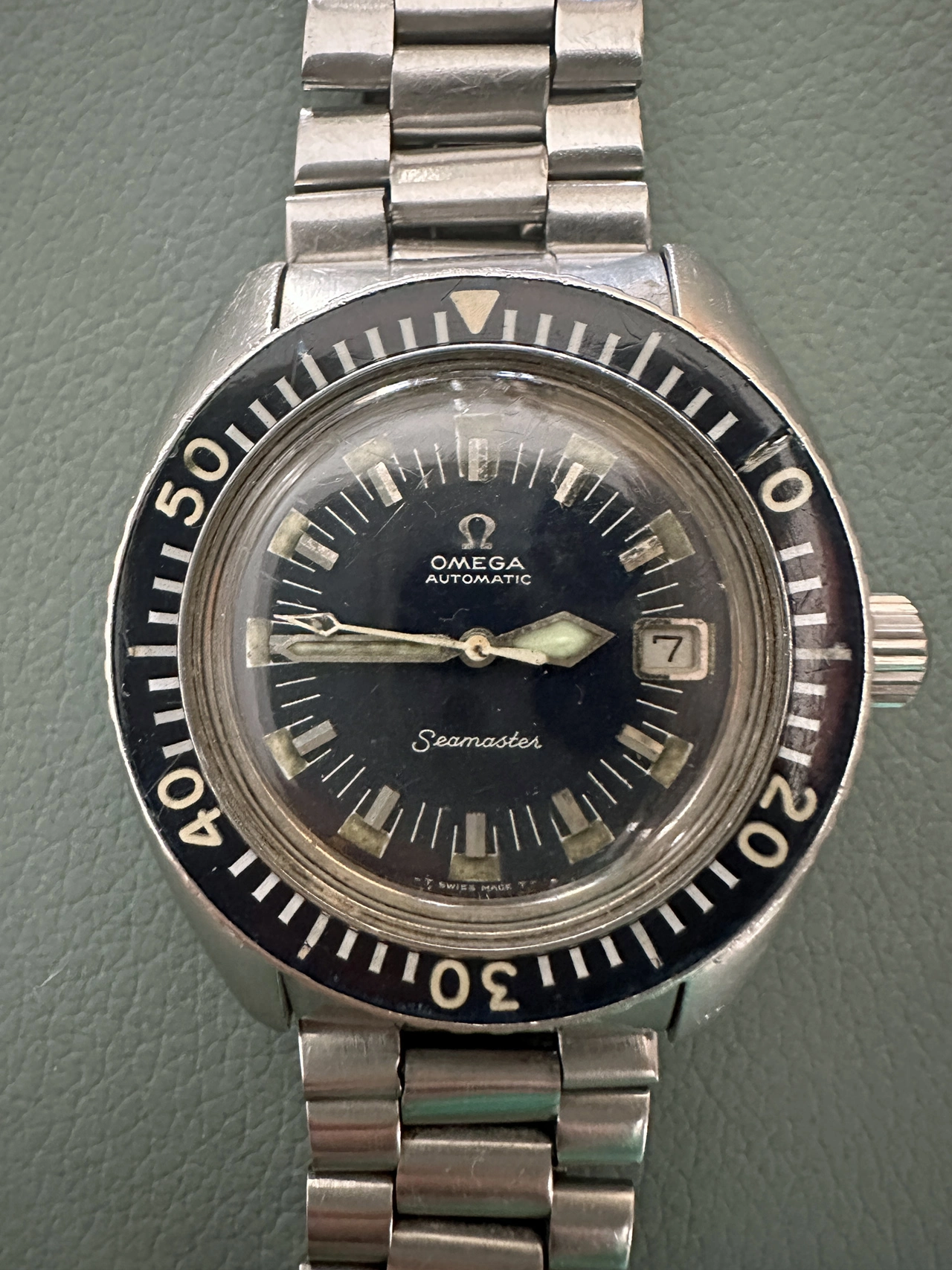·As some of you may recall, last month was the annual Original Miami Beach Antique Show (OMBAS). It’s a big time watch expo, mostly very high end watches like Rolex and Pateks, but you see a lot of Omegas as well. Luckily I live in Miami so I go there every year. Last few years I’ve purchased at least one vintage Omega per show. This year I got an Omega Seamaster 120 Deep Blue 166.073. The serial number is 29,422,### which puts it at 1969 as the year of manufacture. Really happy with it.