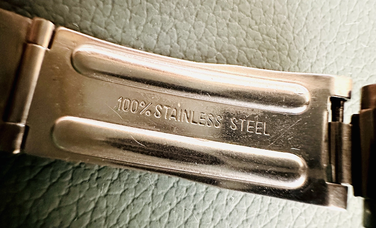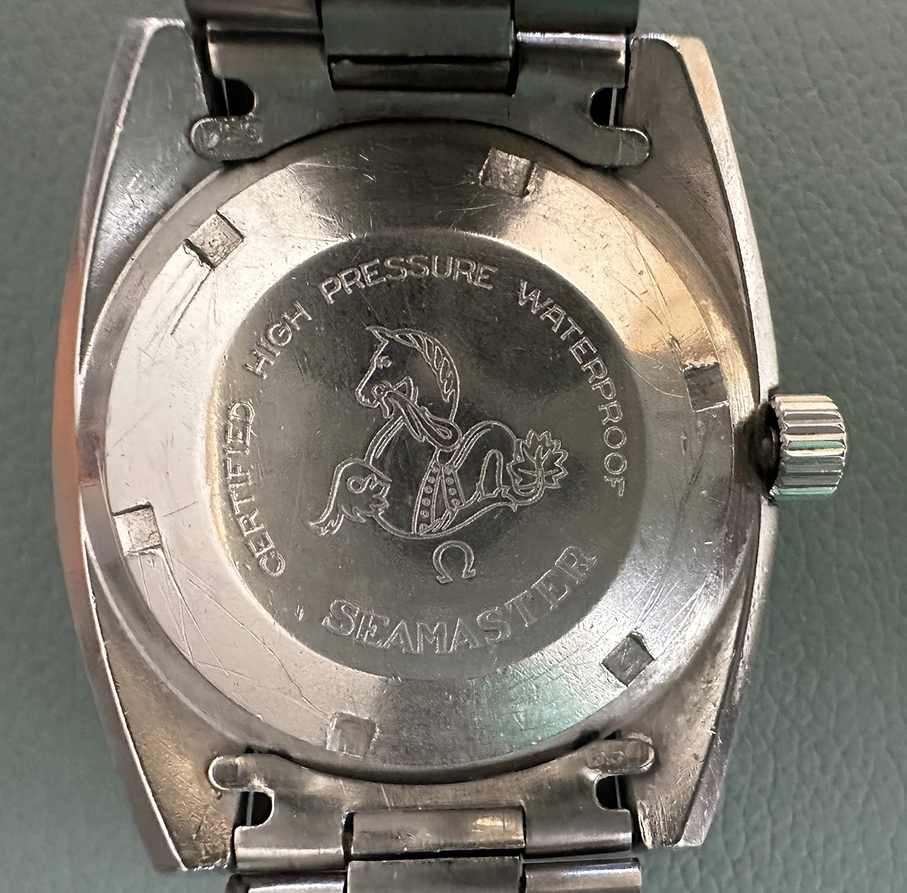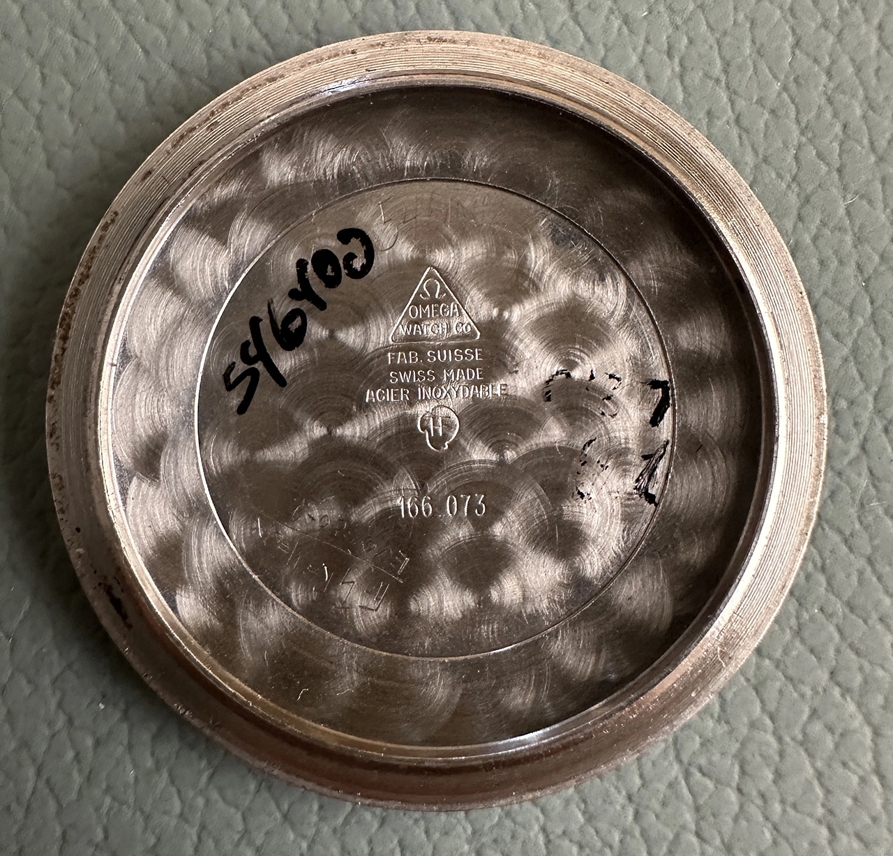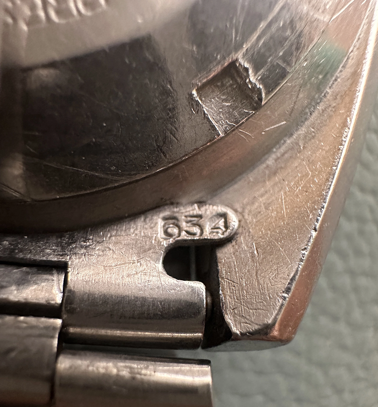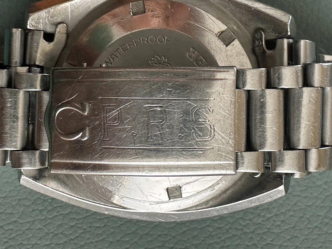 However, I have a question about the bracelet, more specifically the clasp. The end links are clearly marked 634, but the ‘identifier’ bracelet link seems to have been swapped out. Mine only says "100% Stainless Steel". I think the logo bracelet with the embossed Omega logo is original even though it has been engraved with the initials P.R.S. I’m guessing that when it was engraved, the ‘identifier’ link was swapped out for whatever reason. Is that a reasonable thought? Or is maybe the entire clasp fake? Just trying to decide if I want to go and source an 1170 bracelet clasp.