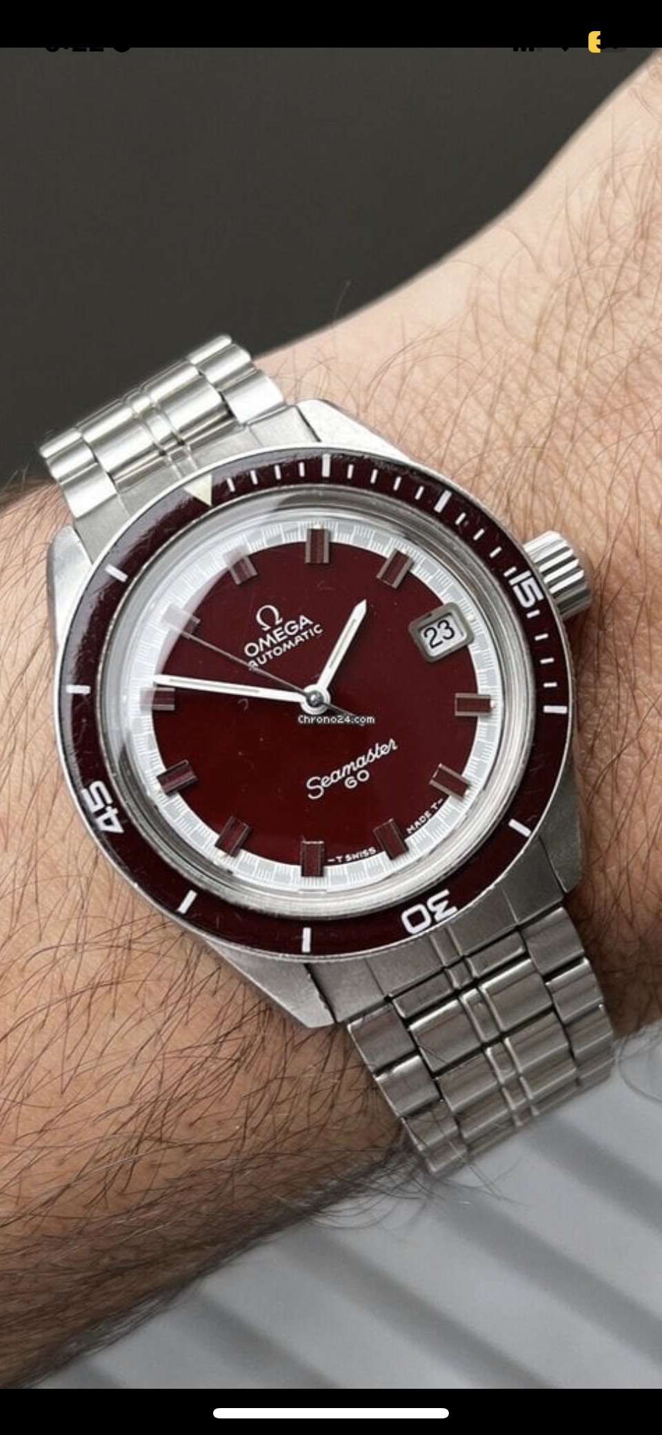 ·Hi all. Patrick again. I see another burgundy Onega 60 posted, this time by Watch Vault from Australia. Wondering what you think. I am still learning but the hour markets look different than all the others I have to date on this site and elsewhere. This one they seem to be the same color as the dial..is this correct? Grateful for all thoughts ! Picture and link below. Best. Patrick.