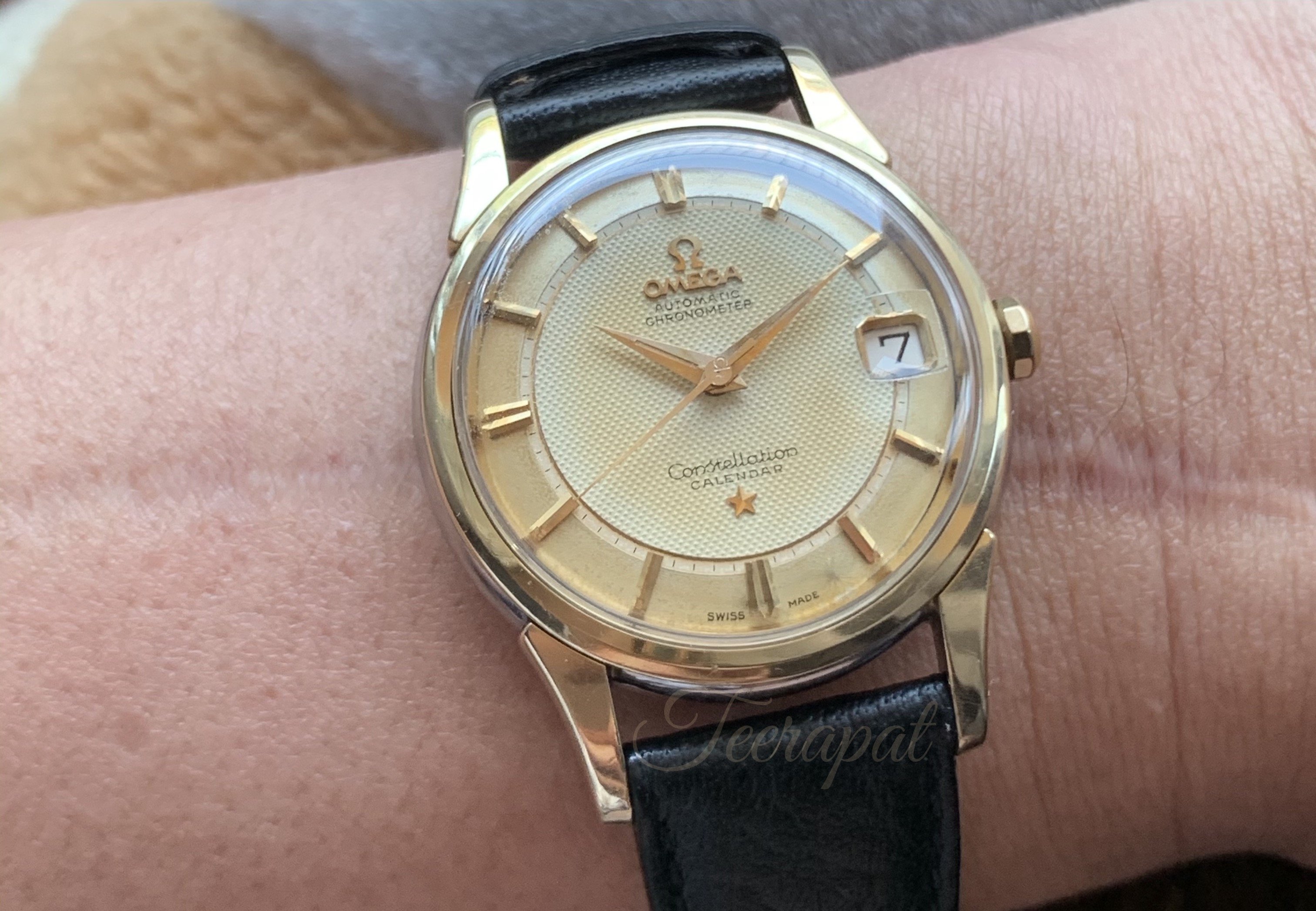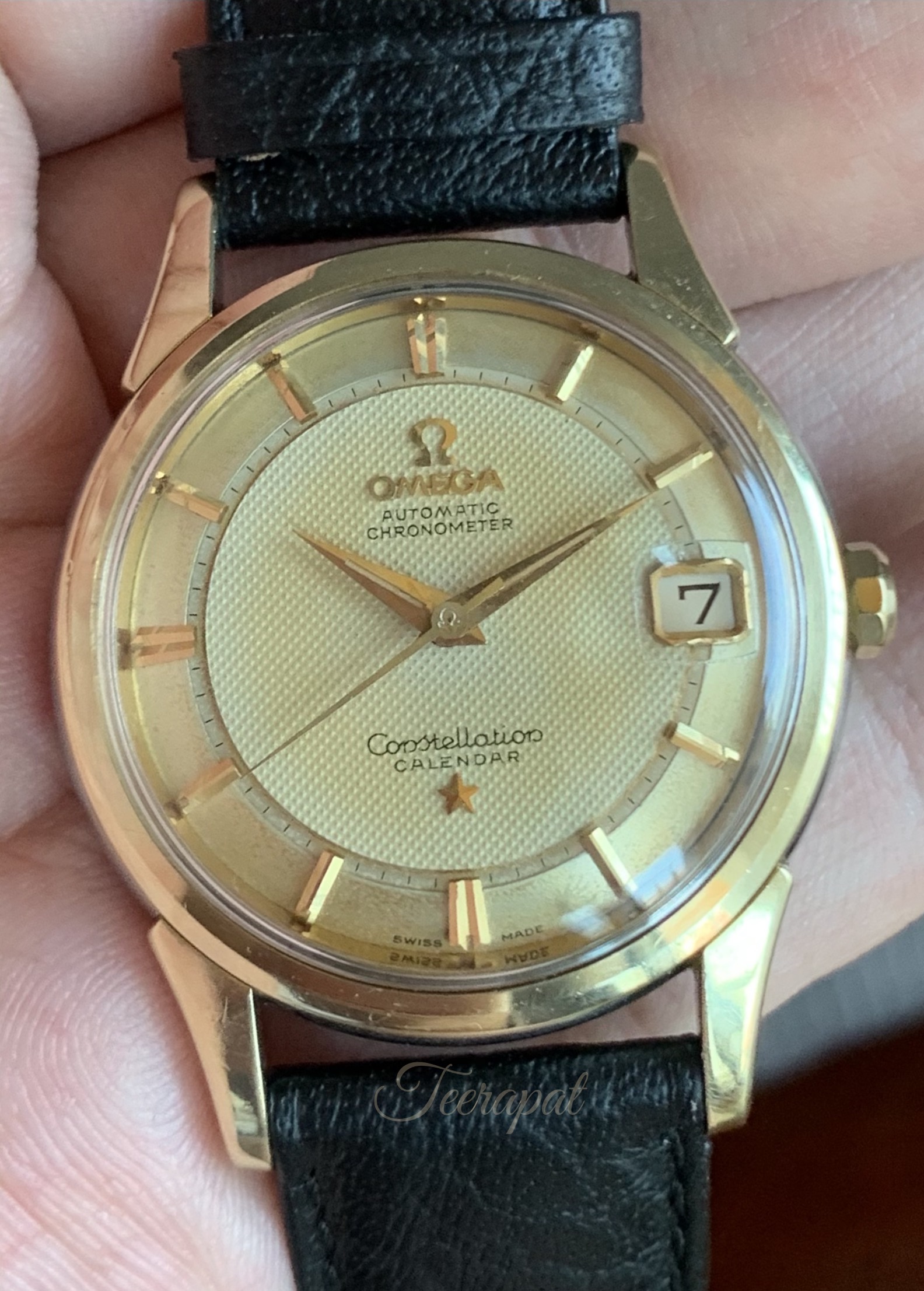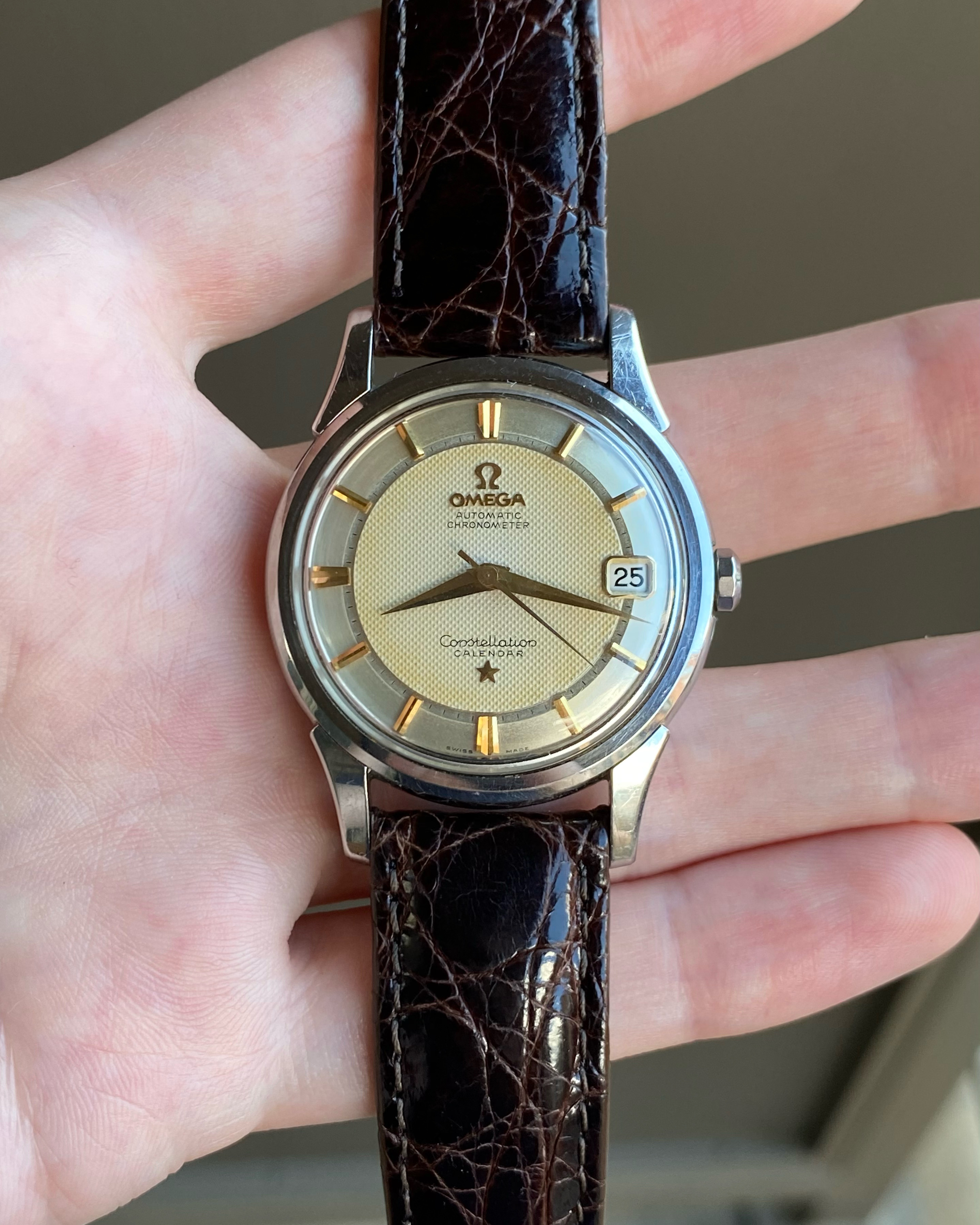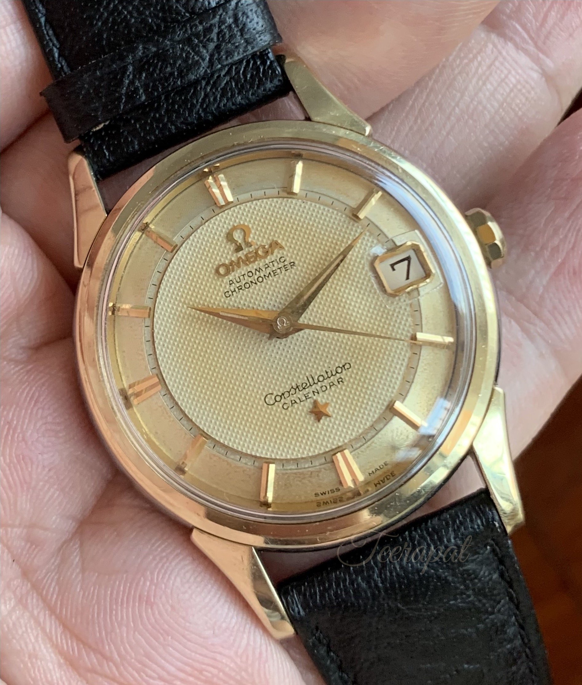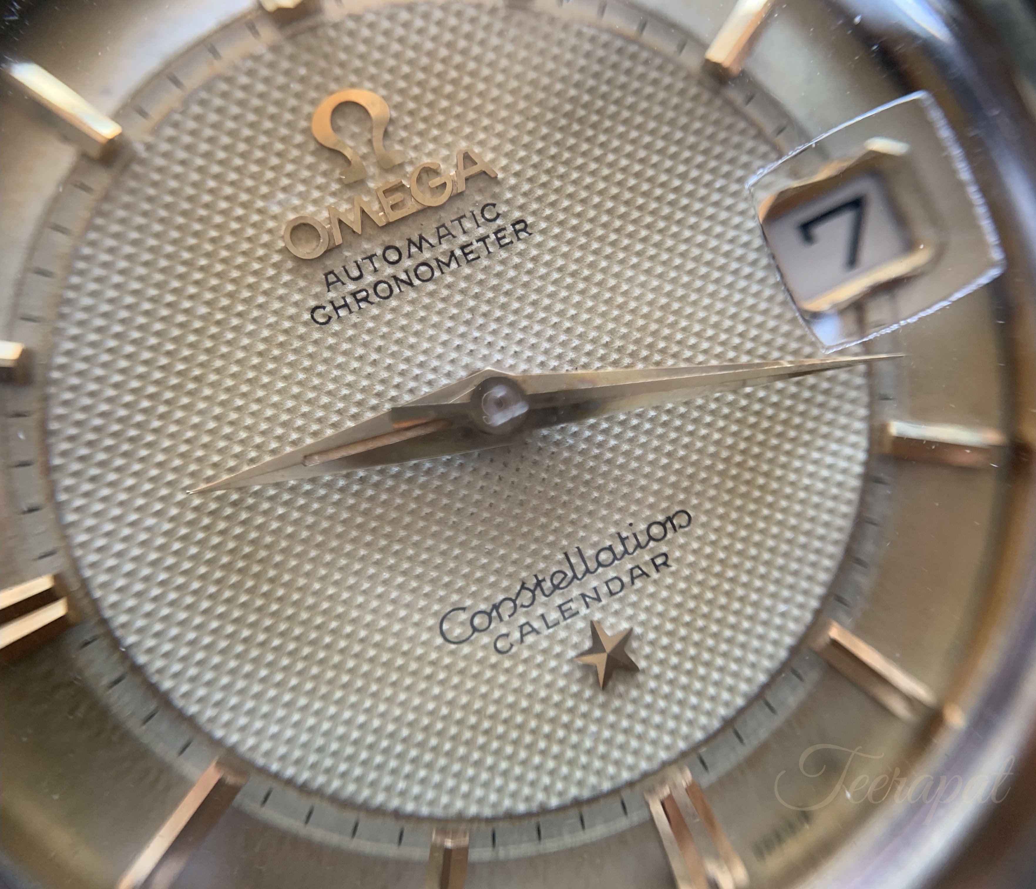 The crystal with 'signed omega' plus 'enlarger at date-window' was original too (but this one was special order).