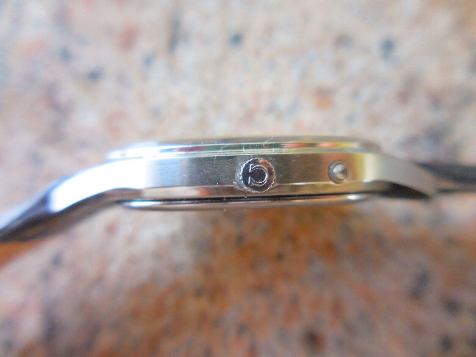 ·This one's powered by the 1337 Quartz movement from the early 80's. 17 jewels, IAHH, and accurate to within 5 SPM when it was new. 2 o'clock pusher can manually advance the seconds hand by 1 second for each push, while holding it down hacks the watch until released. The minute hand is not adjustable from the crown (the crown only controls the hour hand).