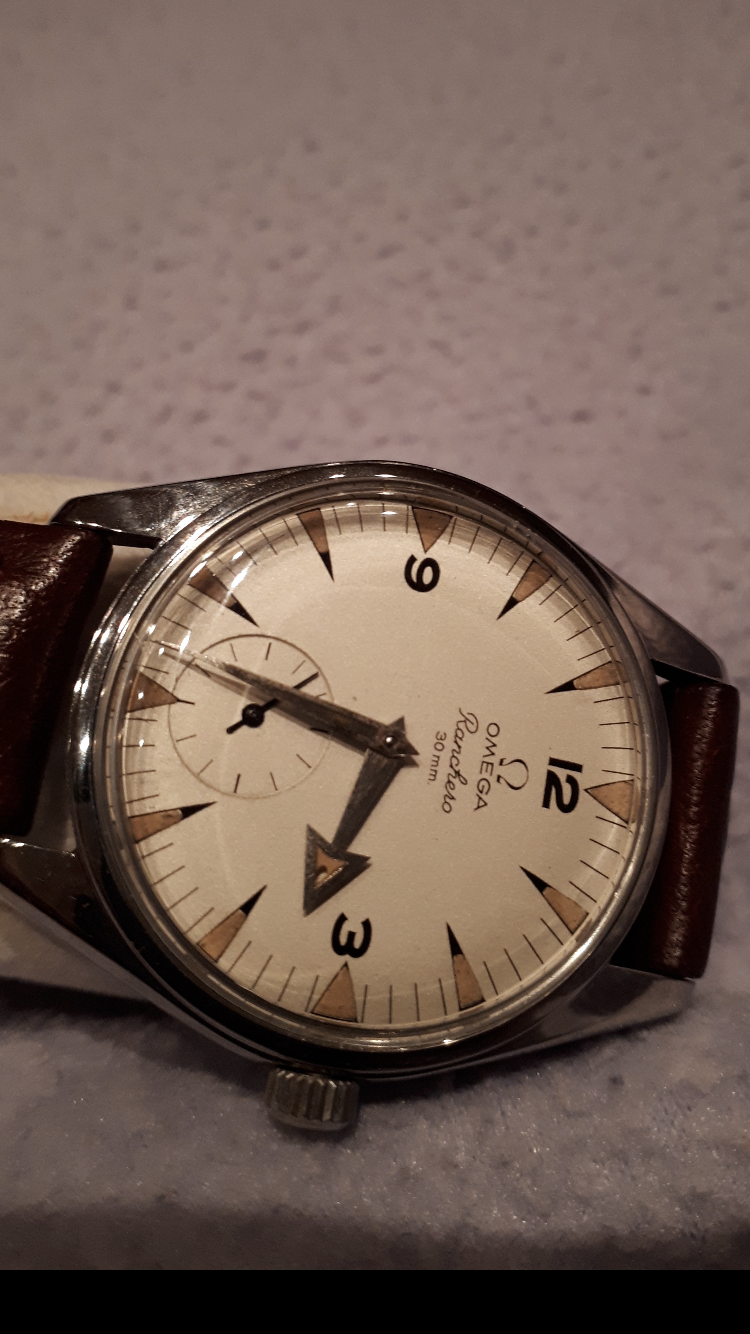The broad arrow hand is not in great shape with a hole in it, but original To the watch.