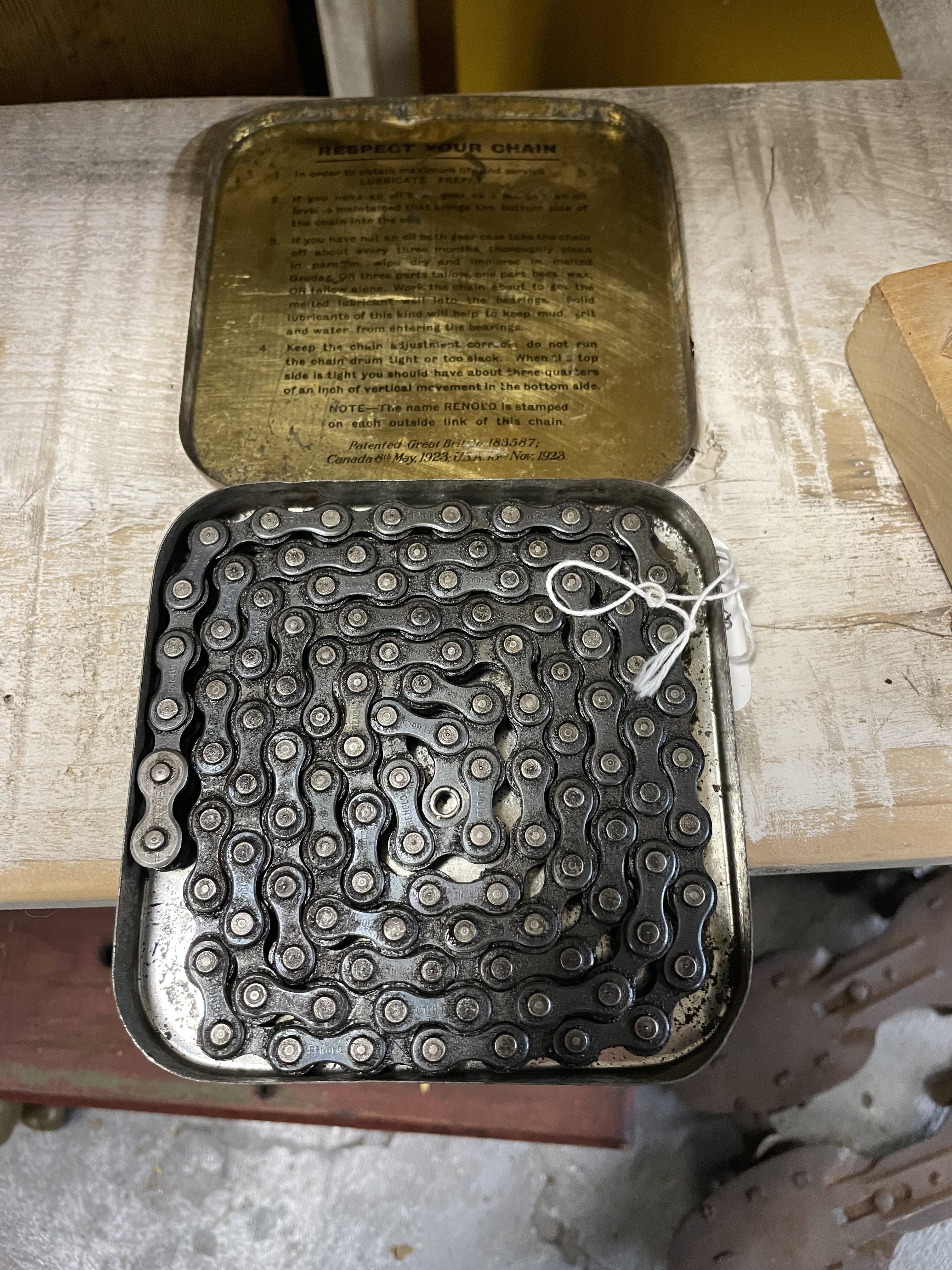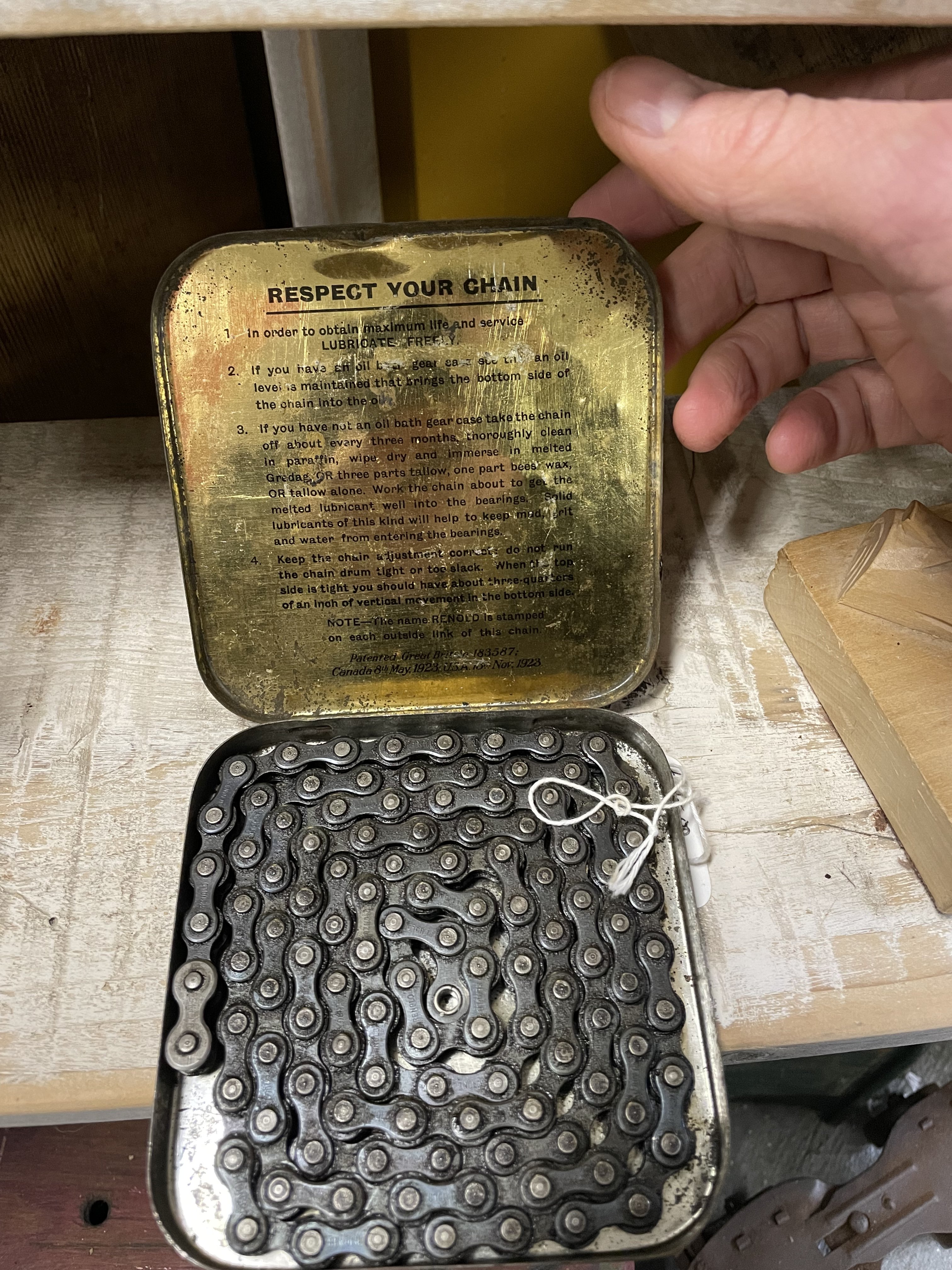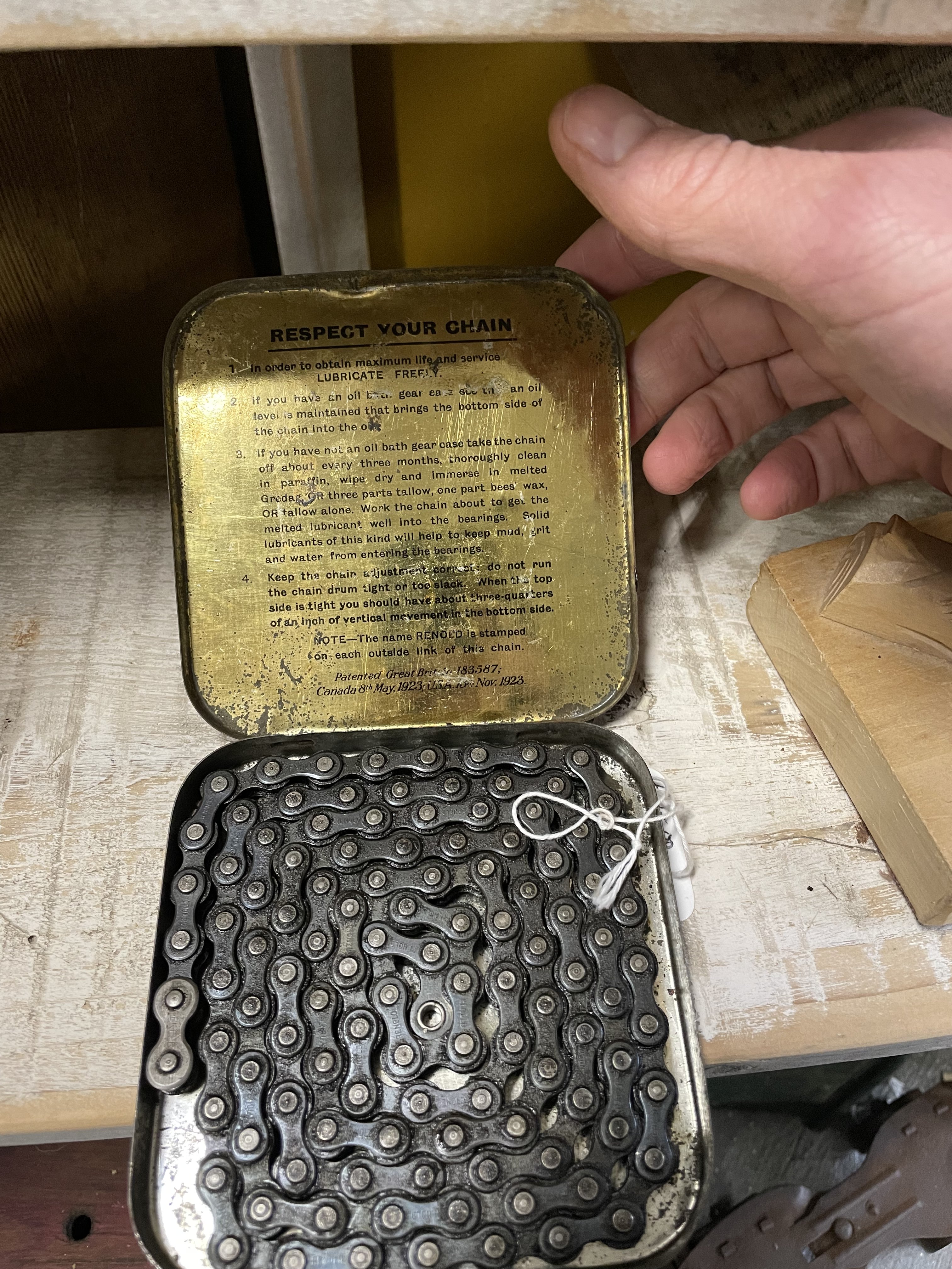 Check out this really nice tin box that still contains a bicycle chain and instructions. (I did not buy it, I use Dura Ace chains! Haha!) I almost bought this early book about airplanes. It reminded me of @Omegafanman Do you visit antique stores? What have you found?
