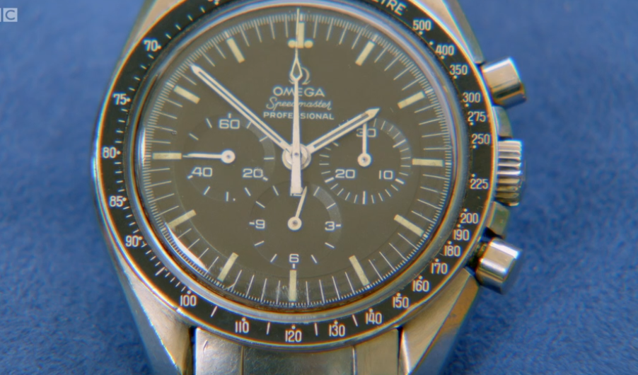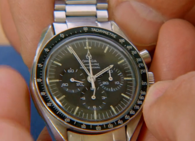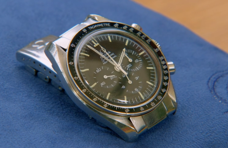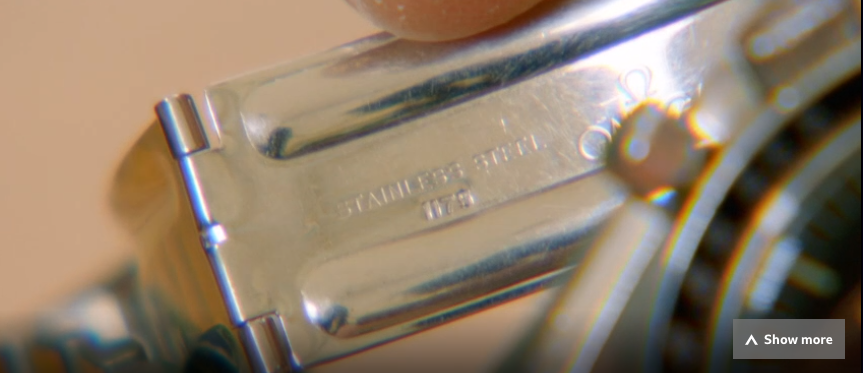Also, on another recent show (29th Sept) was a less rare Speedy. The owner said her husband bought it from a jeweller's shop (it was displayed in a glass of water??) in 1970/71. The expert dated it to 'mid-70s' and used the bracelet reference number to date it - pointing to the 1175 as far as I could tell. This is a new one for me - I wasn't aware that bracelet reference numbers were related to year numbers (I have a 1171 bracelet on my '76 speedy). Perhaps he opened the caseback off camera?