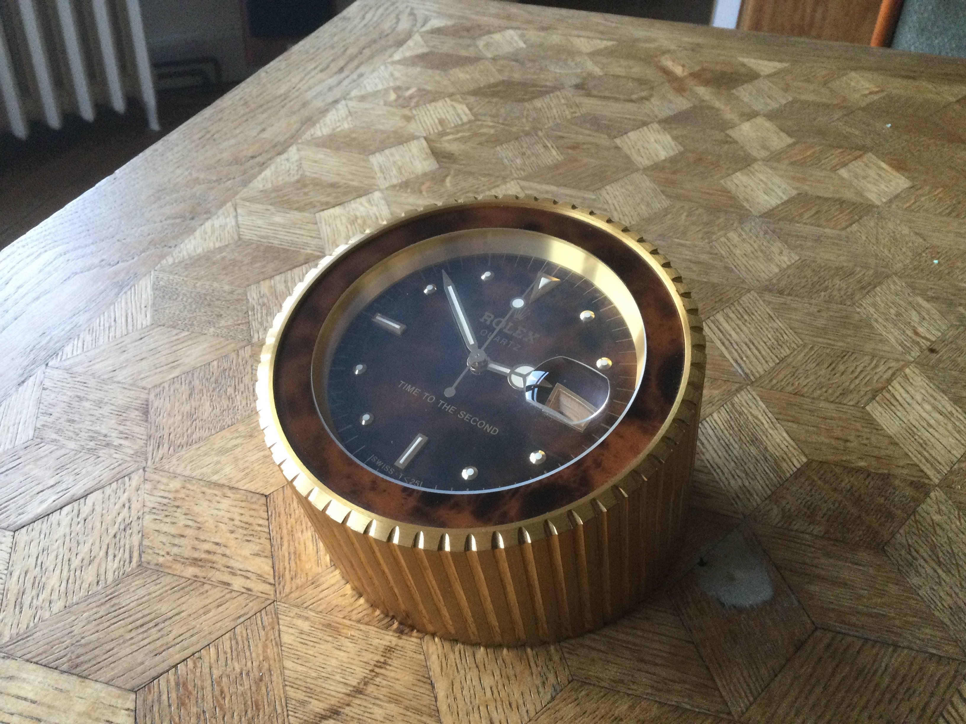 Some time ago I looked for regular wall clocks but with a big date, like wrist watches, came up empty - there are ugly ones with rando brandings, but no clean and legible ones