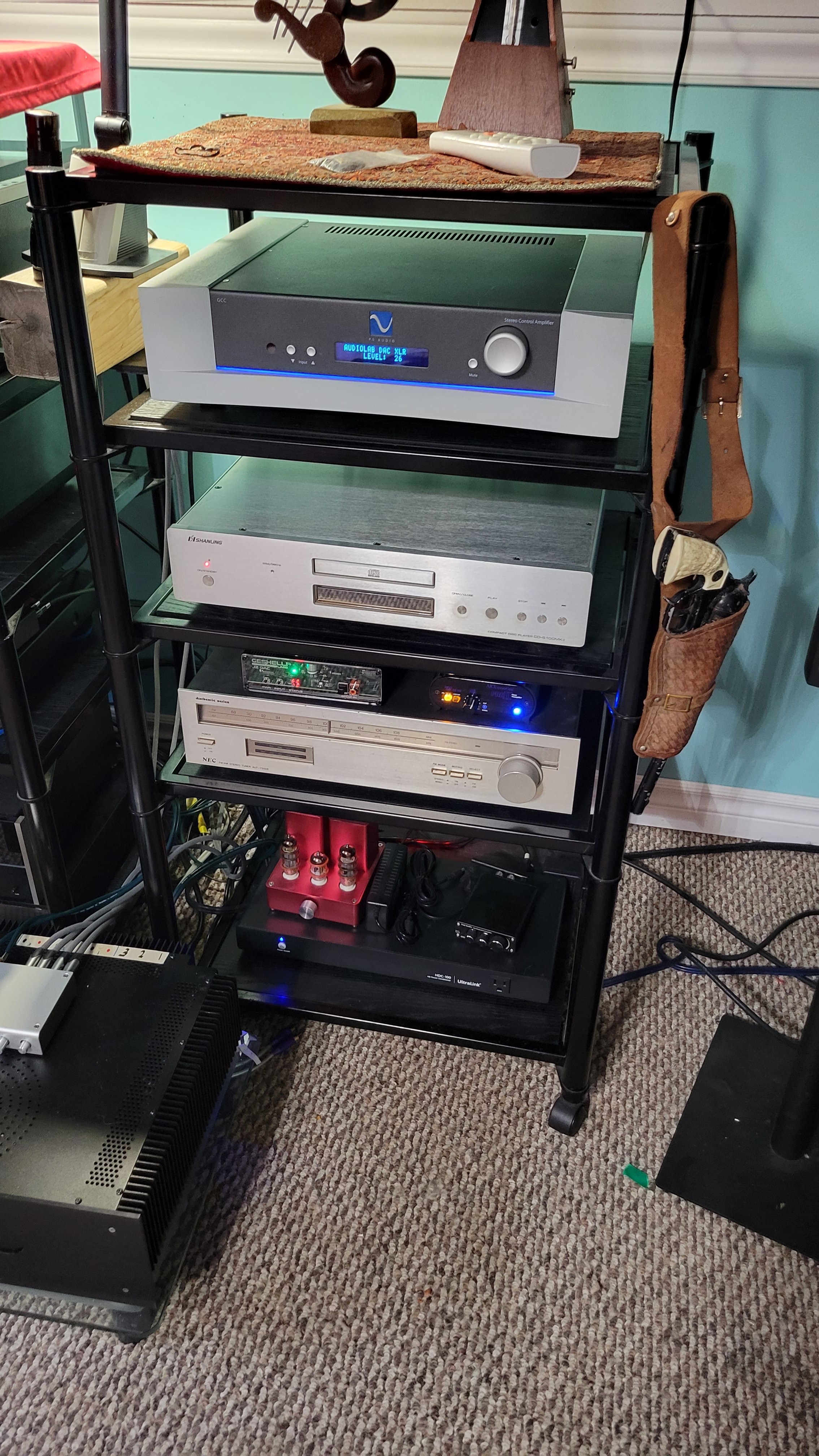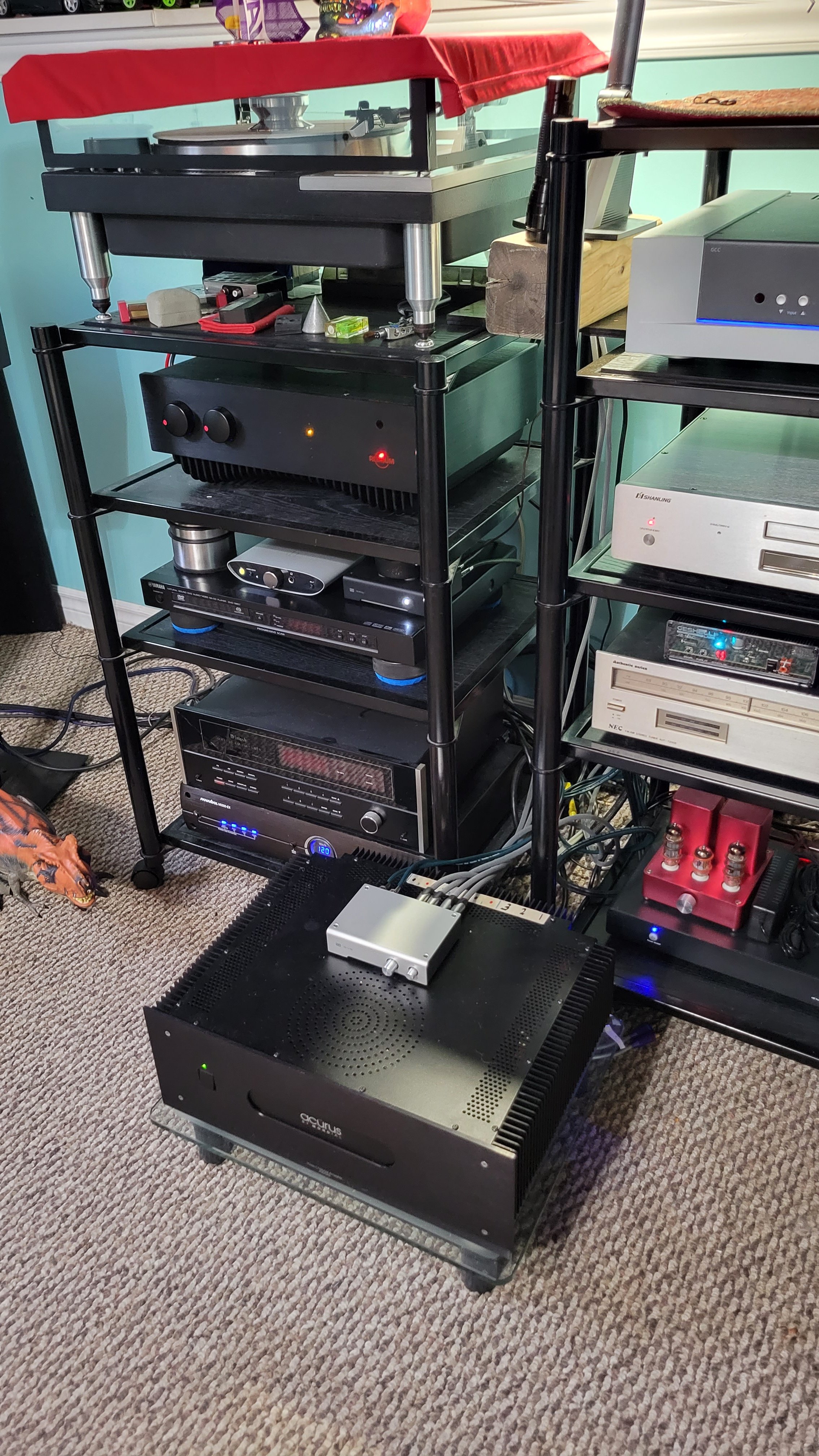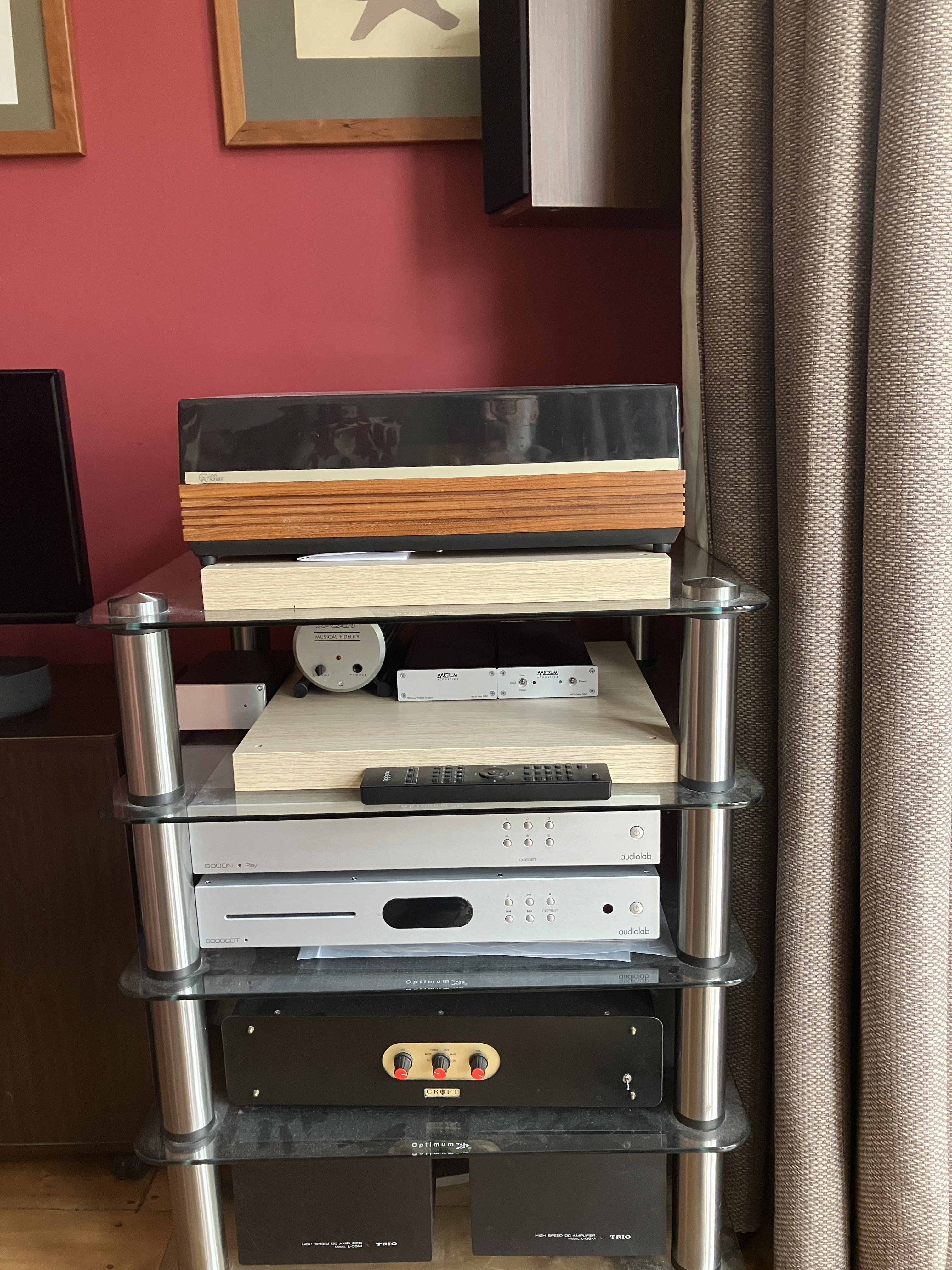 Still at that stage where I'd rather have a life partner than my perfect hi-fi set up (even if I could afford it), and besides, tinnitus and heavy duty earwax build up mean I probably wouldn't be able to appreciate much more than what I currently have. LP12 with Ittok LVII, Croft Vitale pre-amp, pair of Trio (Kenwood) LO50 monoblocks, Audiolab CDT6000 and N6000 streamer, Musical Fidelity X-Cans V2 headphone amp with a locally made PSU specifically designed for it (I hate wall warts), and Metrum Acoustics DAC and PSU. B&W speakers.
