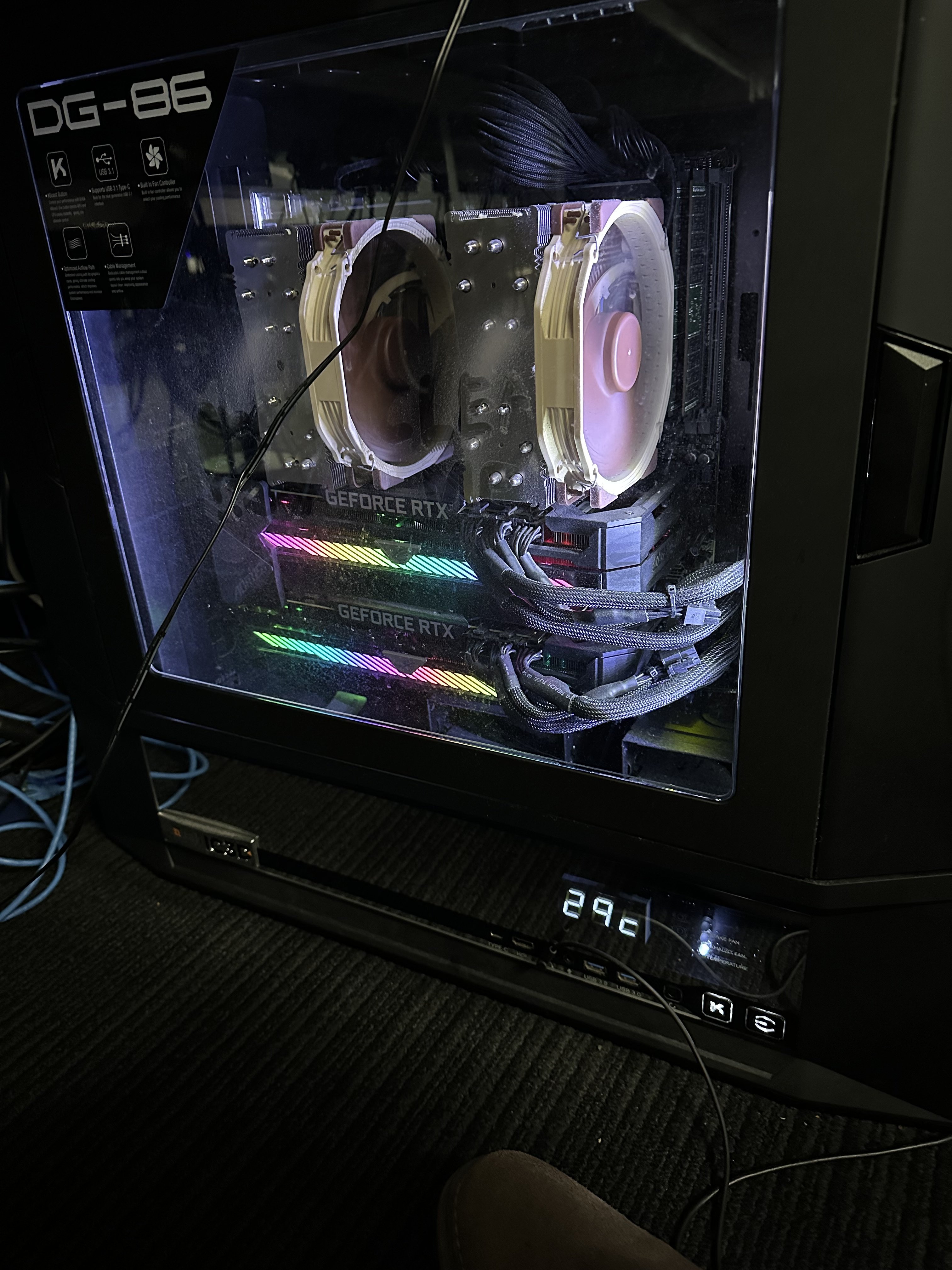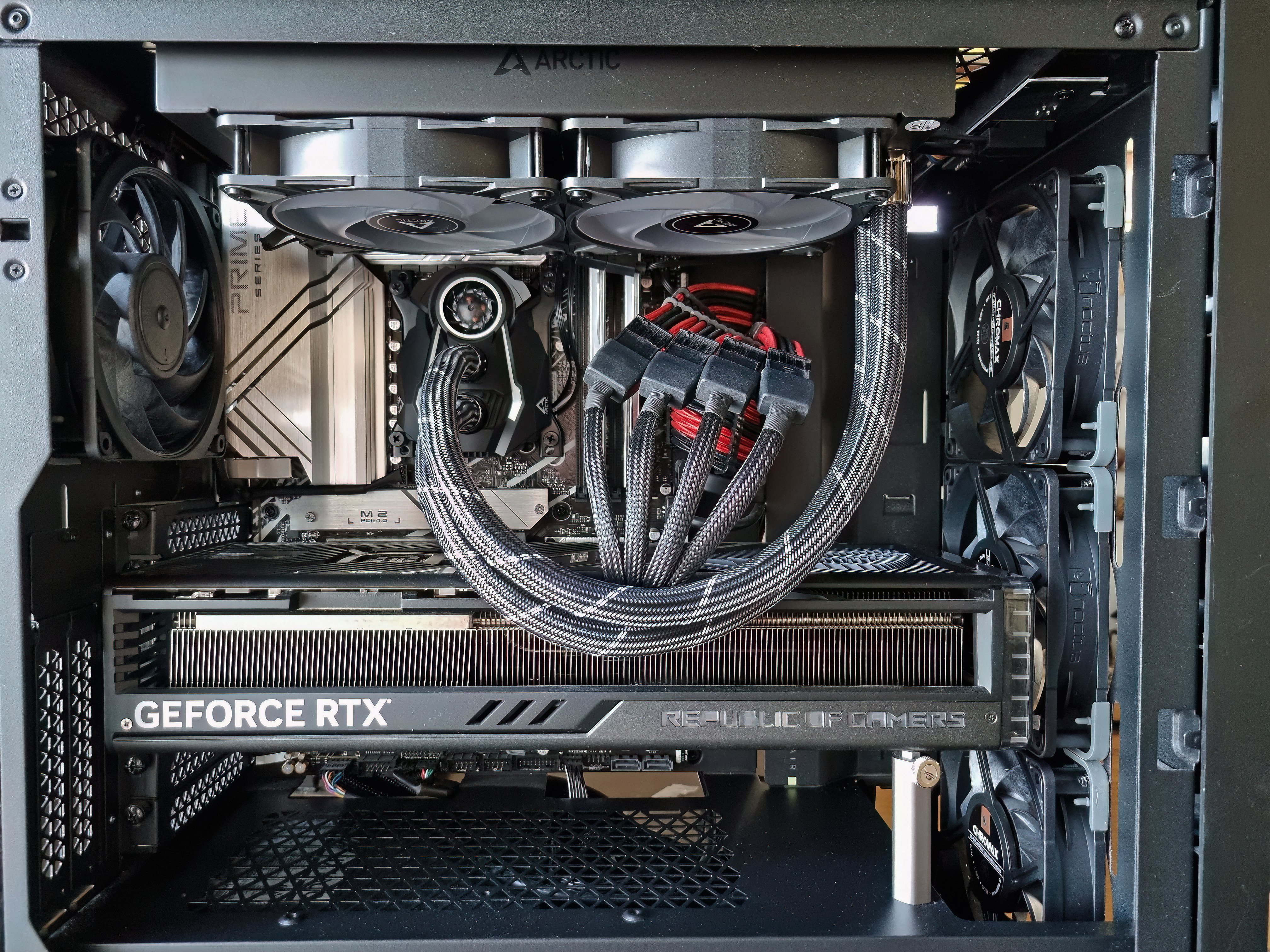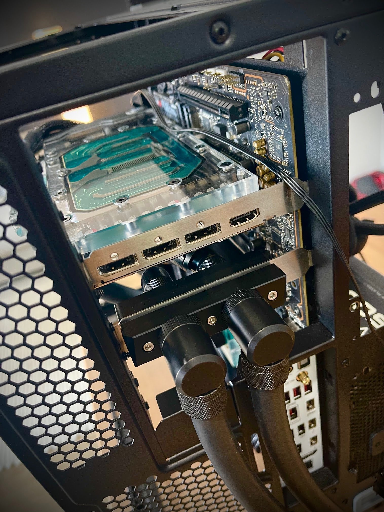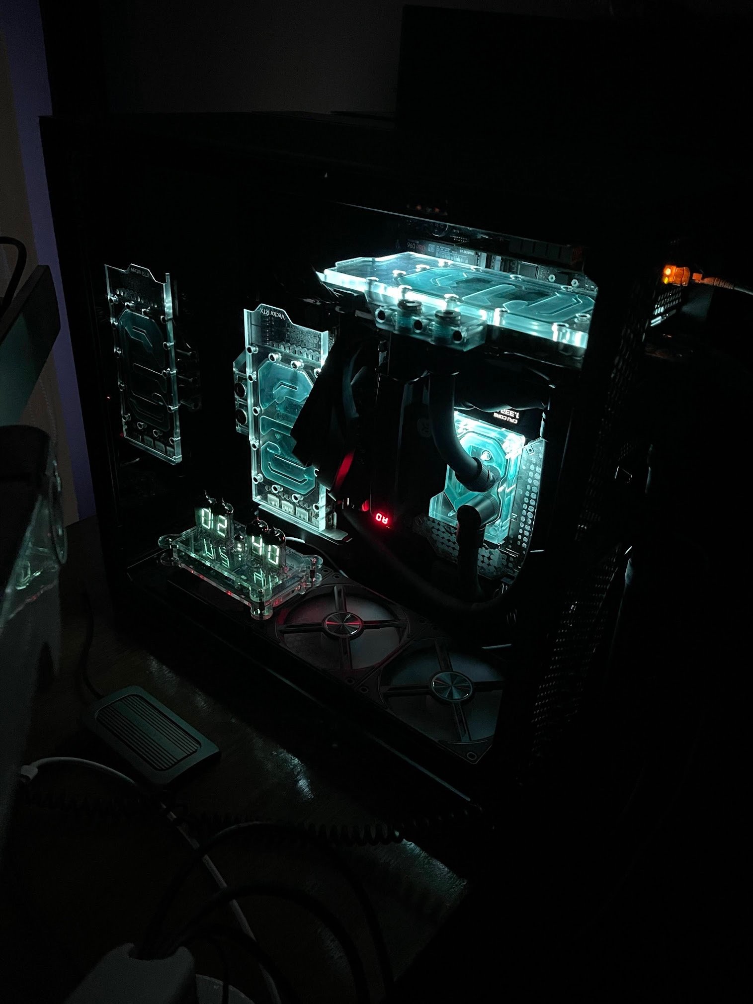 This is @trev’s setup, dual 3080tis so a bit weaker but with 12900k all under water with standalone radiator, resolve, octane etc make good use of the dual cards without SLI so it does pretty well