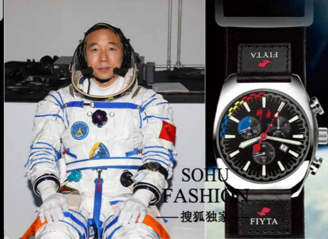 The original model that the Taikonauts wore is somewhere around 54mm or even larger. This model below is the closest I could find. It's at 44mm with a thickness of 15mm. Movement is a Chinese equivalent of the 7750. Fiyta Aeronautics Chronograph GA8370.WBW .