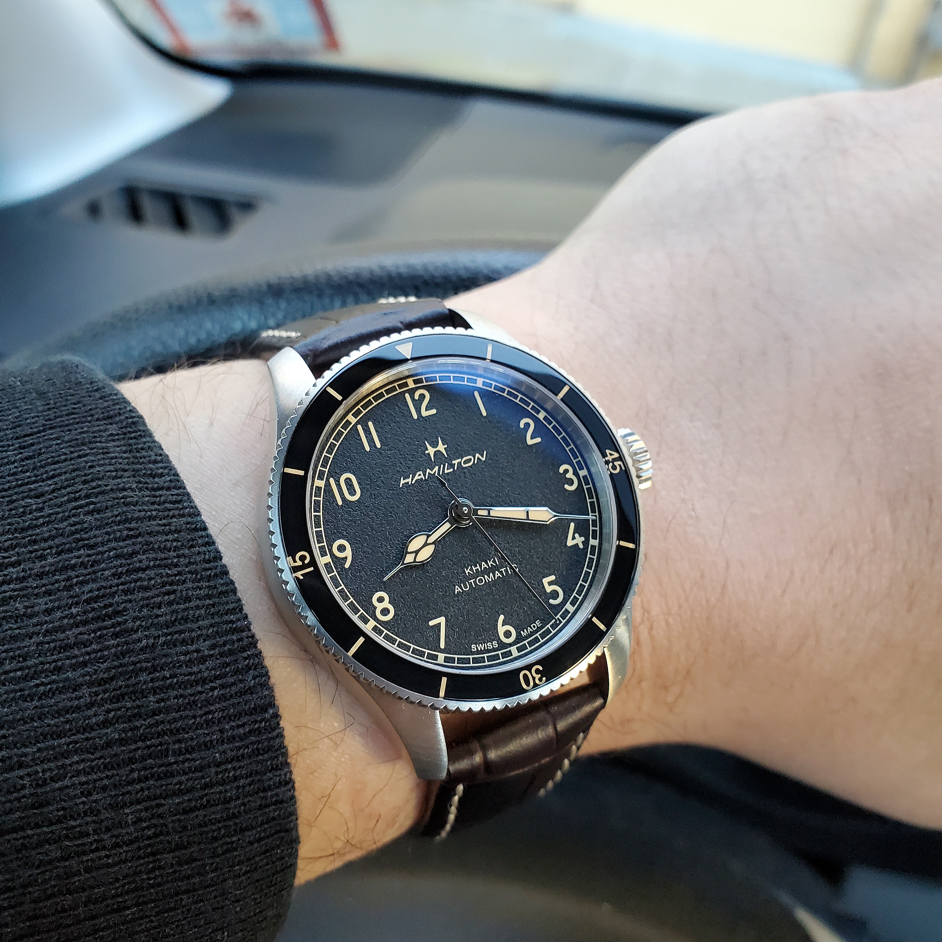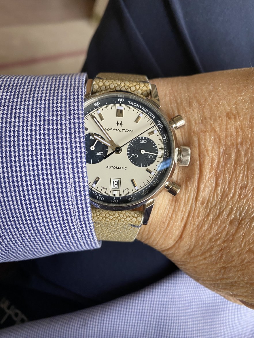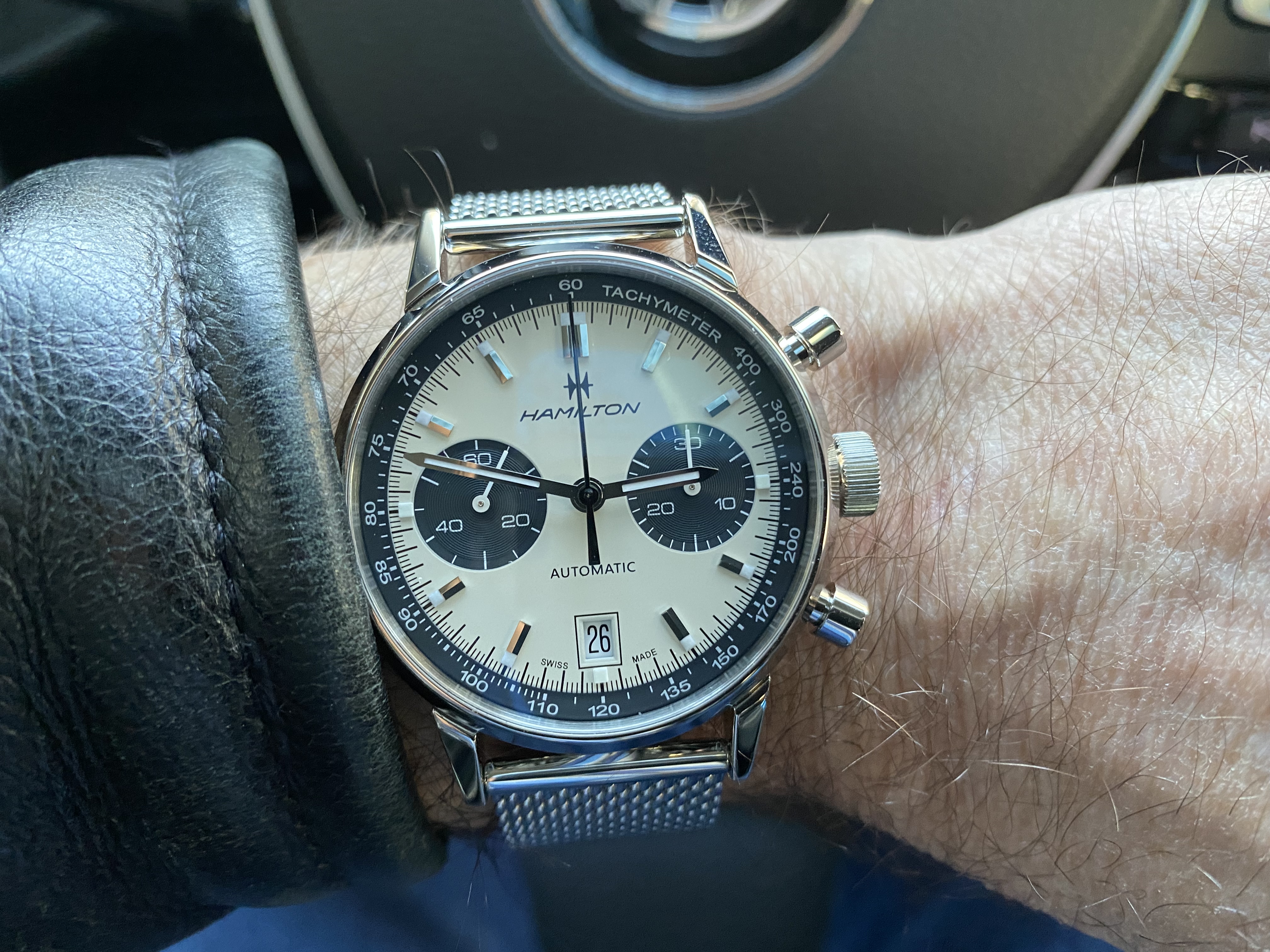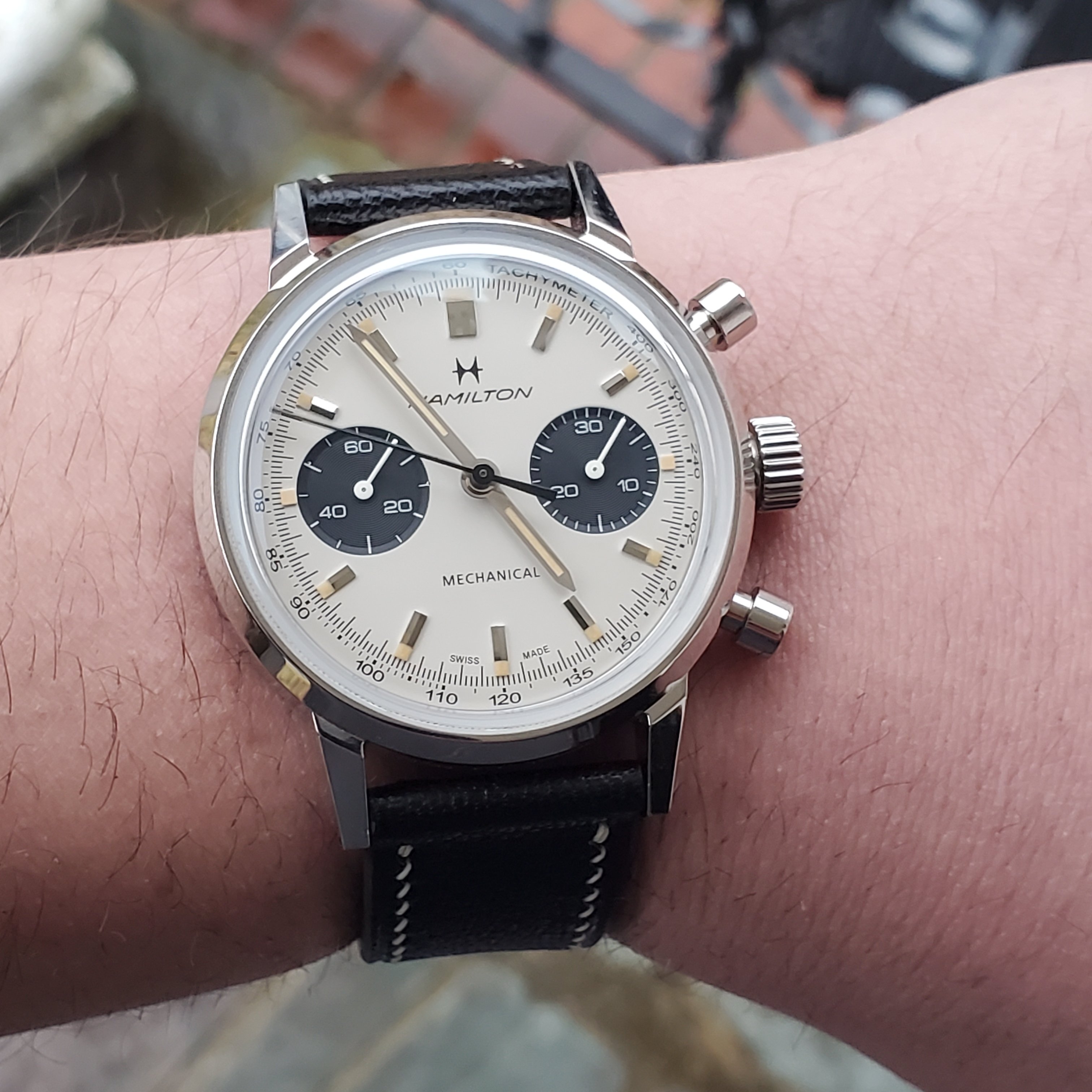 I've always been Hamilton-curious. Never quite found the right combo. The 42mm chrono was too big, as are the pocketwatch-wristwatch conversions. Then I found the 40mm blue panda. Perhaps someday I'll go vintage chrono-matic.