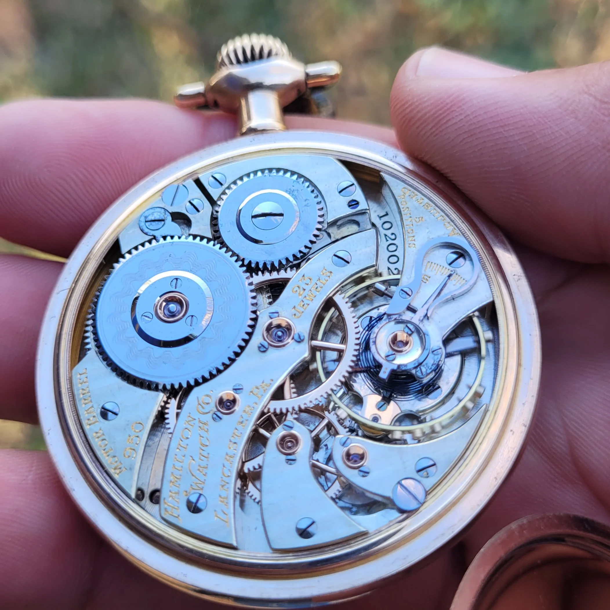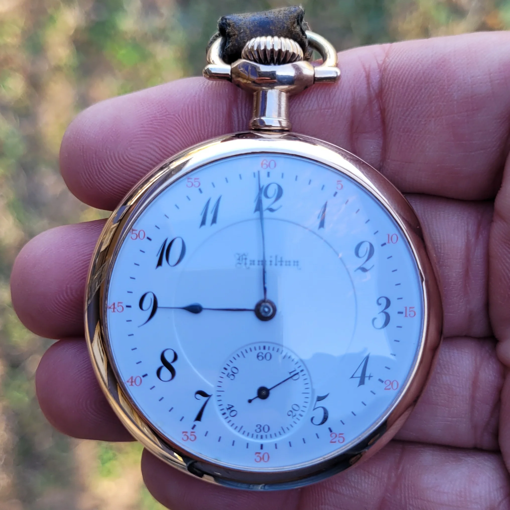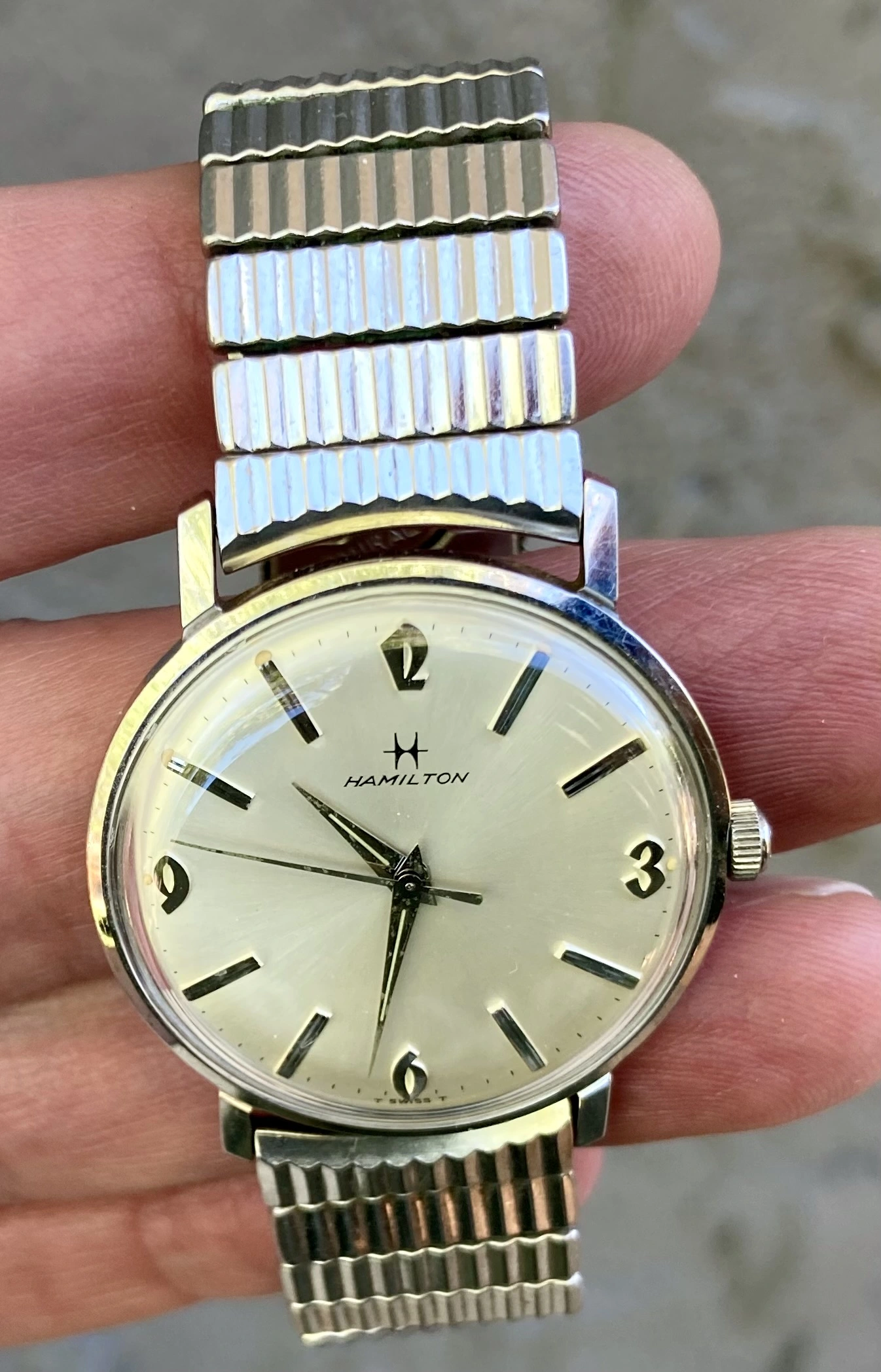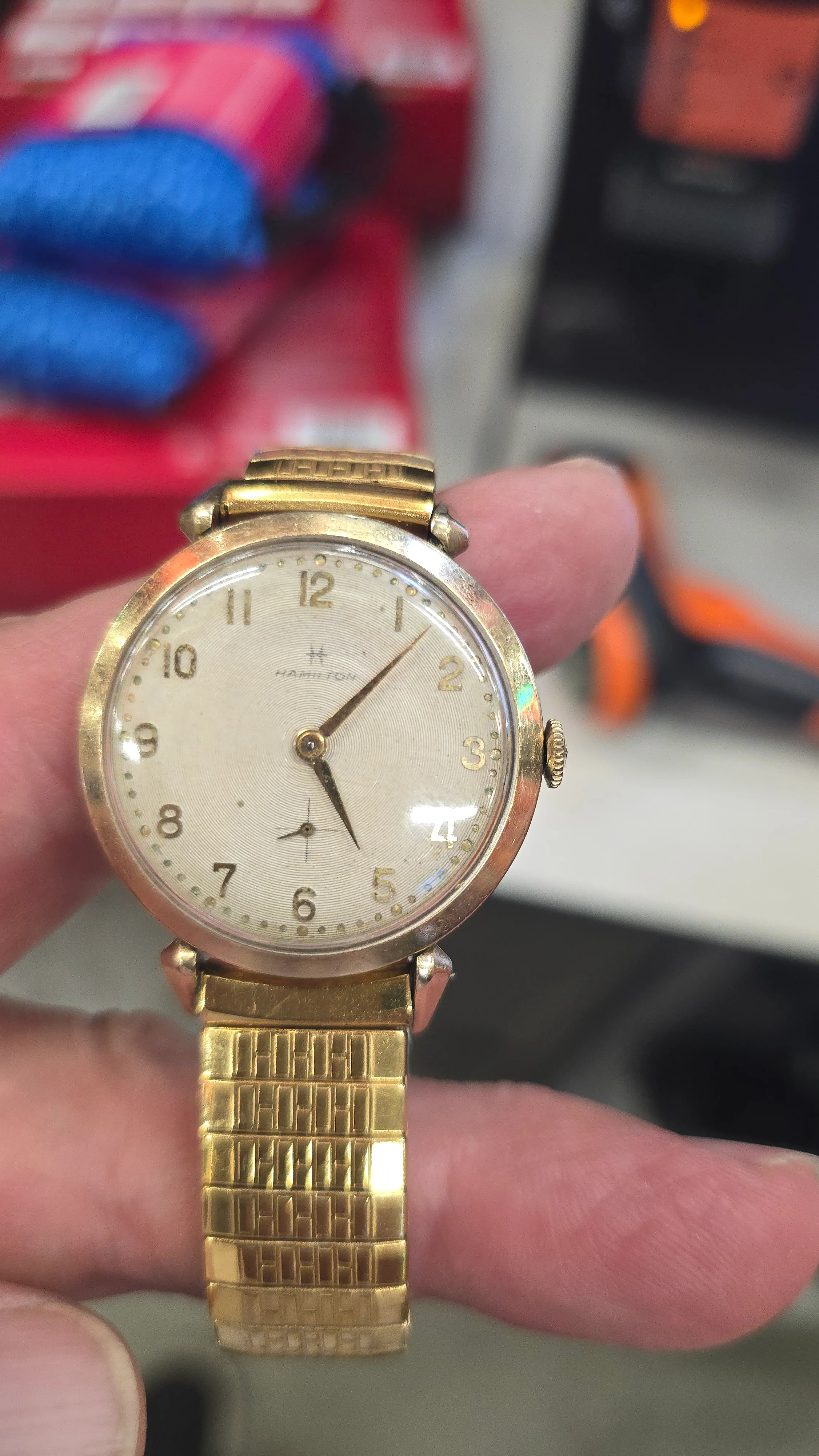 After telling him nice Hamilton, he told me his story. The watch was his dad's. His dad bought it on consignment when he was 13. His dad worked for the railroad and was supposed to send all his money home, so he bought the watch on the side through a lay away. The son who was quite a bit older now, maybe retired, said the watch didn't keep good time but he wore it as a reminder of his dad. Of course that hurt, as I know it should be accurate, so gave him the name of a watchmaker and told him about HamiltonChronicles.