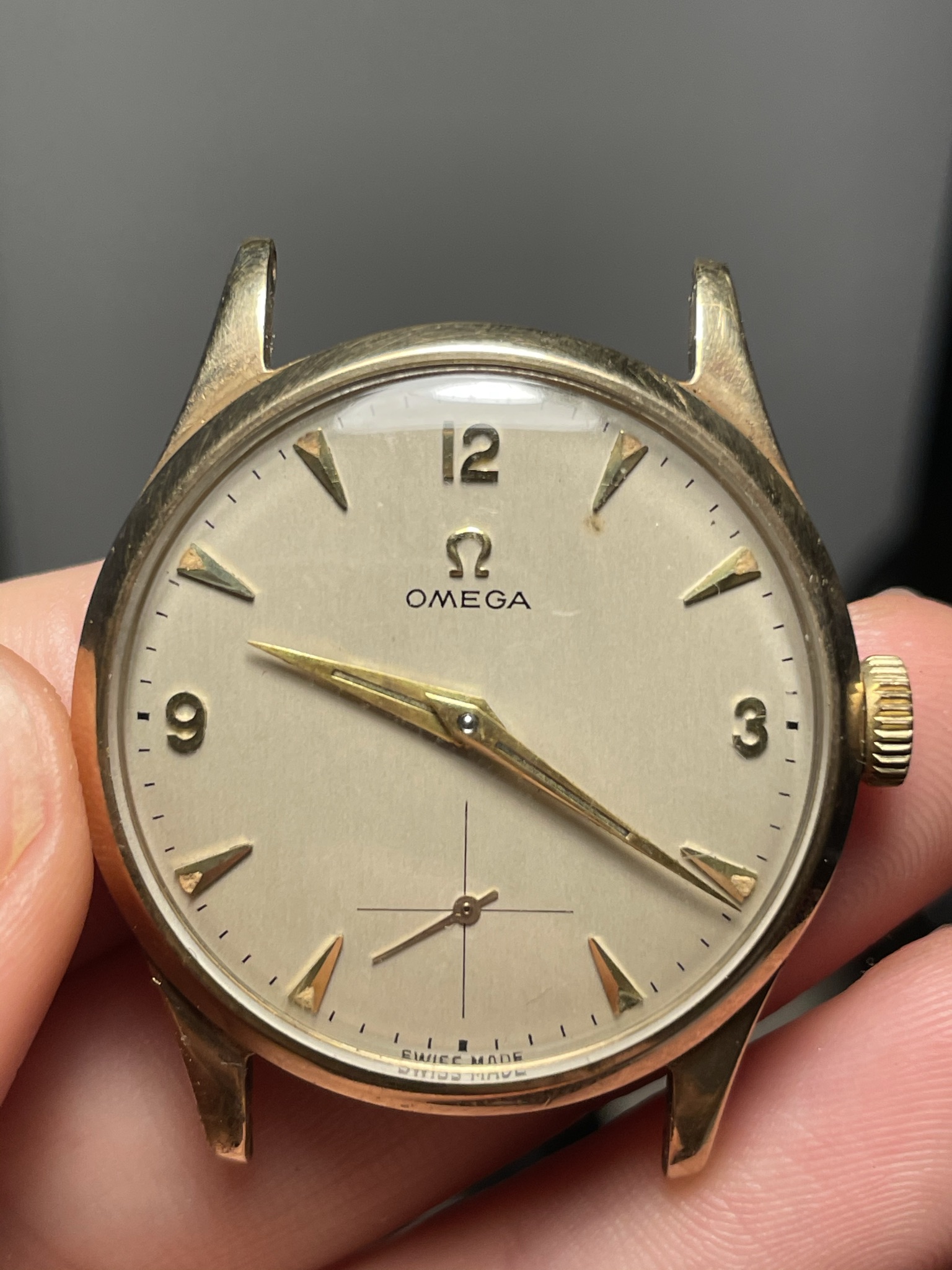 My dad just found an Omega watch that he originally received from his uncle and has been sitting in the attic for around 30 years. He doesn't know anything about the origin of it, but we'd love to know details on what model it is etc. I don't think we would have an intention to sell it but we'd be curious to know it might be worth as well.
