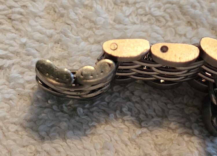 Support the bottom of the link in a bracelet block, apply oil to both ends of the link and use a pin punch and a hammer.
