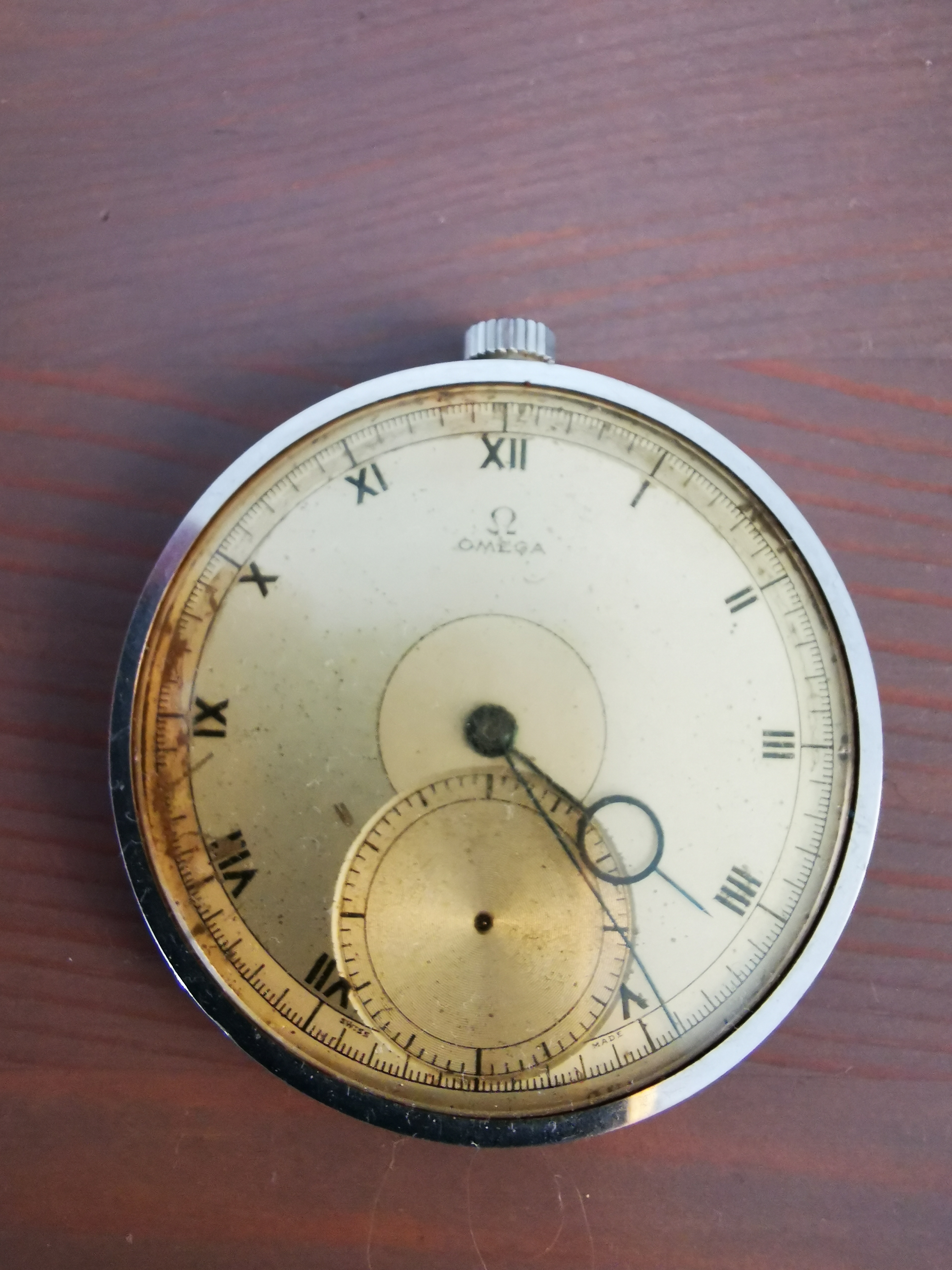 My local watchmaker and jeweller states its 1920s to 1930s and maybe an insert of some kind. His Swiss movement repair specialist is perplexed as to what it is.