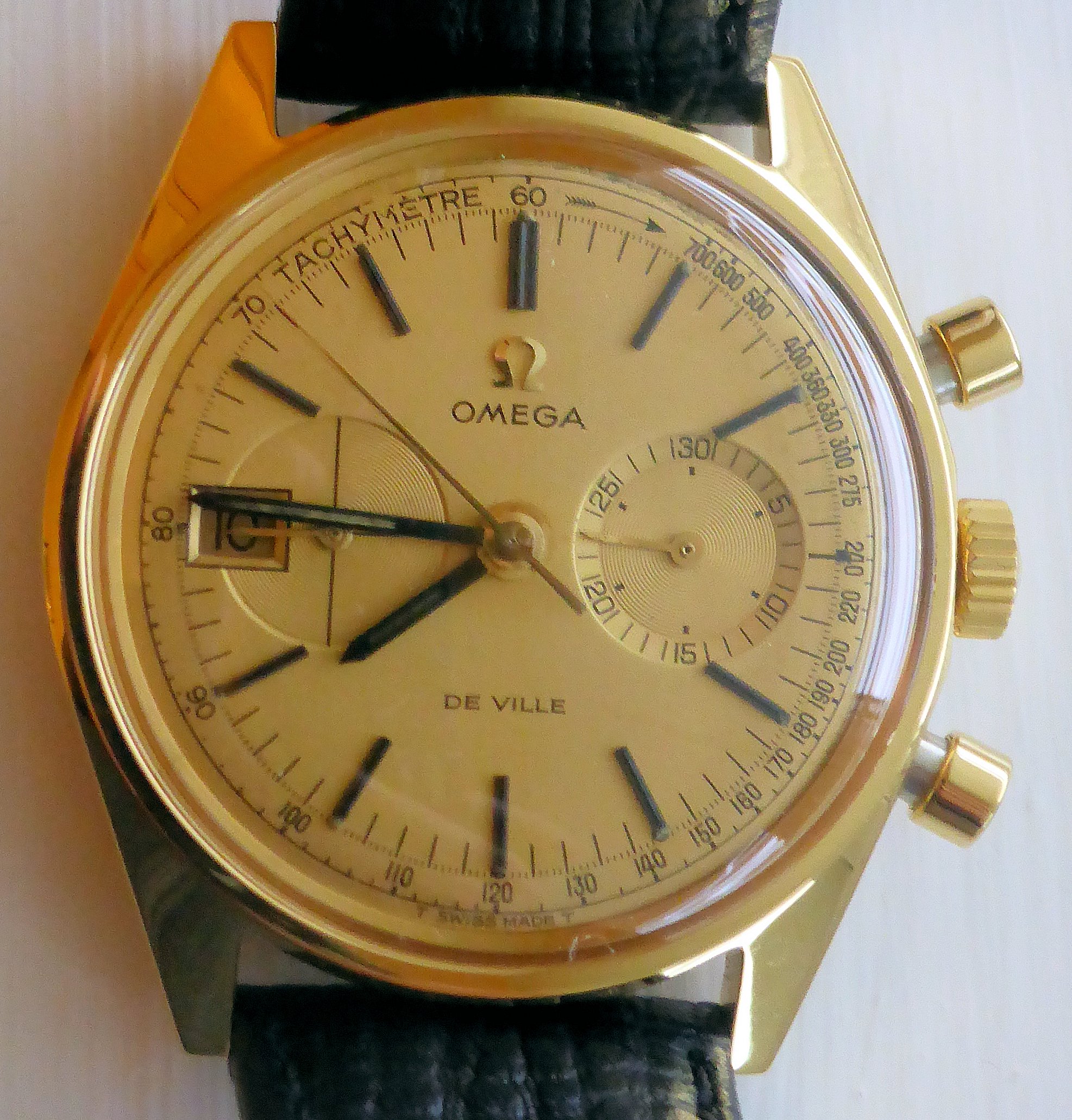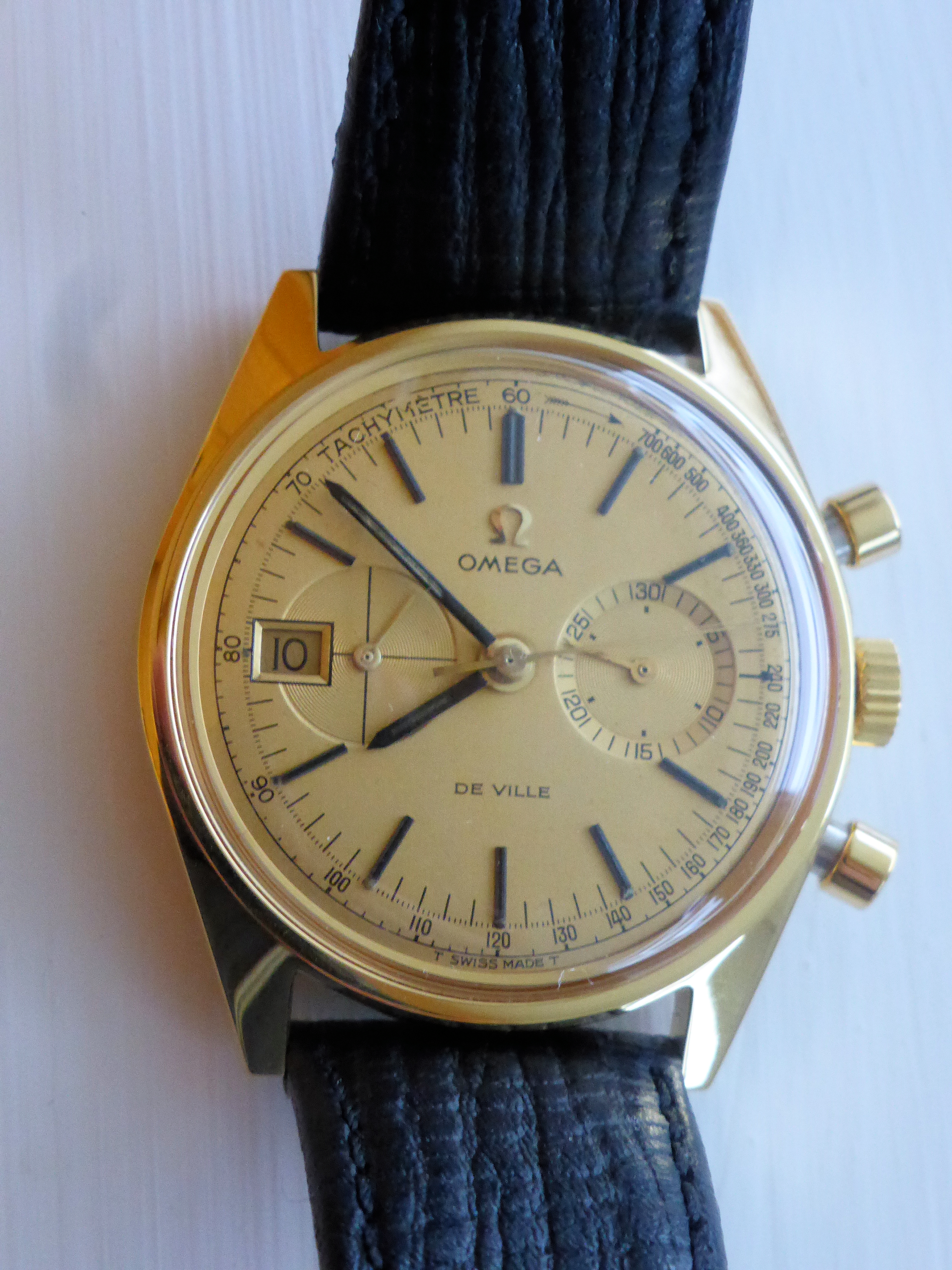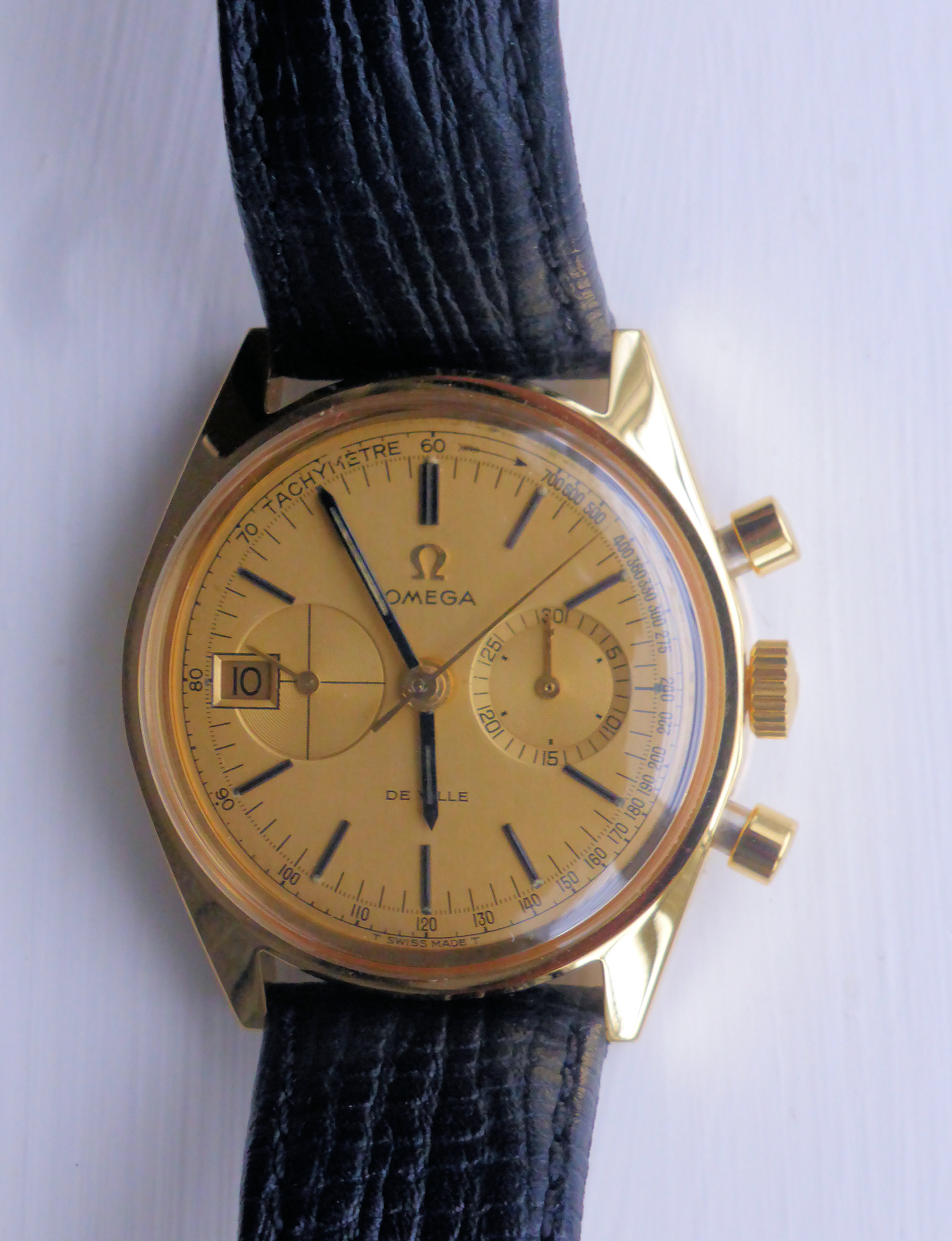 I wanted a vintage 930 movement and this was a cost-effective solution. The 9pm date window is a talking point and a few people have complimented me on the watch. Due to the size and finish I tend to wear it as a dress watch, but equally the chronograph is a useful complication. I struggled to capture the dial but it really catches the light and wearing this one always puts a smile on my face. I also wanted a vintage Deville so it ticked all the boxes for me.