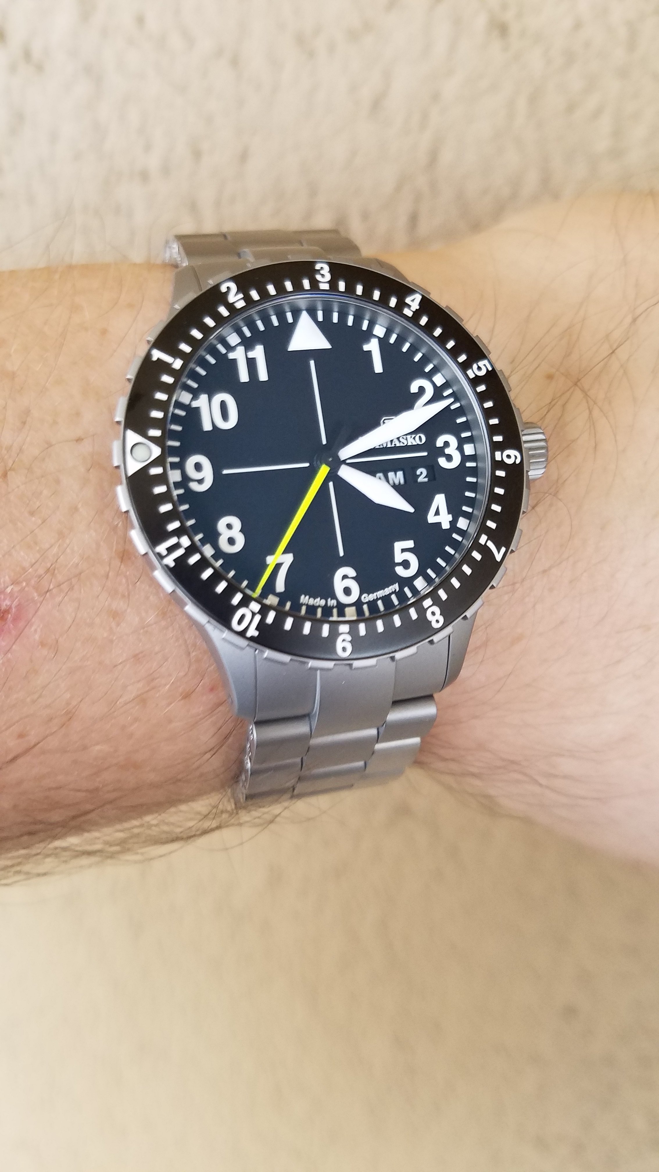 I've owned the DA36 Black for a few years. Many things I love about the watch: clean aviator style, very rugged case coating, AR coating gives a cool blue (anti?) reflection, bilingual day indicator, winding it feels really nice...