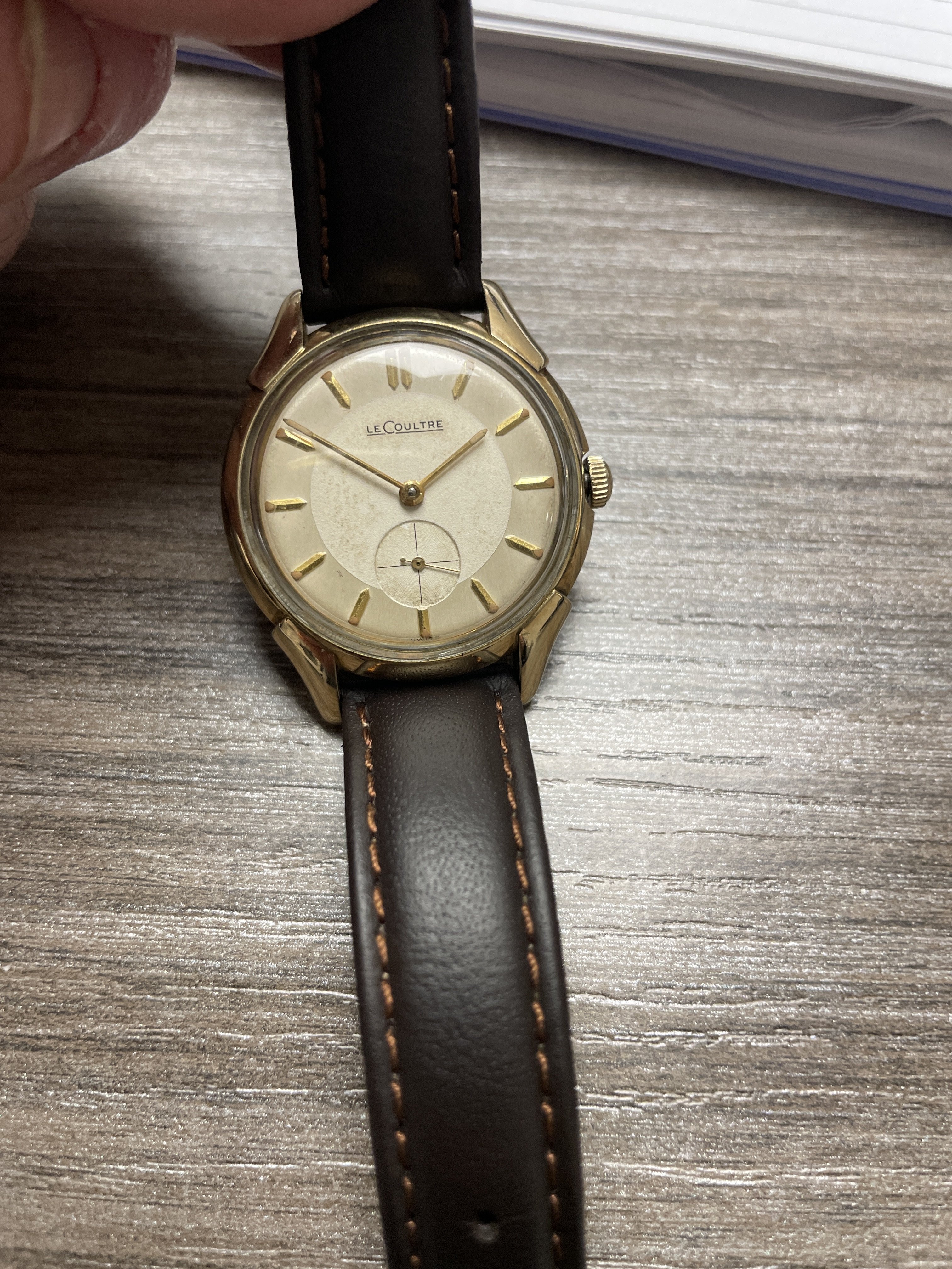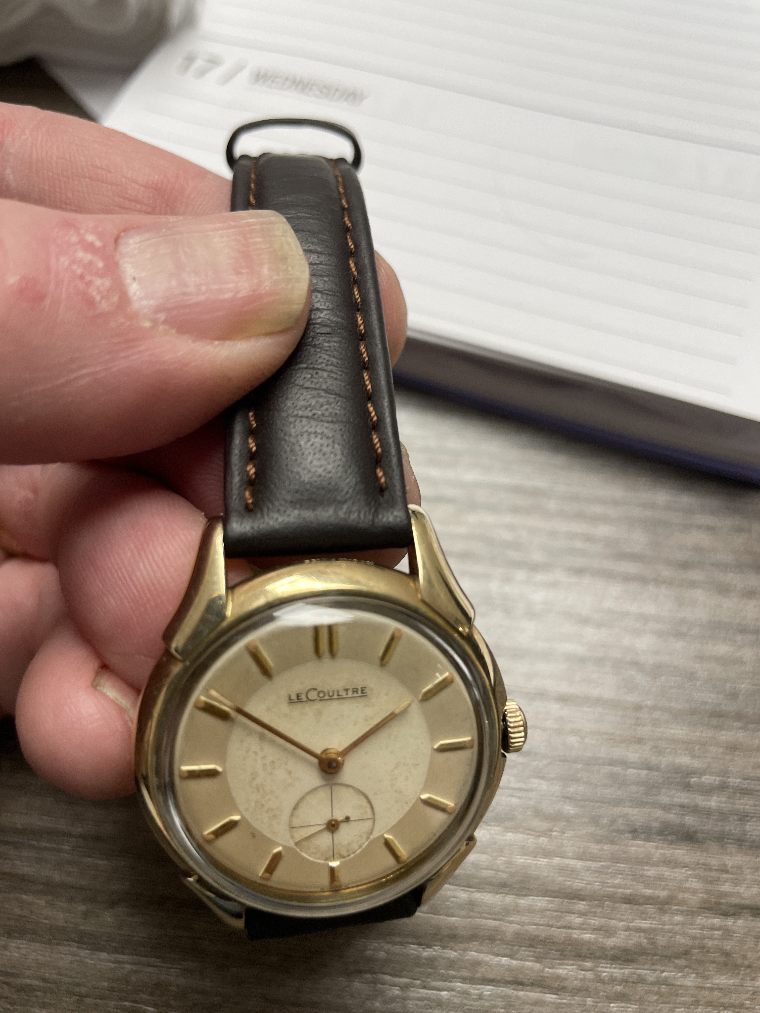 I was thinking of putting it on eBay but then why would I drop it off for service today. It is gold filled, I’m thinking 1950’s as I scouted 1940’s LeCoultre couldn’t find this exact example. It probably is 33mm maybe 34mm as gartacopa suggested. I’m just curious what a fair price to ask if I were to sell it. I’m under no illusions that it’s extremely valuable but if I need to move something I’d probably sell this rather than the astronaut on fleabay or attempt a local sale. I honestly have no clue what to ask, things are only worth what someone is willing to pay and if I do get a service I’ll probably have 300 or so into it which might be its value forcing me to keep it which I wouldn’t mind.