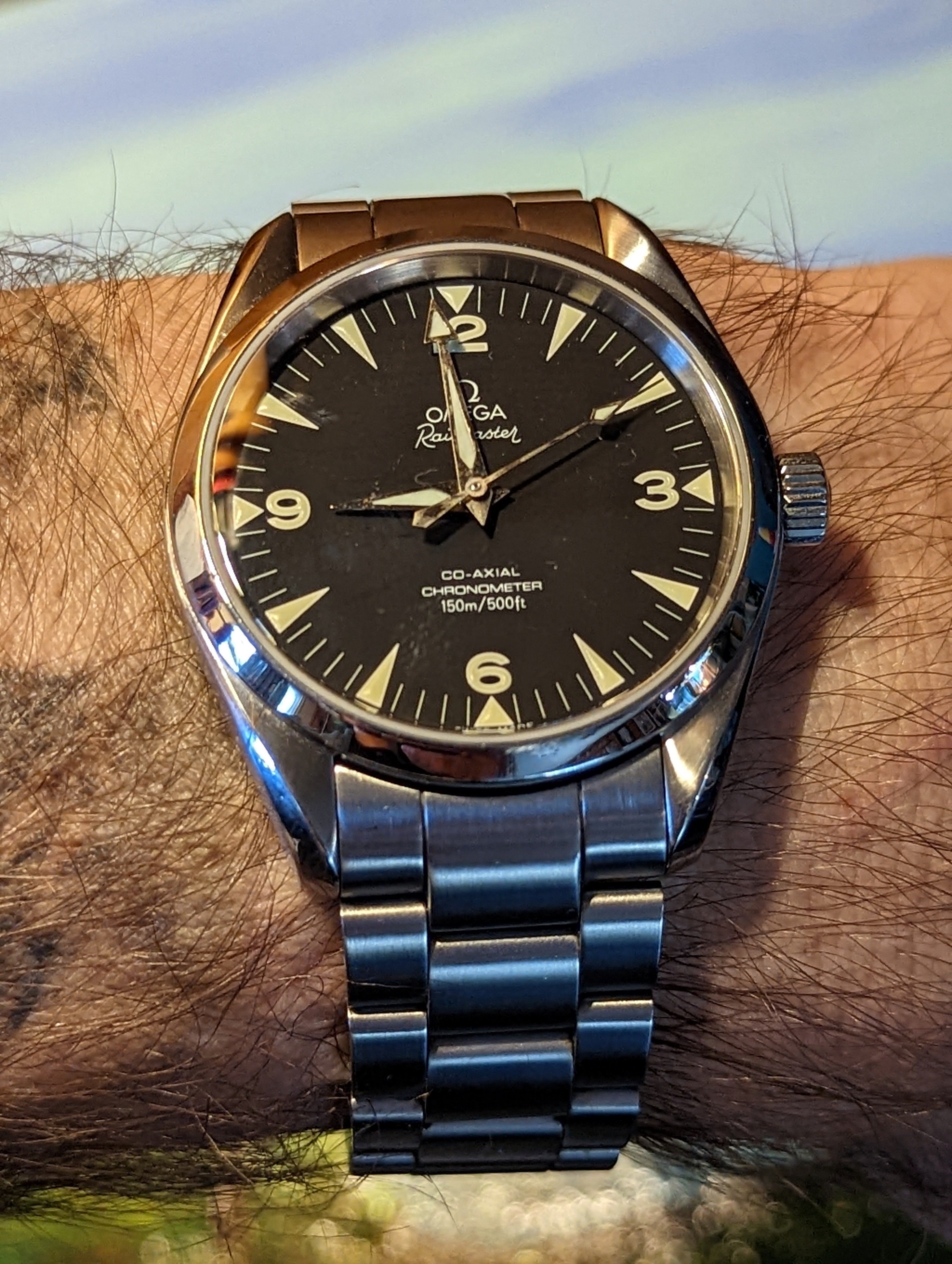 I do like the Aqua Terra generation Railmaster, the lack of date and bright lume make them very appealing in a toolish way. They were of course available in 4 sizes, 36, 39, 41 and a faintly ridiculous 49mm. I had the 39mm which is the one being discussed here. It wears very nicely and has a lot of the Explorer 1 vibe with a slightly more dressy twist. It is all dial though so to many eyes works best in the smaller 36 and 39mm sizes, the 41 and 49mm look a bit like Flava Flav's neck ornament in some ways. The 36mm is very hard to come by and consequently priced higher than the rest, but I think the 39mm is a good compromise and is rather easier to get hold of at a sensible price.