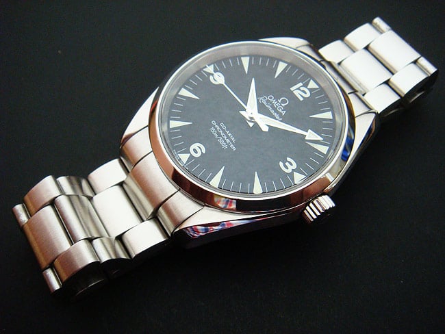 Do inspect the sapphire crystal of any you are interested in closely as it is domed and as such the first thing to hit the door jamb or car window and anecdotally these get chipped more than those on other designs. The bracelet on these uses the button and sliding clasp design favoured by Omega during this era which I find quite fiddly and a little fragile. It is possible to bend the thin joining strip if you are clumsy or sit on the watch. As such many including myself favour a strap.