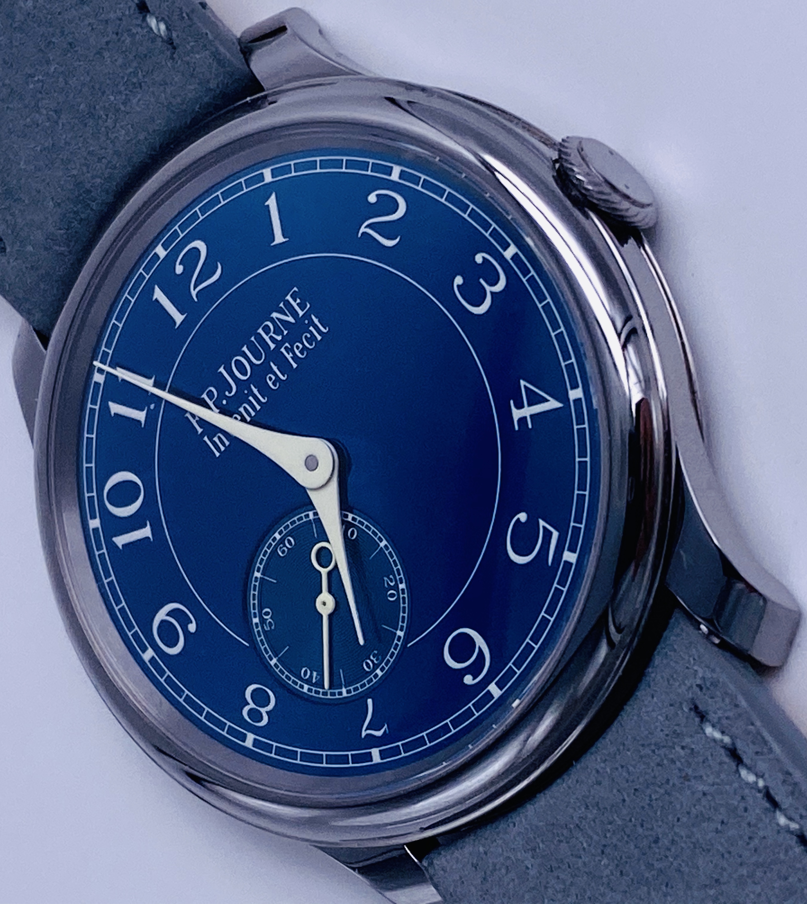 owned one for a year right before prices went ballistic. the blue dial is stunning and very hard to photograph - for me it is my all time favorite blue dial - it changes in sunlight dramatically and constantly depending on how the light hits it. that said, the hands felt cheap to me and i never loved the cream color and i sold it (bad move, they have doubled in price since then) but i love my 38mm resonance far more than this watch