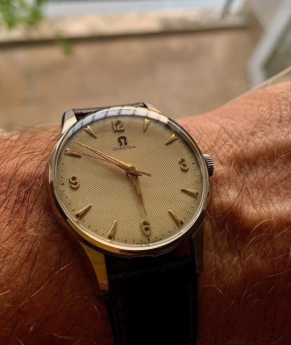 I am new around here. I have a little collection of JLC but I am new at Omega vintages. I have been looking for a vintage hand winding Omega with a honeycomb dial. Usually been looking for original dials I came across many honeycomb dials that had too much patina for me (to yellowish or just too much damaged). I found this one (a redial of course - seller is honest about it) and wanted some extra opinion on it.