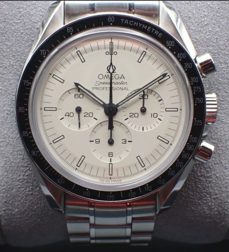 ·I'm looking at a 3573.50 sapphire sandwich modified with the limited edition Italian white dial and matching grey hands. These are omega sourced parts and the watch runs well.