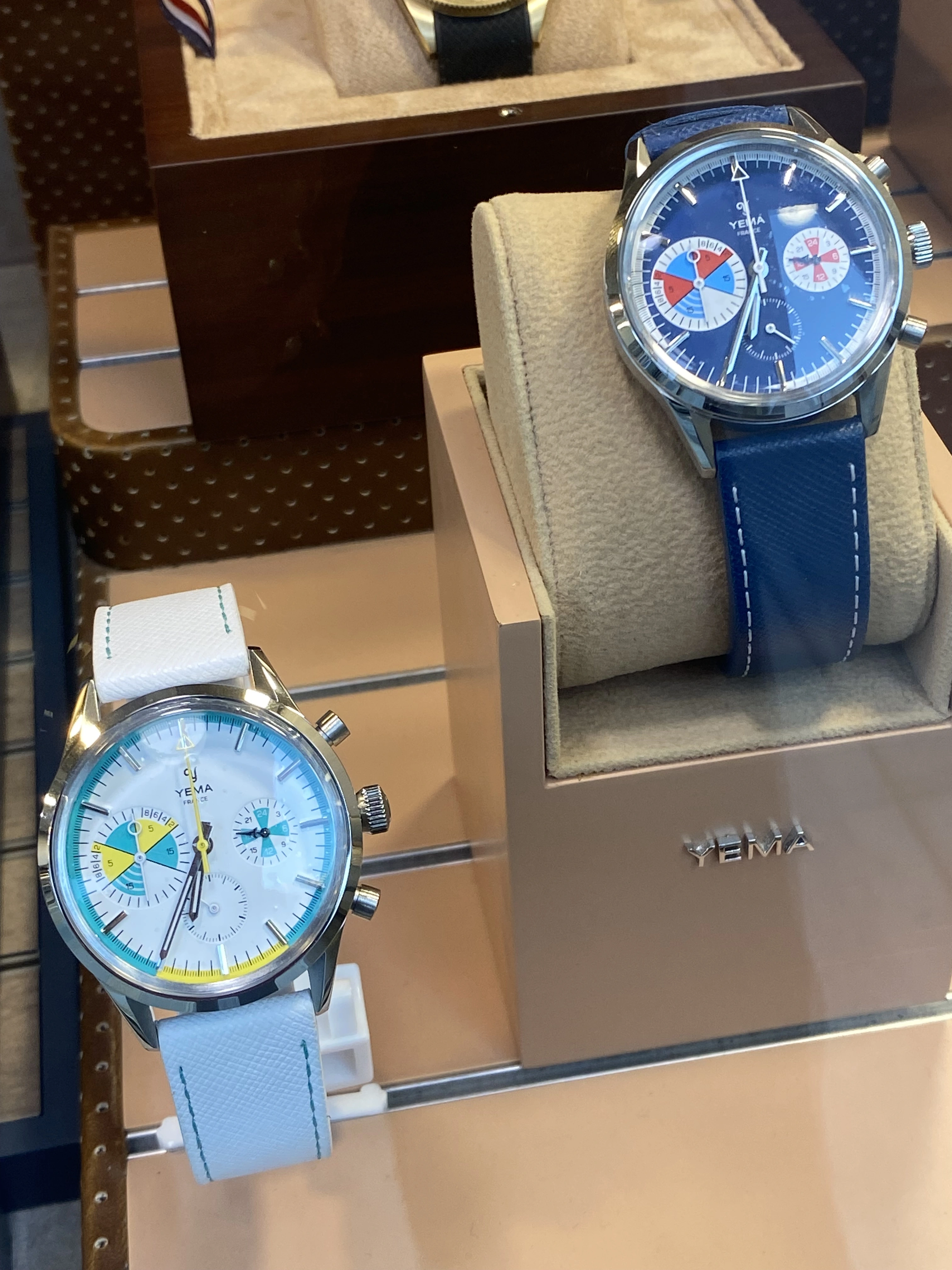Yesterday I saw a store selling Yema reeditions of familiar vintage models. At 38.5mm it’s quite wearable for a man or a woman, the movement is a Seiko Mecaquartz, at a price point of approx 450 euros I thought it’s pretty good value for a cheerful looking daily wearer if you’re not looking to invest 3k to 30k in a vintage example.