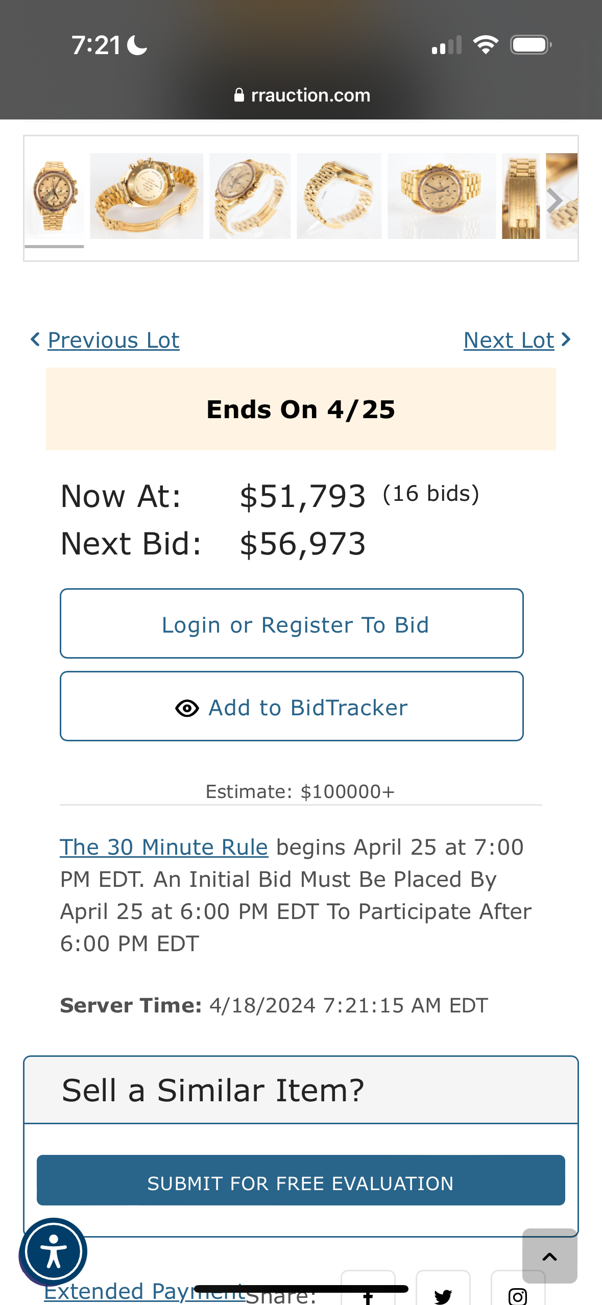 However I think the valuation of $31,000 given by Bellmans included in the sale would be accurate for non-presentation watch in this condition and at this time.