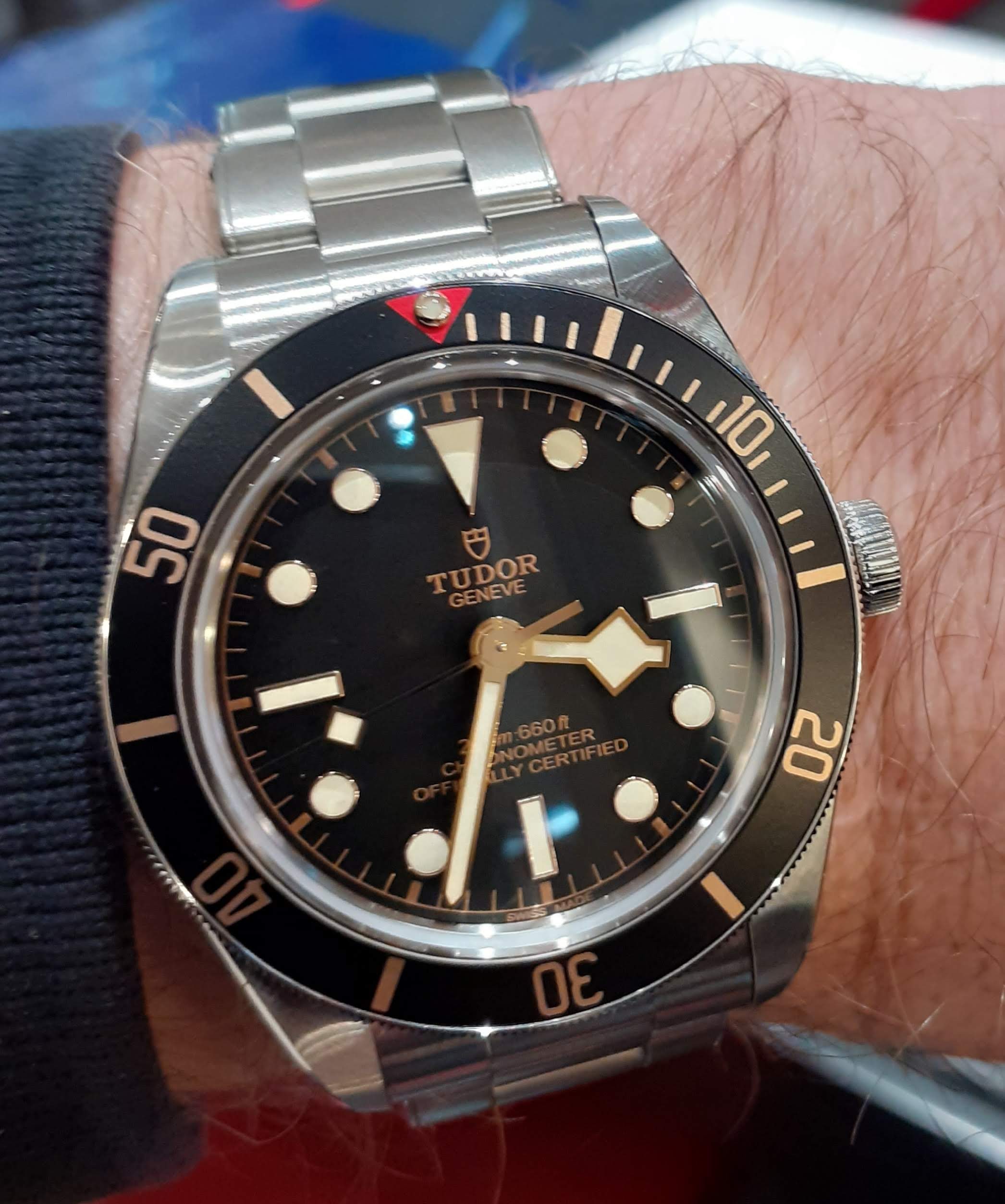 In a pub beer garden yesterday I was petting a Boston terrier and his owner said "Oooooh that's a nice Breitling" he had a Seamaster on and said he also has an AT and something else that I've forgotten and mentioned liking Tudor but hating Rolexes.