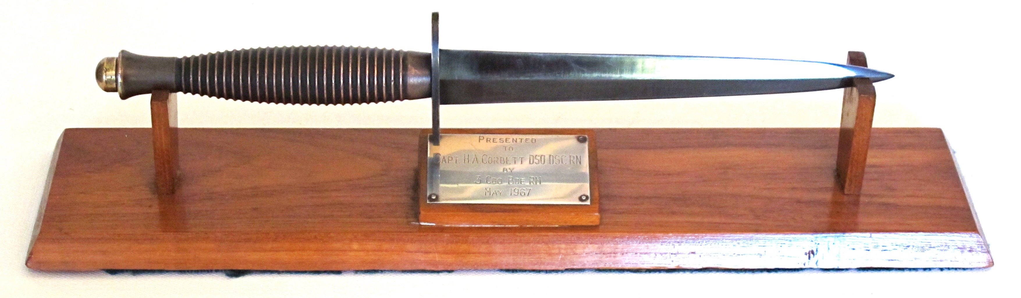 Fearless was used for a wide range of operations involving carrying and supporting various fighting units (including commandos), not all of which would have necessarily been on the public record. The iconic fighting knife of the British Commandos on its special stand would have been presented to him when he left