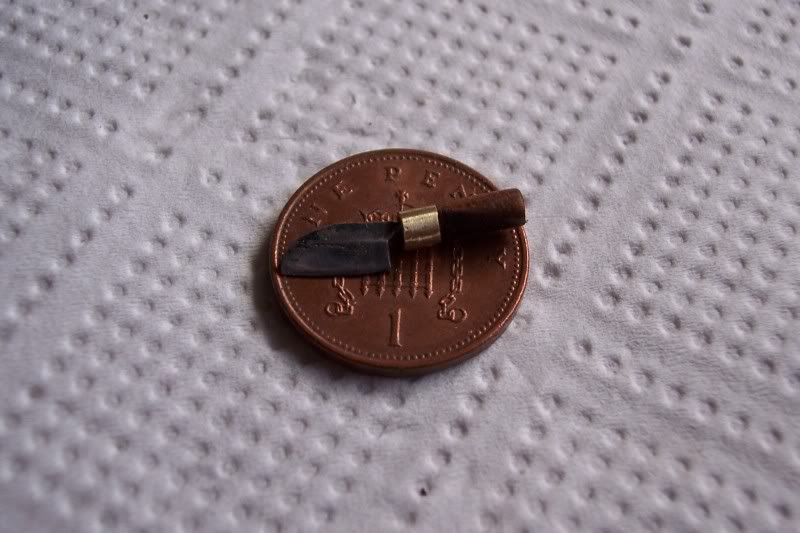 There are several WWII patterns of FS Fighting Knives. The knife I bought for the stand is the 3rd Pattern, which has a copper washed cast alloy grip with a machine forged blade to enable faster production. The grip has 27 concentric rings and is believed to be the design of the Joseph Rodgers firm, of Sheffield. Wilkinson Sword started the production of the 3rd Pattern in 20 October 1943.