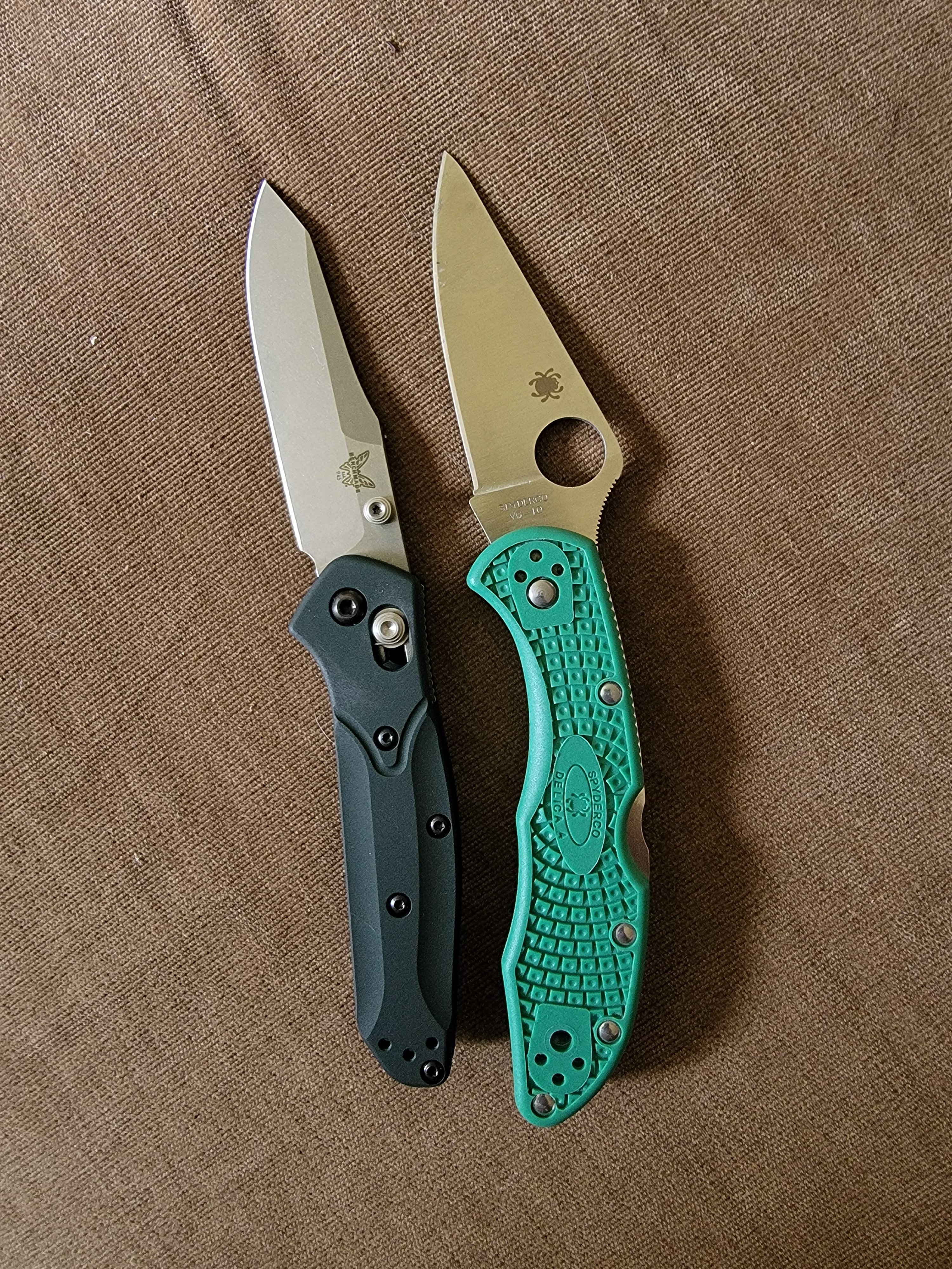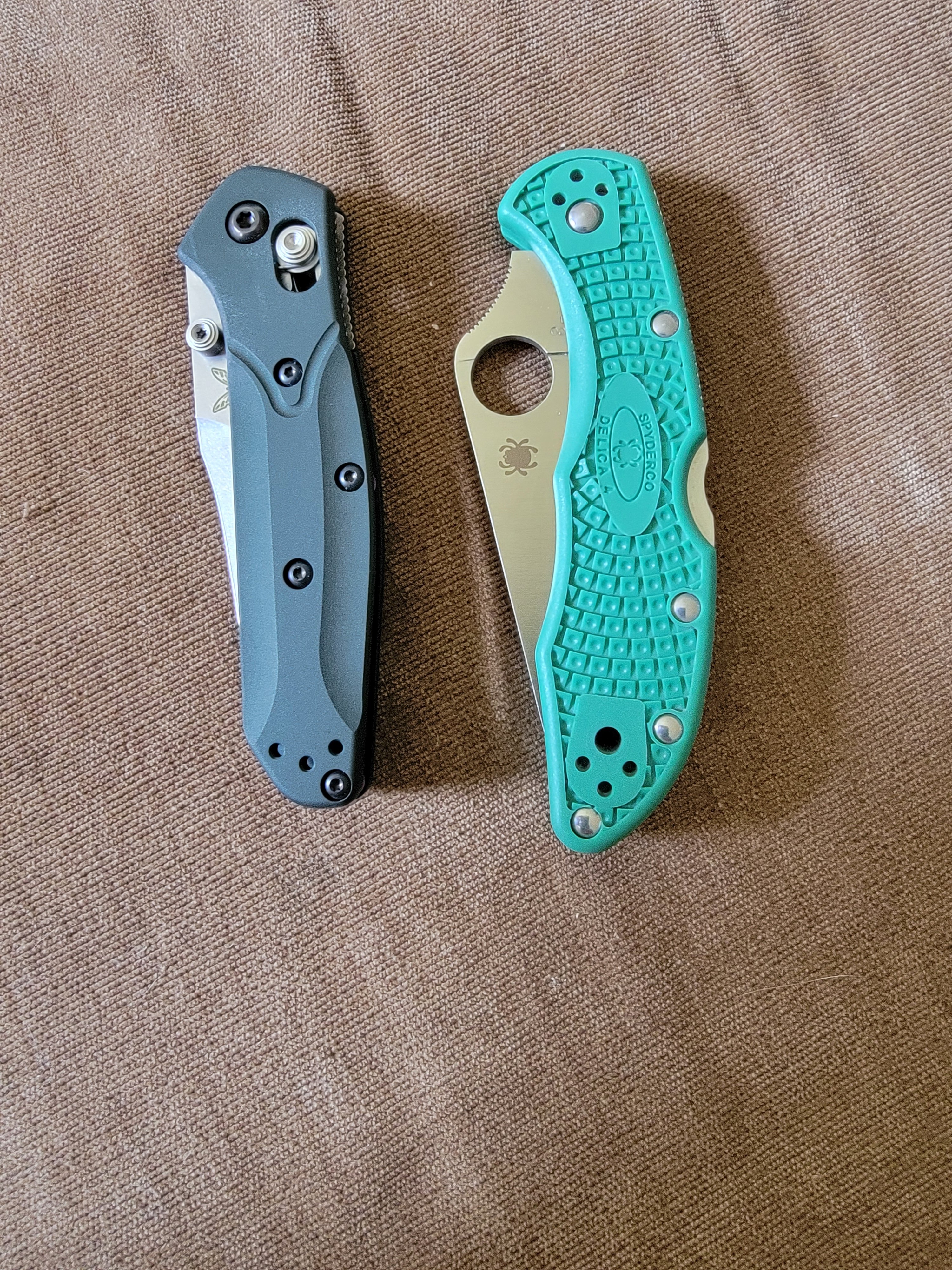 Not sure what to say about the blades, as this is more technical than my knowledge. The Osborne blade appears beefier, maybe even more refined. I think it's likely deceptive as my Spyderco is a flat blade with no bevels. There's more texture on the Osborne. I have no idea which will hold an edge better or what the real differences are besides appearance.