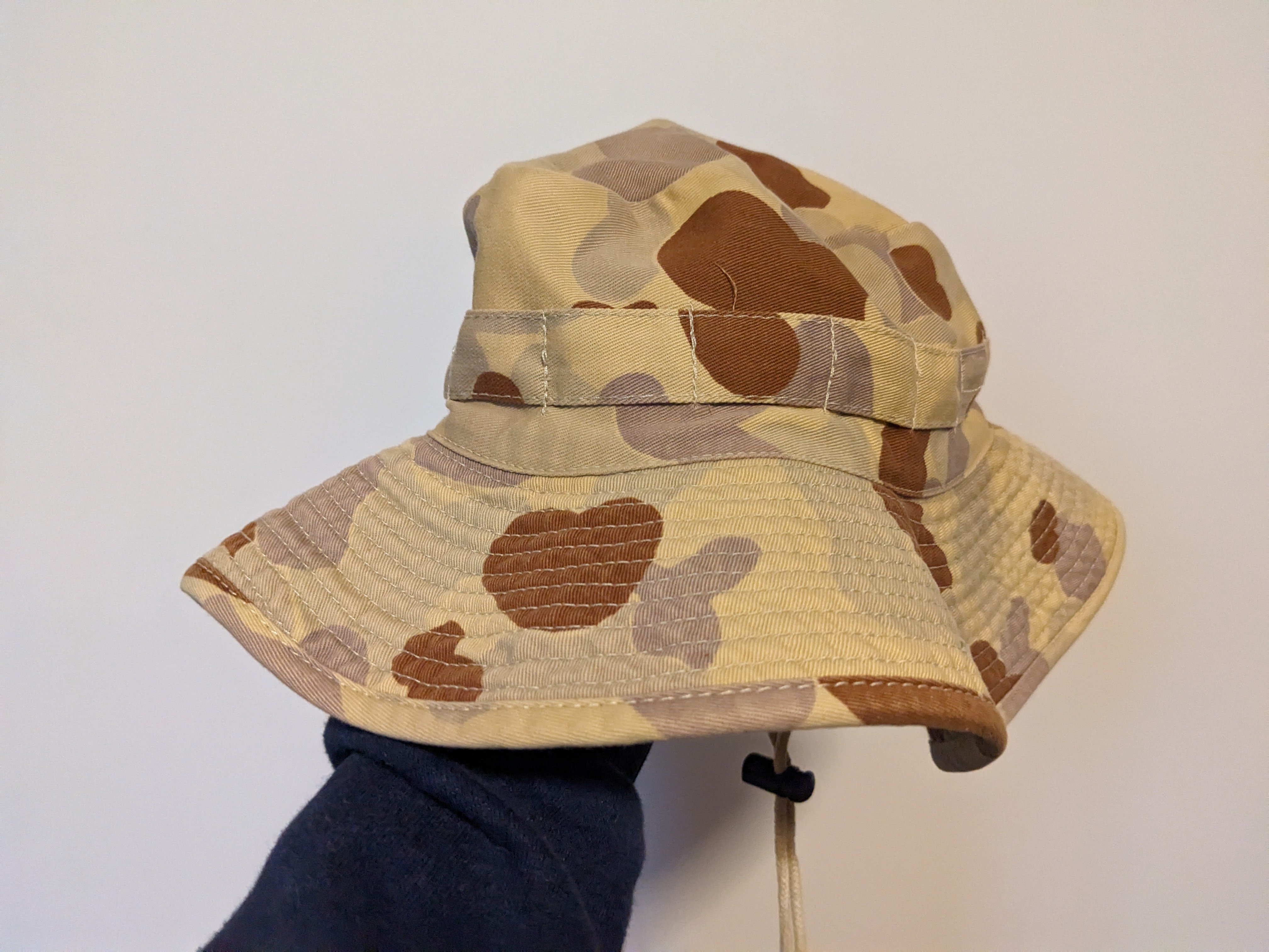 Australian military issue Boonie hat in desert camo pattern.