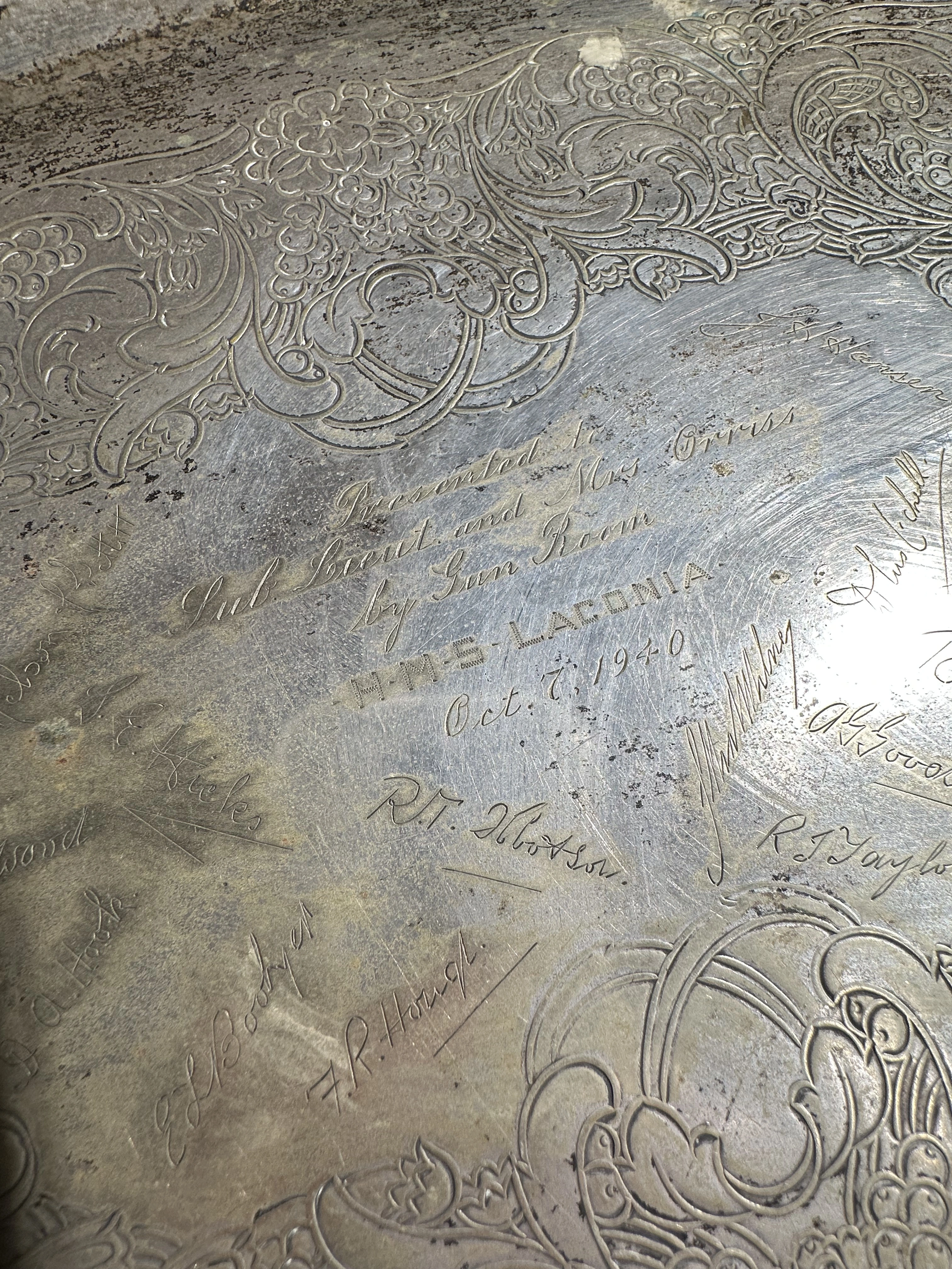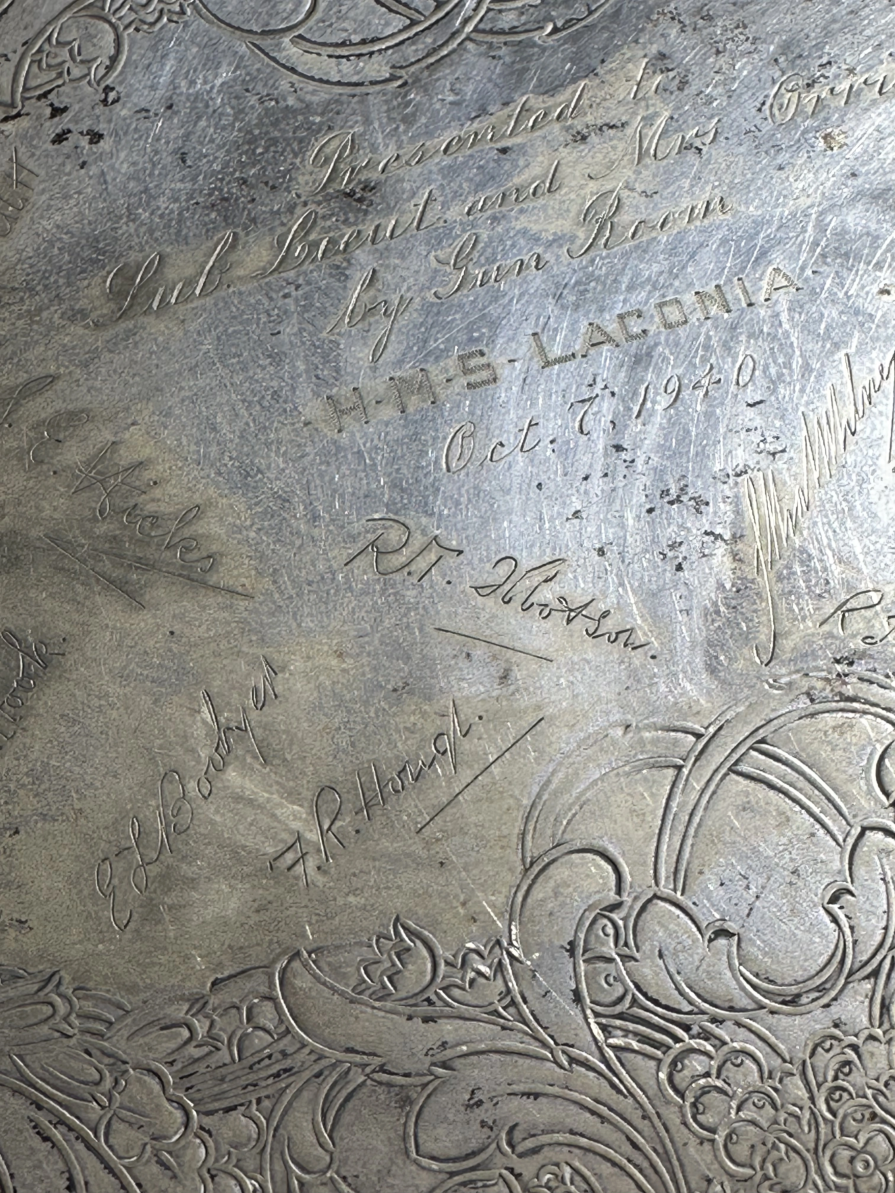 Today, she was polishing a silver plated tray and read the engraving. She not only knew the ship’s name (engraved on the tray), but knew that it had been destroyed during the war.