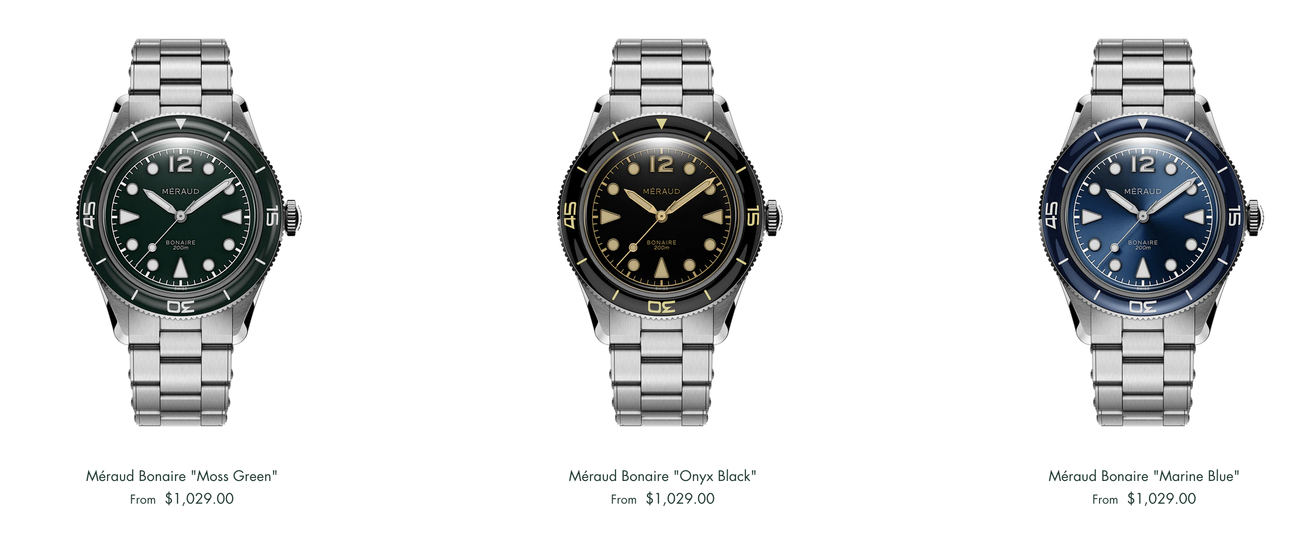 Posts 1,468 Likes 19,522 KeithS ·Dec 15, 2023 It looks like Meraud is back and taking pre-orders for an updated Bonaire. At a quick glance, it looks like the new version has a wider bezel and a slimmer case profile. THe price is a bit steep, but still very tempting...