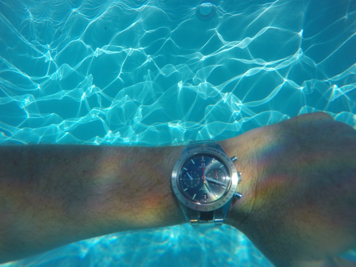 Here is my Speedmaster '57 at the bottom of my pool. But since it was only rated to 10 bar WR, I swim with my watch arm tied to my body, so I don't increase the pressure past its WR, while in 6 feet of water. Pretty much just swim in circles and looks like I'm drowning most of the time, but I would rather that then risk it