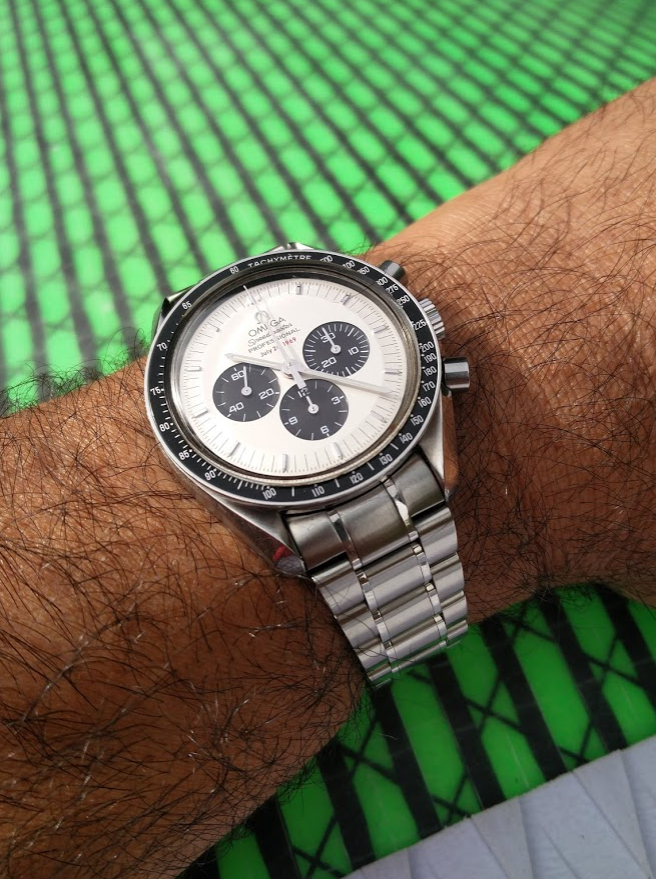 A well-worn and aged Speedmaster looks good! It looks right. And the only way to get there is through time (or buying used). The only way to give it the exposure that it needs, is to wear it. Sometimes that means encountering the universal solvent.