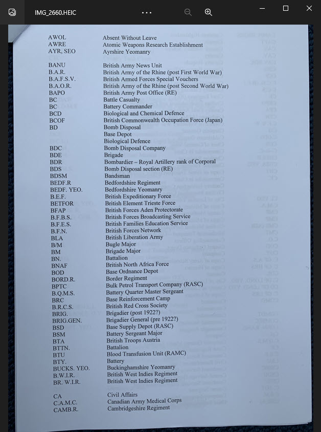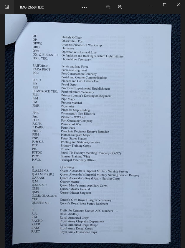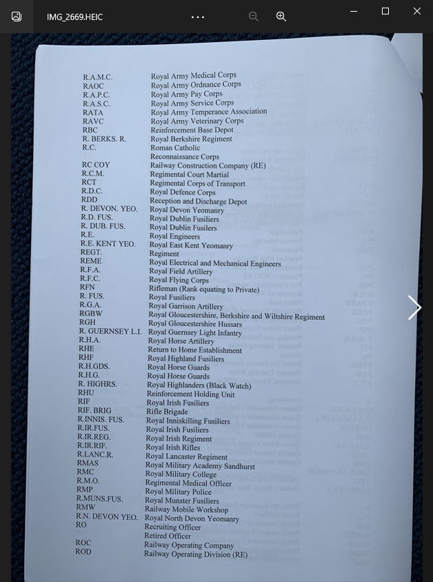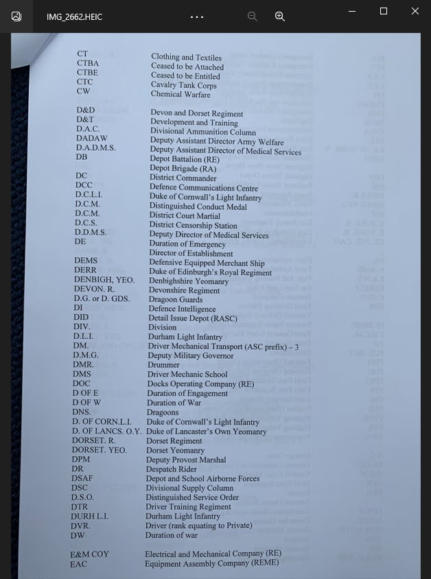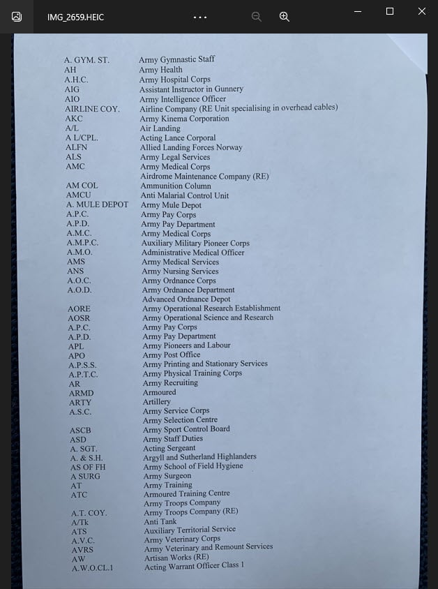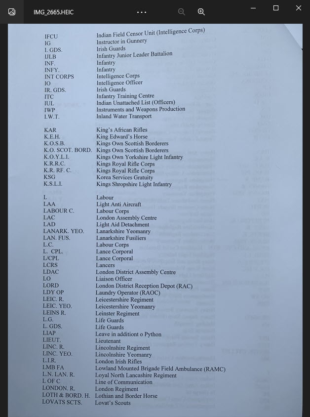 These are tables for the abbreviations specifically used by the British Military for their personnel records.