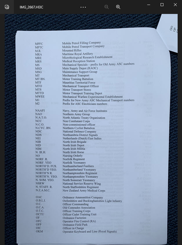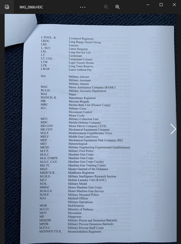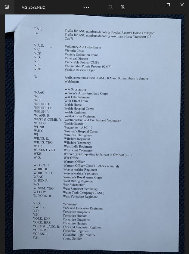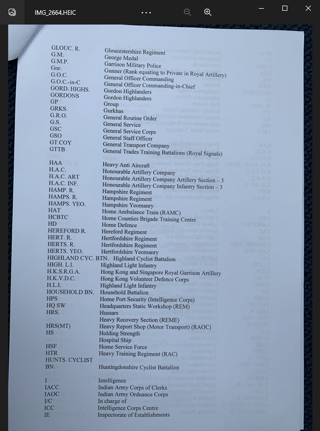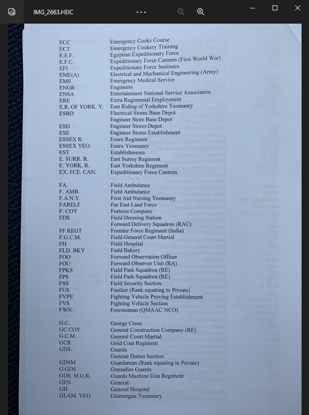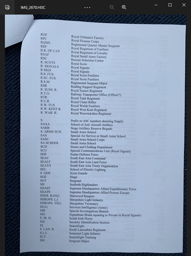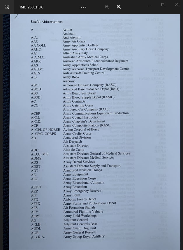 These are tables for the abbreviations specifically used by the British Military for their personnel records.