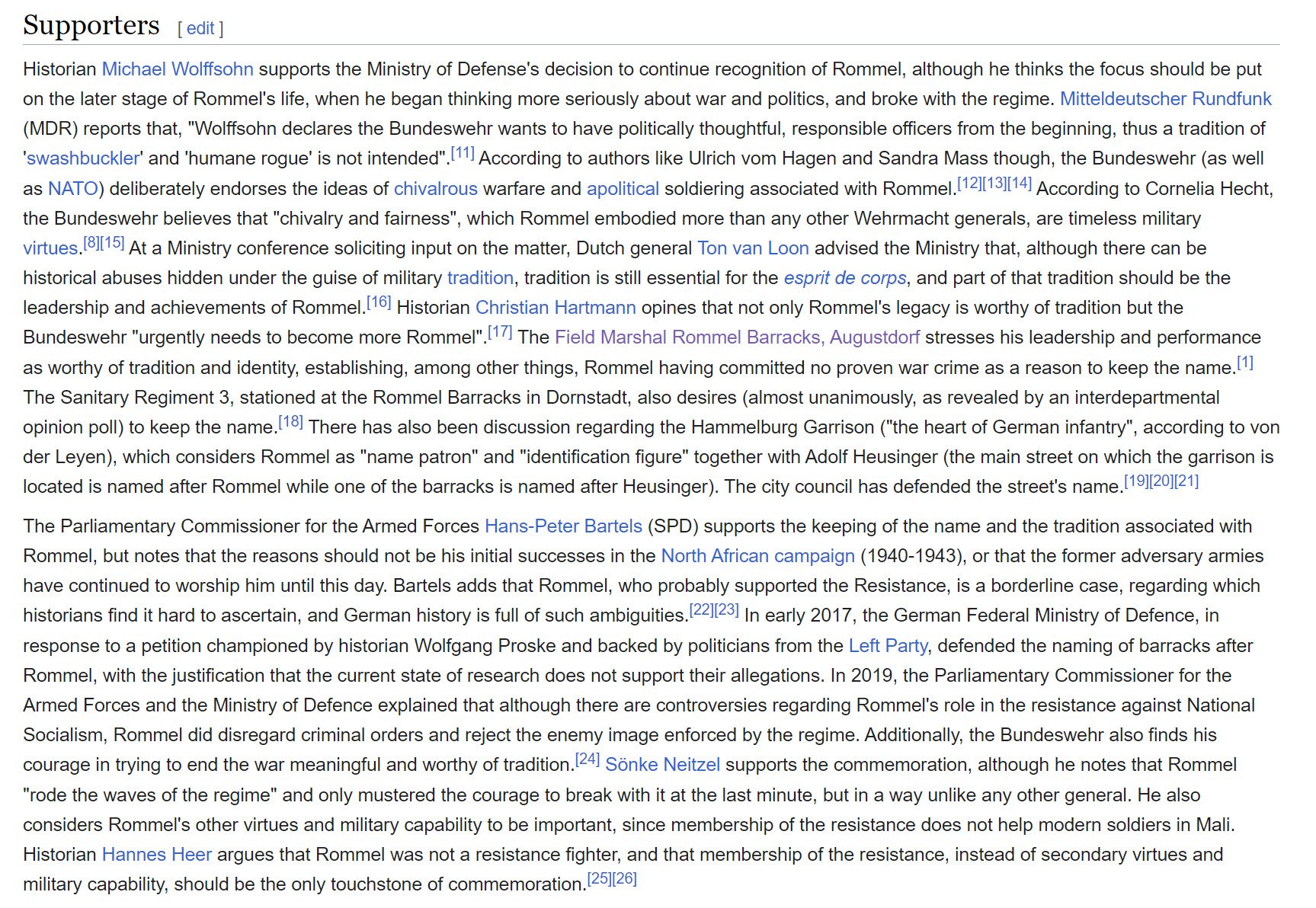 The Afrika Korps gained a reputation by the Allies and by many historians as being magnanimous with Allied prisoners of war; since then many historians have used the term "War without hate" to describe the North African campaign as a whole.[9][page needed] However, Jewish people suffered during the fascist regime laws, and the local administration took part in the Holocaust deporting some thousands of Jews to Italy, under the supervision of Generalfeldmarschall Albert Kesselring, Wehrmacht commander of the Axis in the Mediterranean theater. Others suffered from forced labour and ill treatment at the hands of the Italian administration, including an Schutzstaffel and SD detachment. Robert Satloff described in his book Among the Righteous: Lost Stories from the Holocaust's Long Reach into Arab Lands that as the German and Italian forces retreated across Libya towards Tunisia, the Jewish population became victims upon which they released their anger and frustration. According to Satloff, Afrika Korps soldiers plundered Jewish property all along the Libyan coast. This violence and persecution only came to an end with the arrival of General Montgomery in Tripoli on 23 January 1943.[10] According to Maurice Remy, although there were antisemitic individuals in the Afrika Korps, actual cases of abuse are not known, even against the Jewish soldiers of the Eighth Army. Remy quotes Isaac Levy, the Senior Jewish Chaplain of the Eighth Army, as saying that he had never seen "any sign or hint that the soldiers [of the Afrika Korps] are antisemitic."[11]. The Telegraph comments: "Accounts suggest that it was not Field Marshal Erwin Rommel but the ruthless SS colonel Walter Rauff who stripped Tunisian Jews of their wealth."[12]