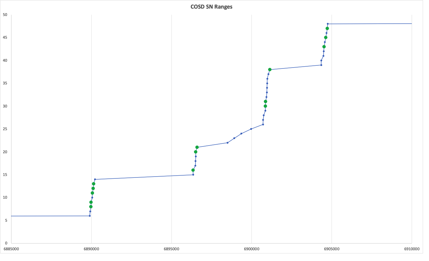 ·It only supports the premise that the serial range is correct. Not that all the members of the correct serial number range data set are correct. It's fine graph by the way, but again, only good for showing the data clusters.