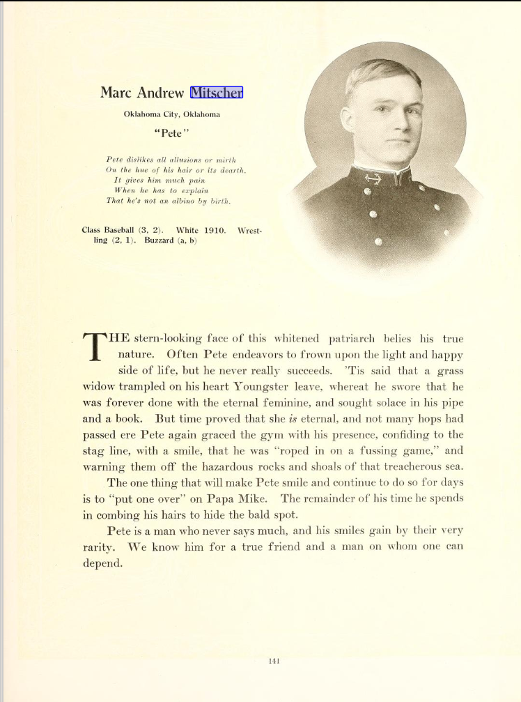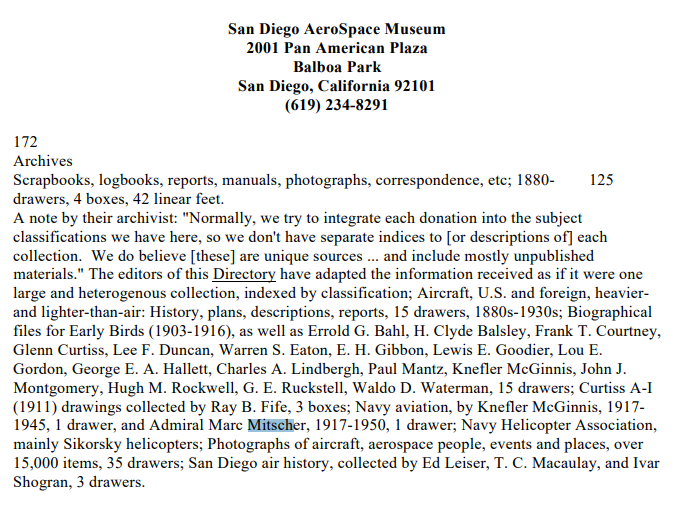 Some other interesting facts. Mitscher was an evaluator of advancements in war plane design while he worked for the BuAero and BuNav. There are many examples in his files of this type of trip.