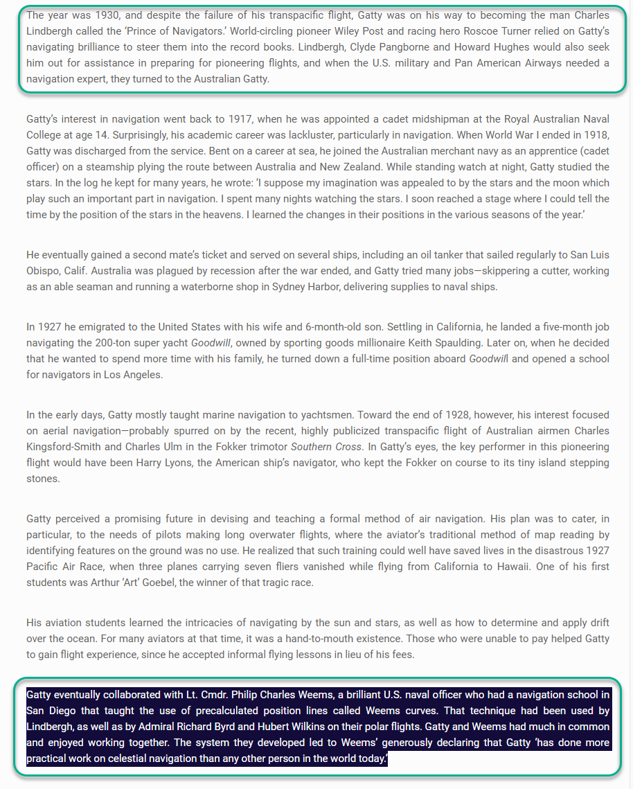 By the way, if you are interested in who trained the Doolittle Raiders in Celestial Navigation. It was Pan Am. Would it be possible for the captain of the USS Hornet with months of planning and preparations for the Tokyo Raider's mission to not know how the Doolittle pilots would navigate from the Hornet and land in China.