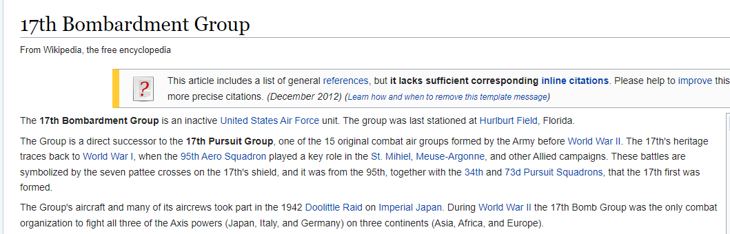 The 17th Bombardment Groups is the Doolittle Raiders.