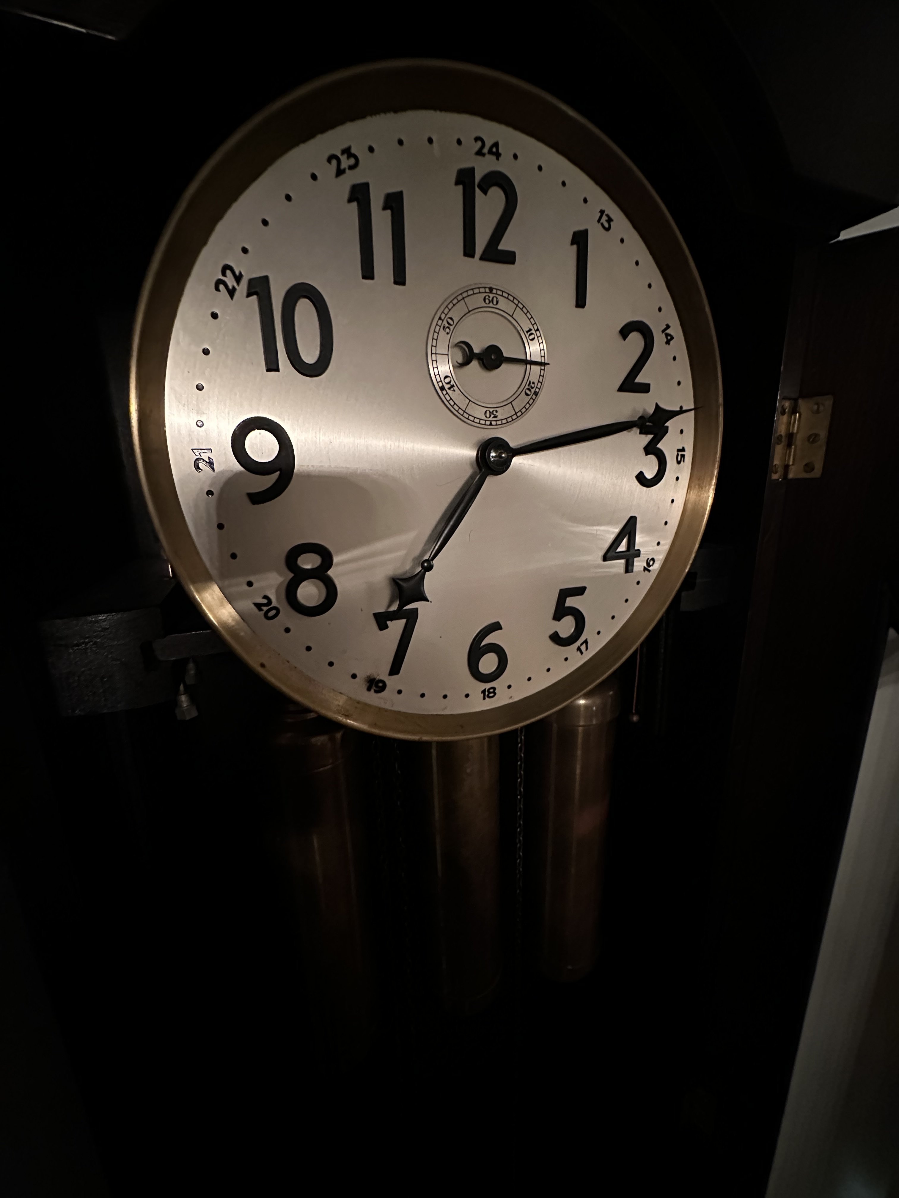Sunday evening routine since 2016. Pulling the chains, fine tuning the pendulum.