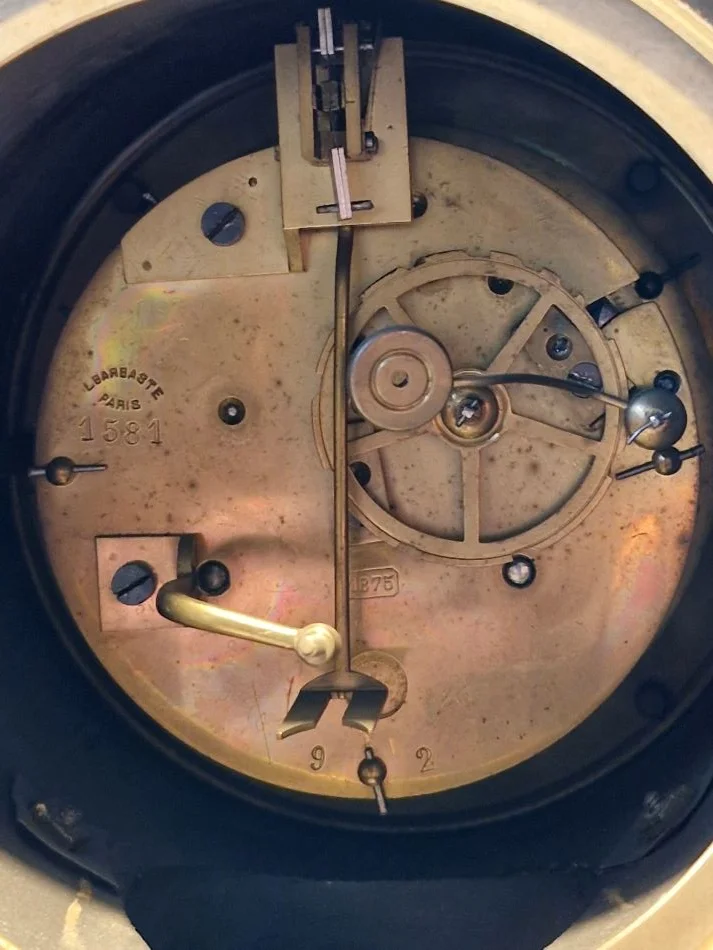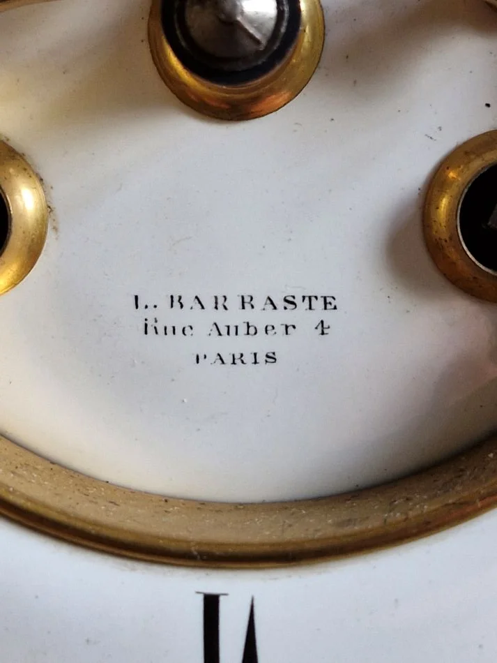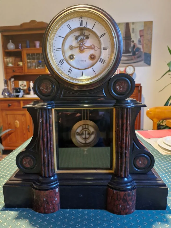 You might like this bracket clock. It raised my attention, as soon as I noticed that it has an Ellicott pendulum (a temperature compensated device invented by Ellicott). It was up for auction and nobody wanted it, since these French marble clocks are not really sought after in these times. So it was up for grabs. And they are really heavy. When fetching it, the surprise and joy was on my side. Really near perfect condition of case, dial and movement, of course working without any fault (a lubrication service always is a good idea), the movement numbered and even a numbered pendulum, the numbers matching. This is really rare.