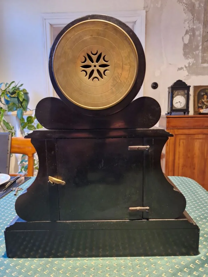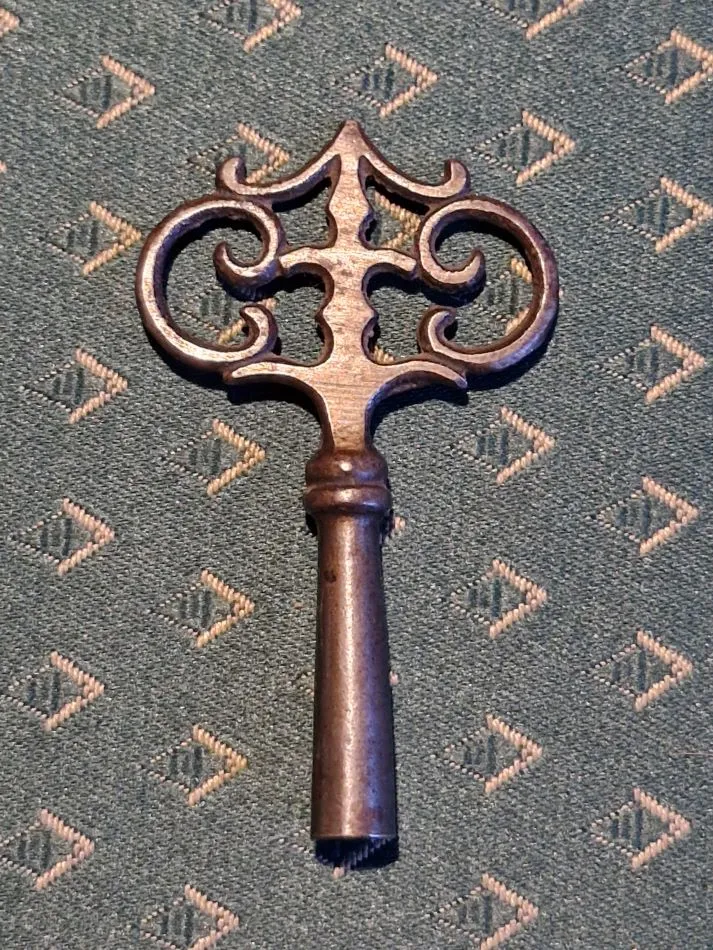 And even with the original winding key! This was quite a struggle though, because it was not found initially and the folks at first seemed reluctant to search for it. But with gentle pursuation it was fould, it had been misplaced with another clock (neither fitting geometrically thereto, nor in style). Here it is.