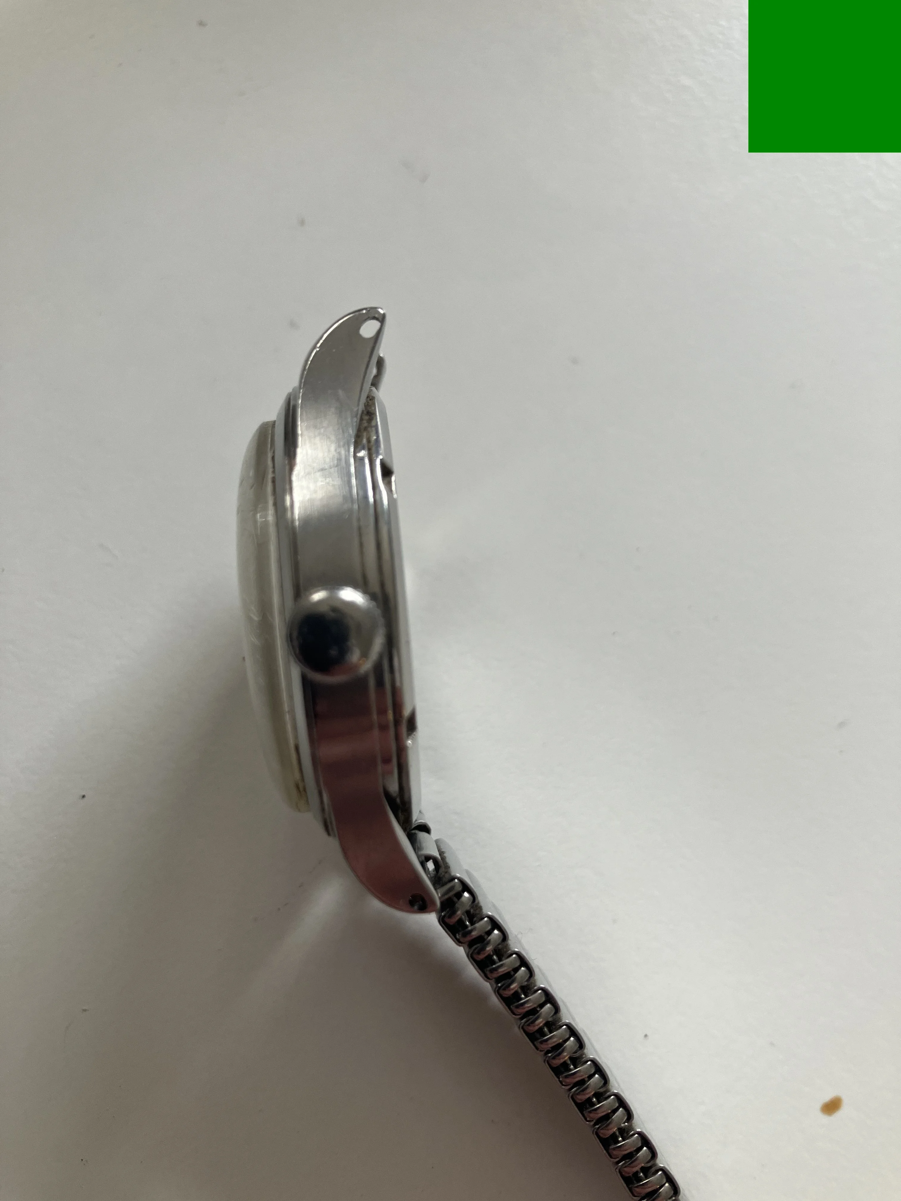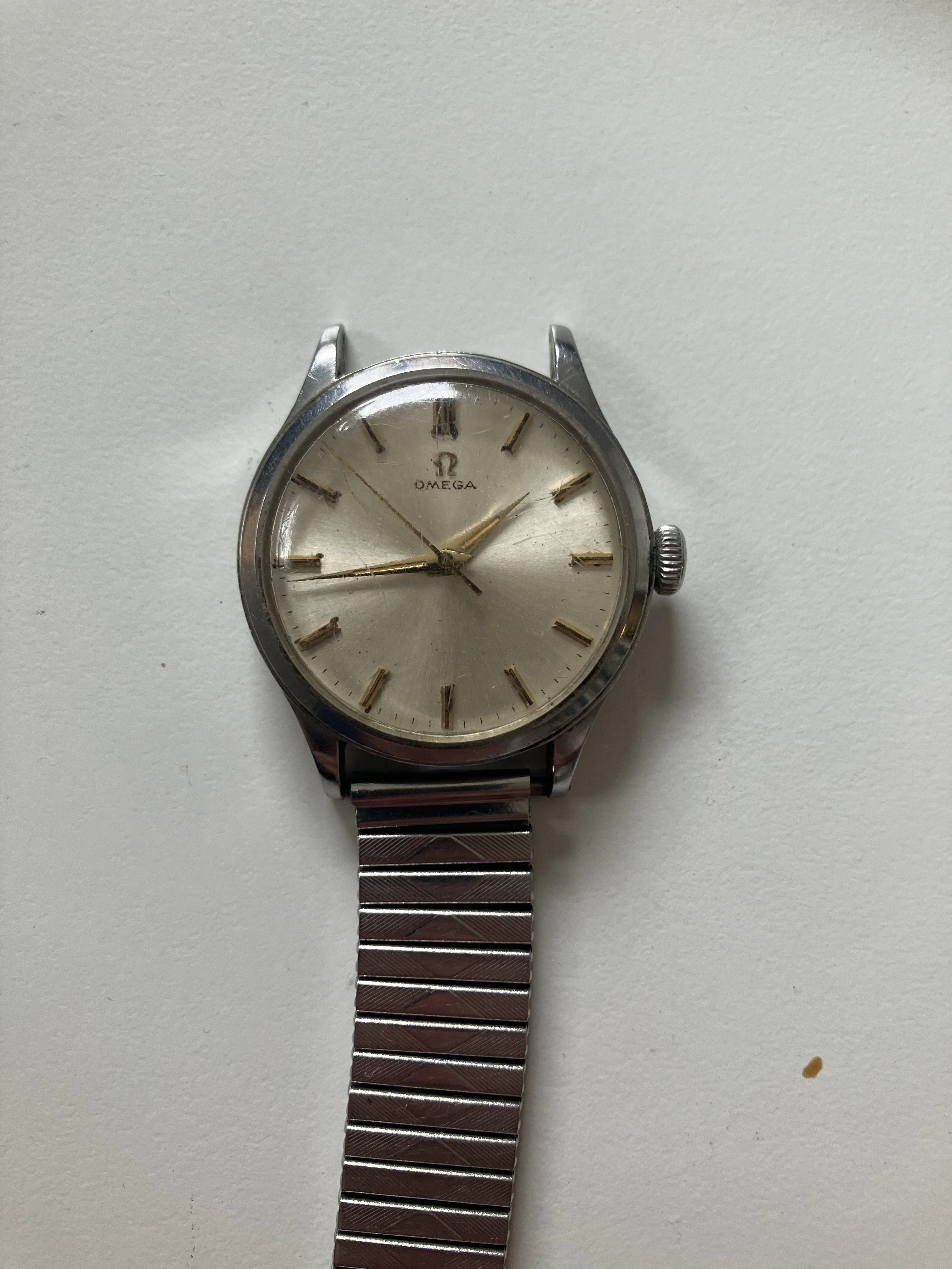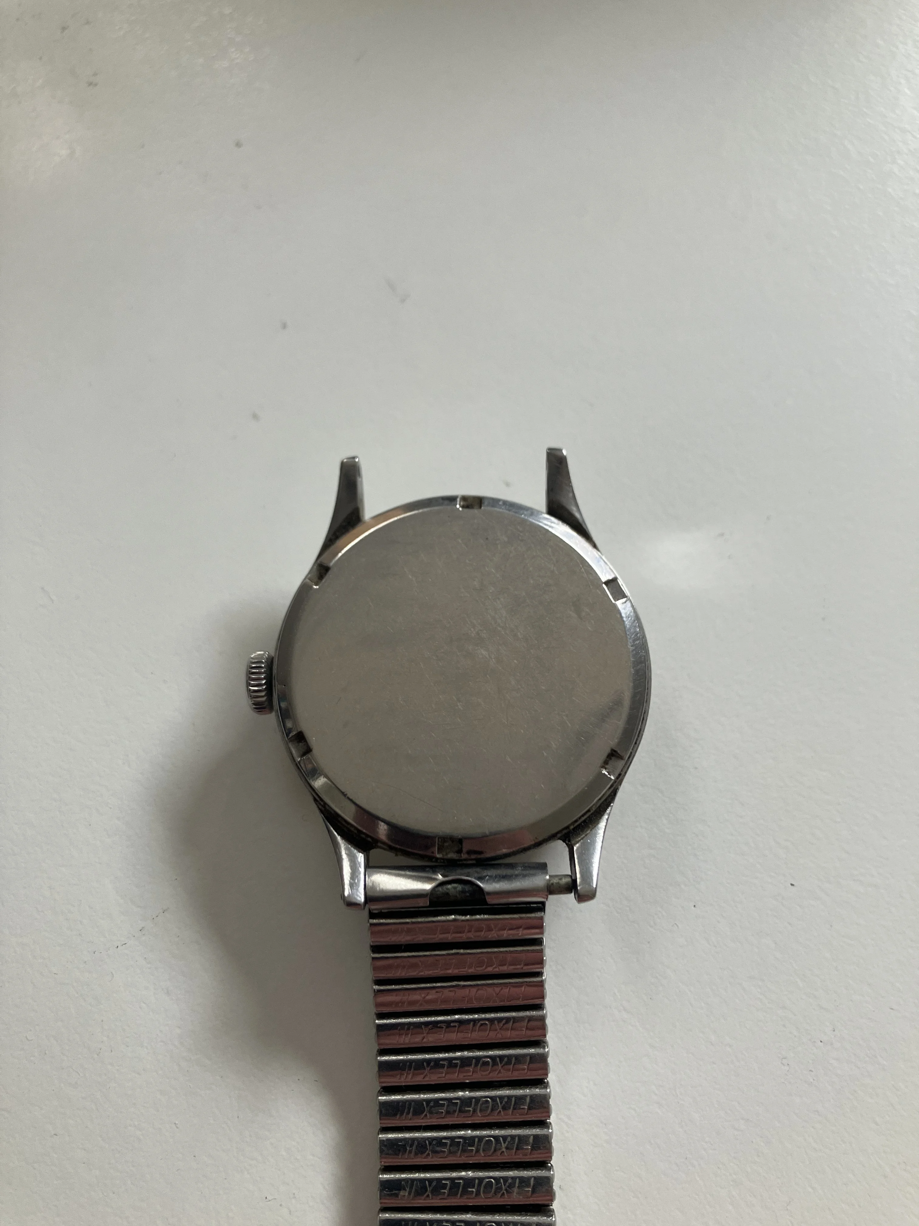 ·I have been given this watch, which has been in a cupboard for at least 40 years. The crown is fairly stiff, but I can set the hands (no hacking seconds), and I was able to wind it and it ran for a day or so, so it works. A couple of the lug holes look a little marginal, so it's been worn plenty. I can't take the back off, though I'll take it to someone soon.