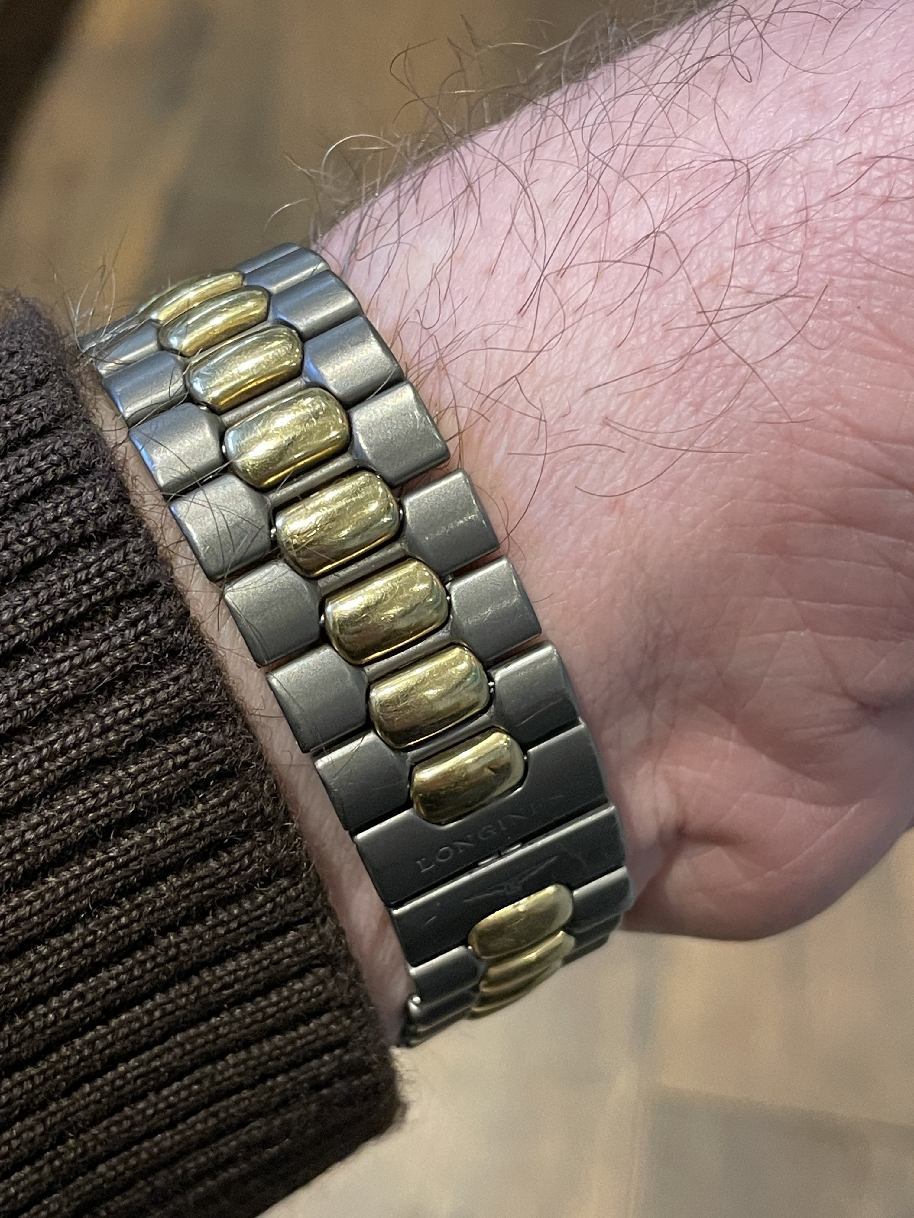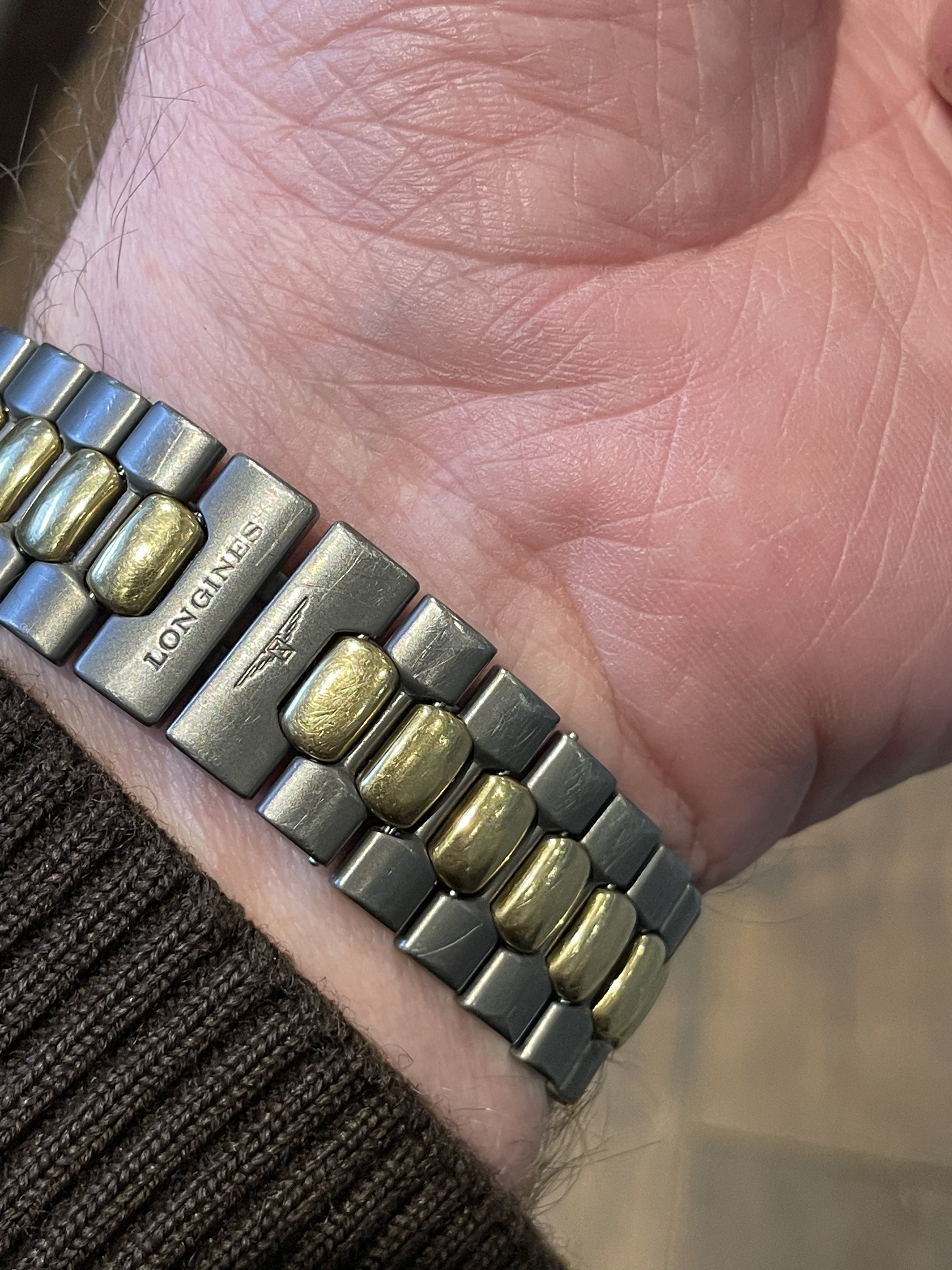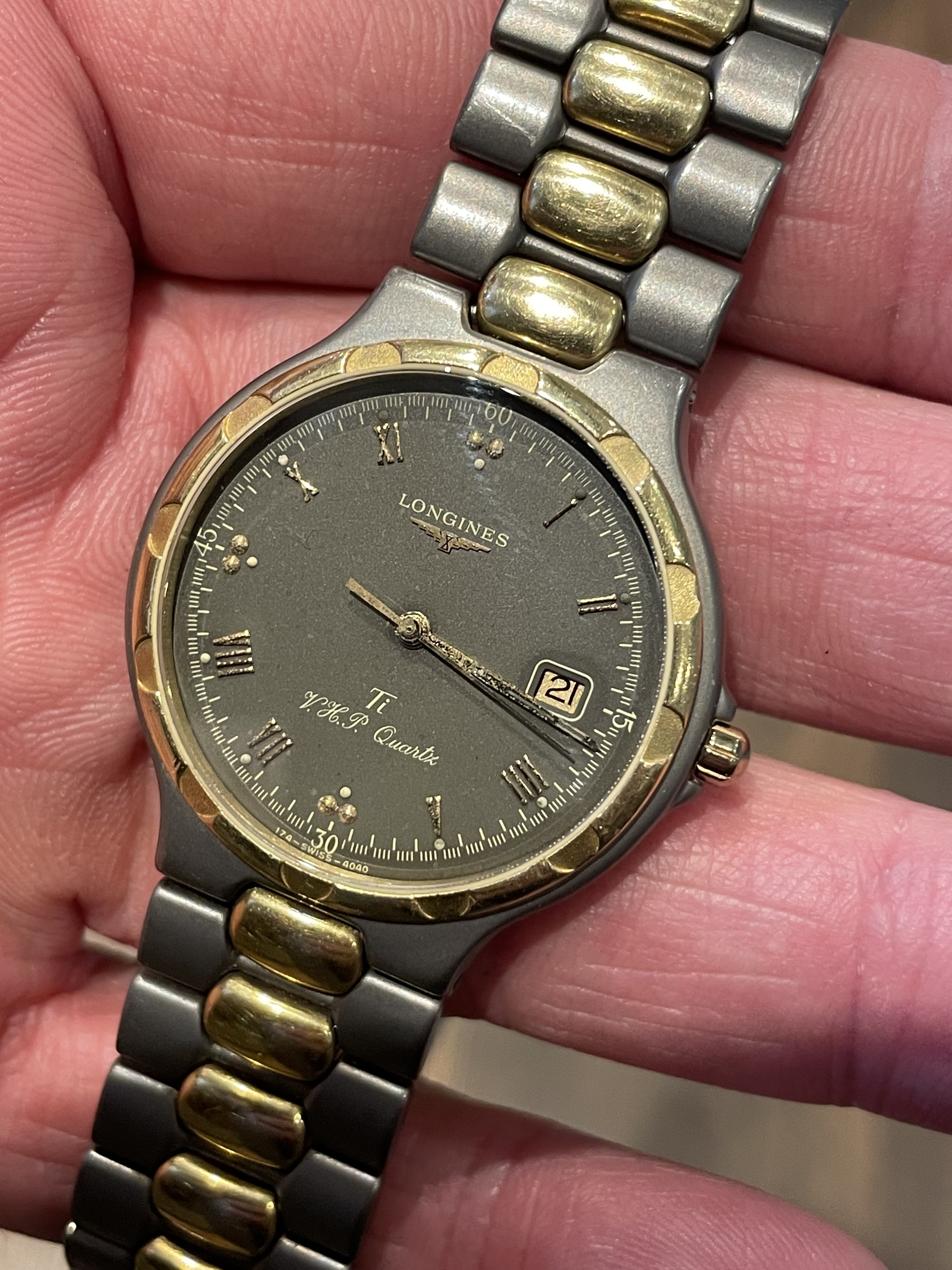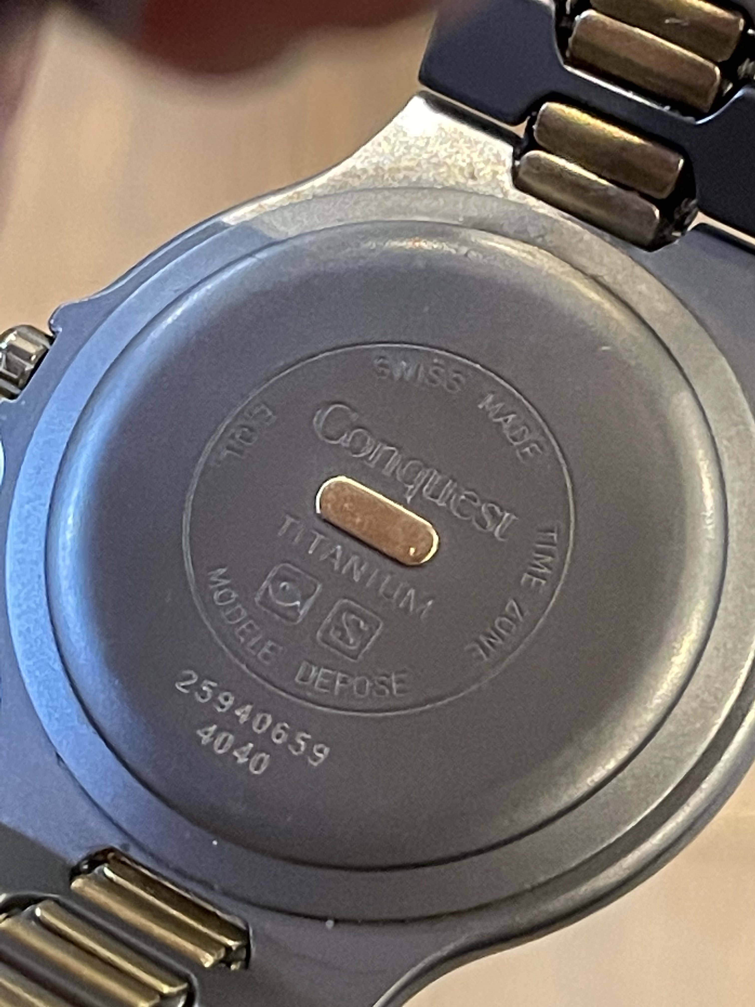 ·Just picked up this titanium Conquest and valued it as being gold plated with titanium. Looking at the gold parts on the watch they do not seem plated but solid gold bezel and solid gold mid links.