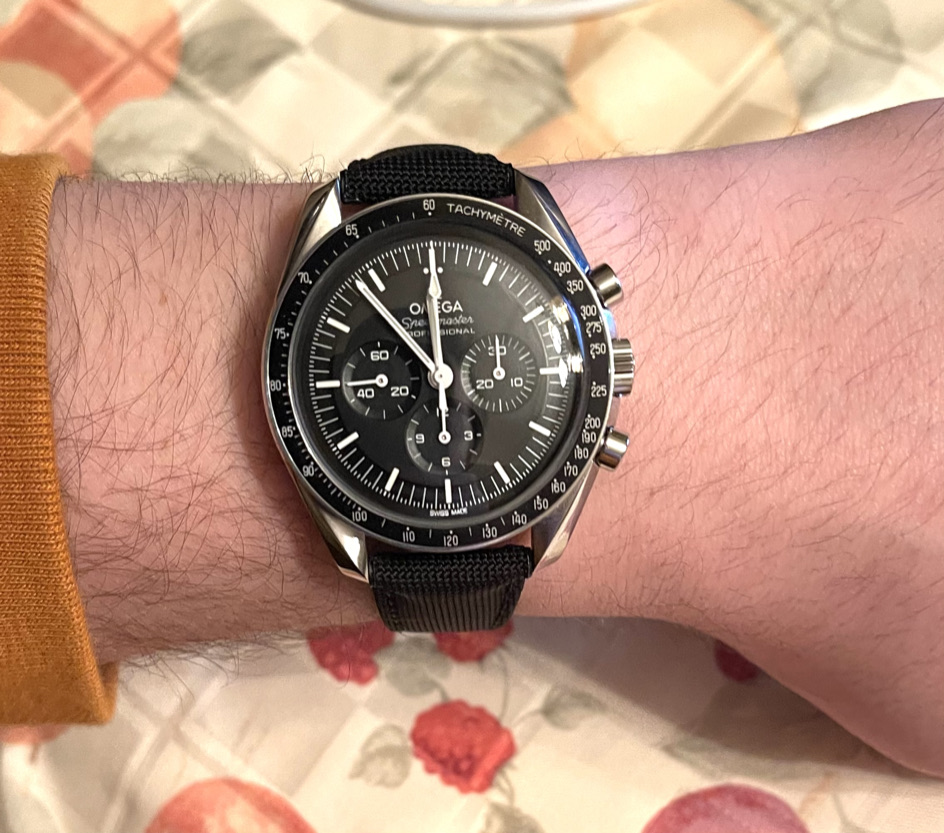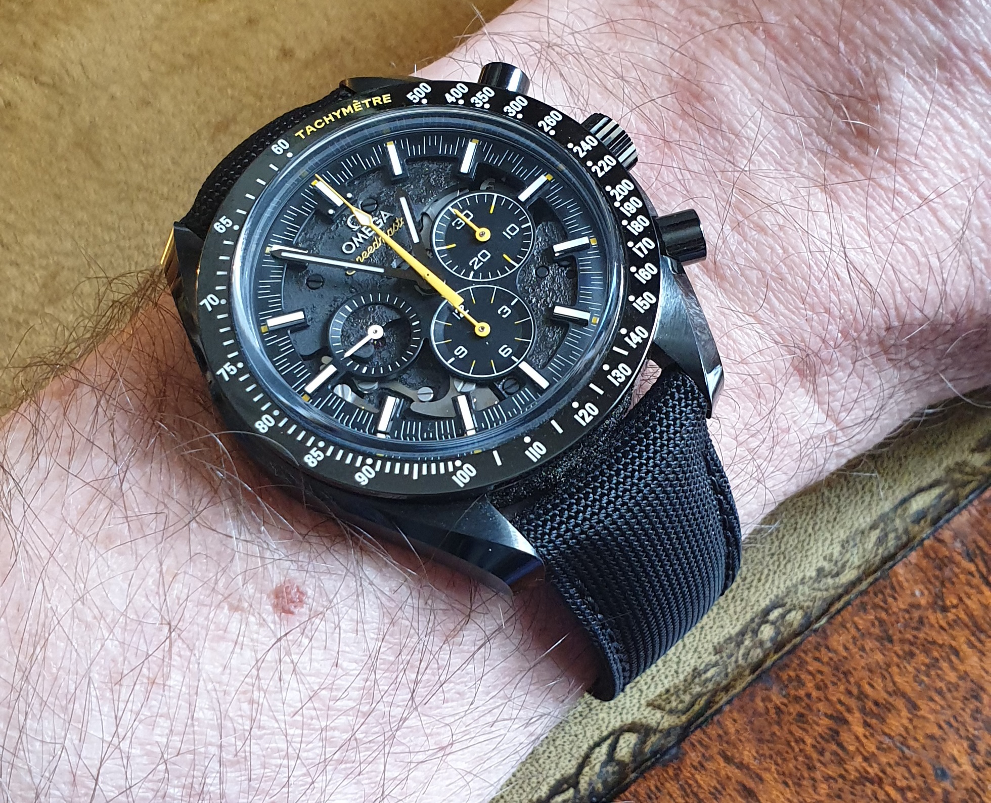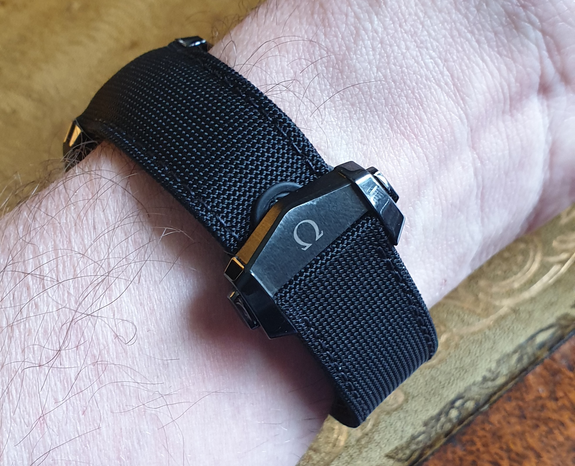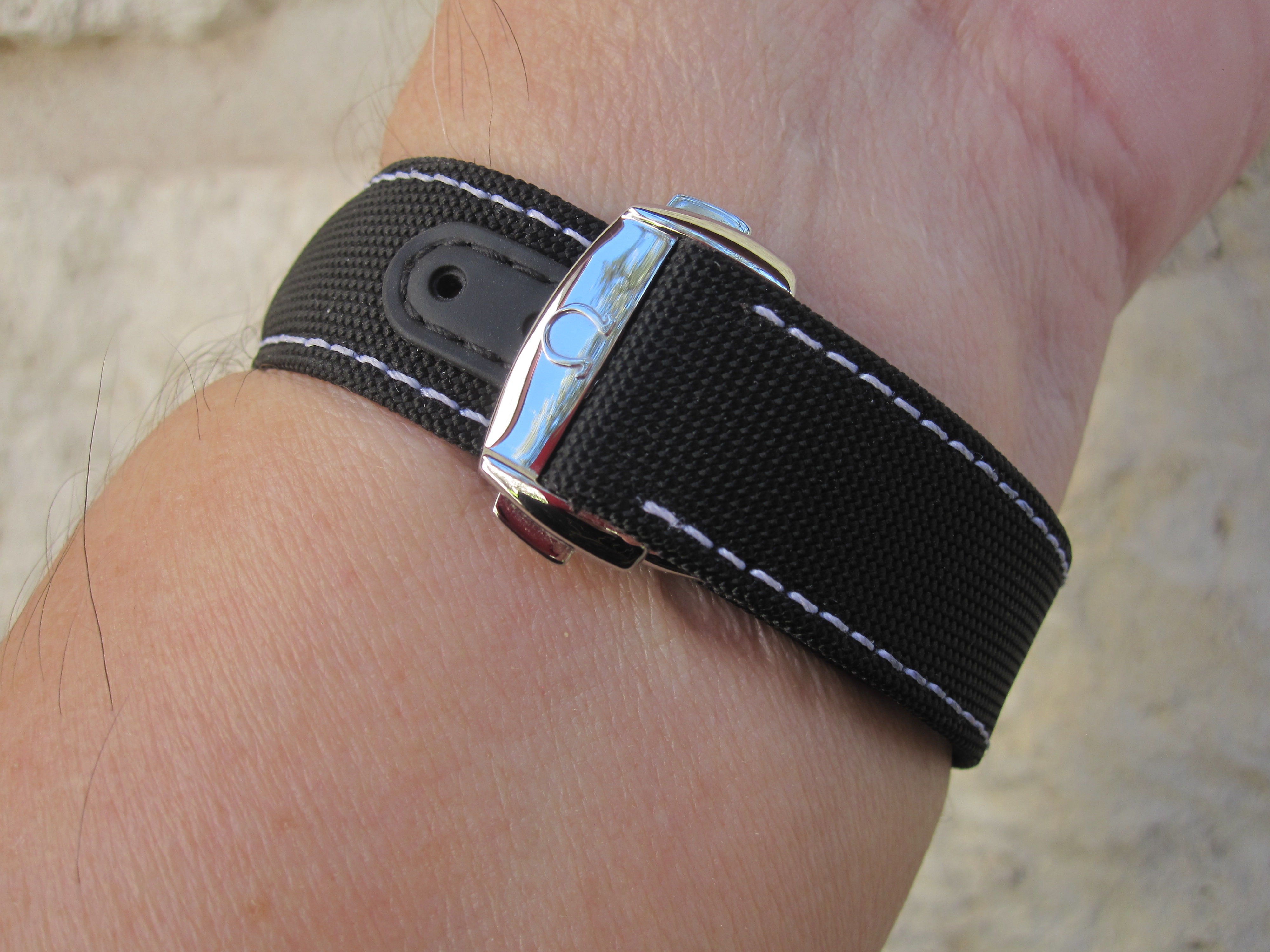 I think the cordura is the same material used on a lot of Omega straps (like Snoopy, DSOTM). It feels mostly smooth with a small bit of texture. The underside of the strap, the part that sits on your skin, is leather so it's very comfortable.