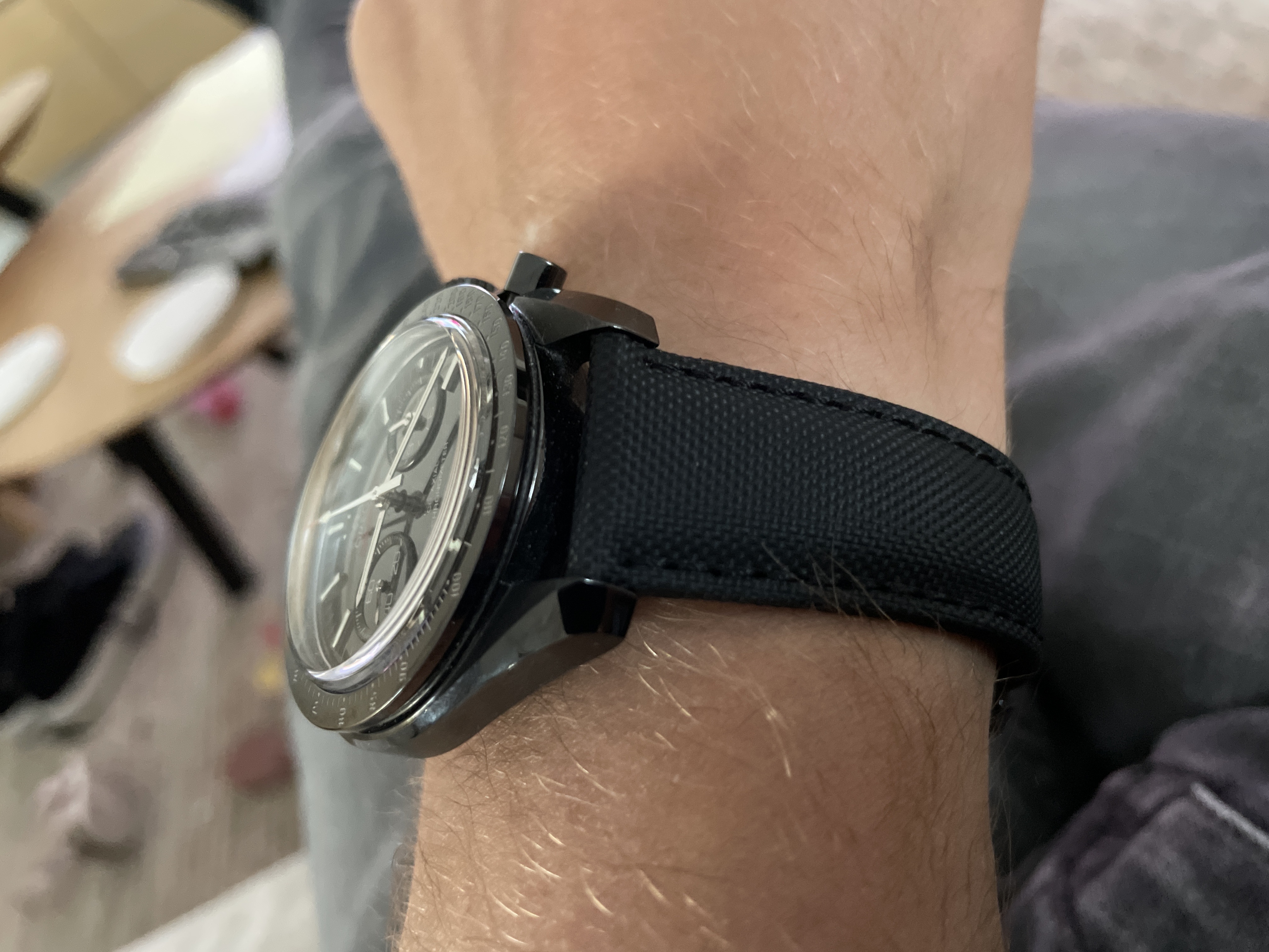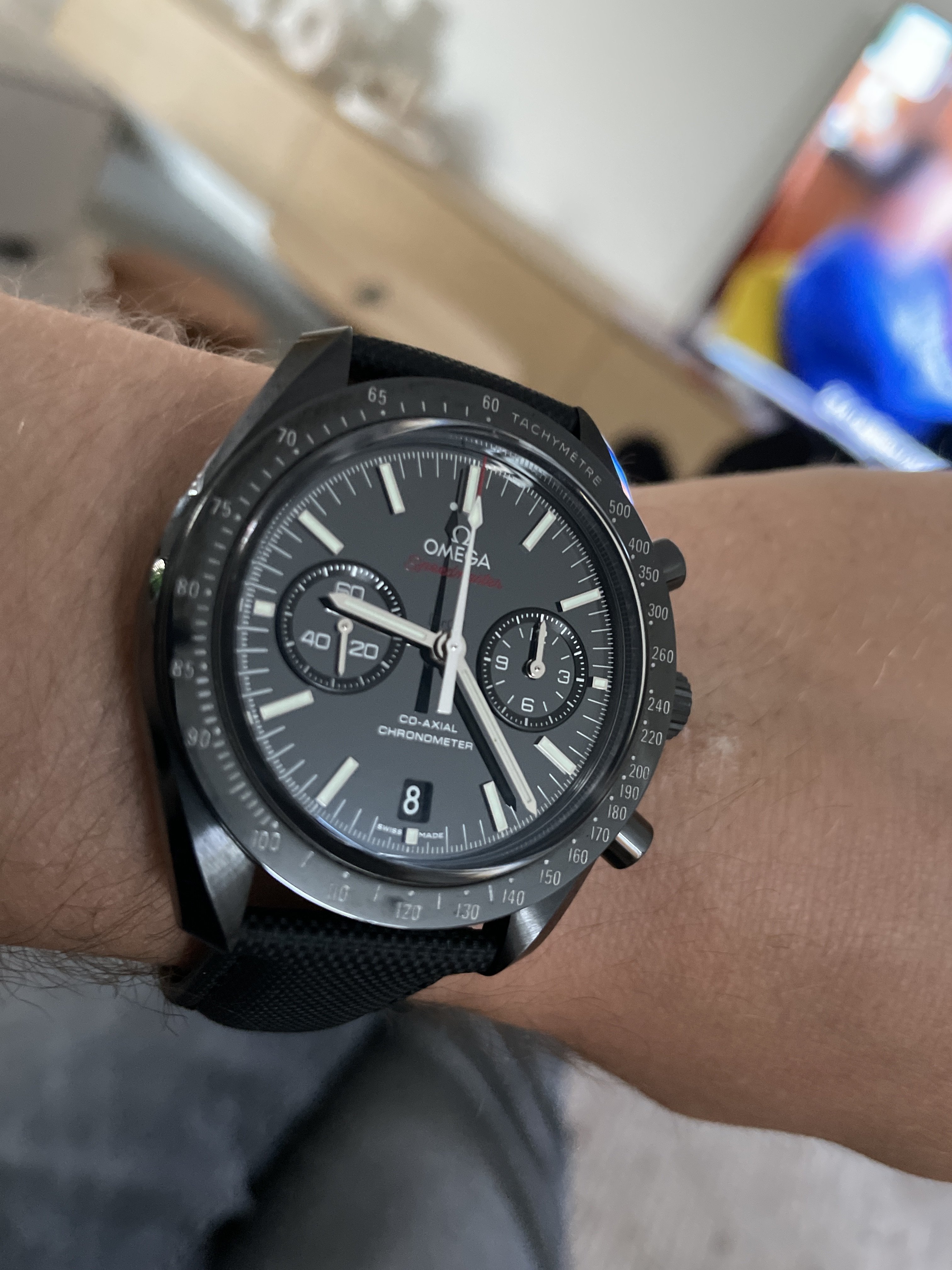 I originally bought the new hesalite speedy on the bracelet, but switched to the nylon strap just because I really like the look. The strap is great, extremely comfortable and just looks cool. Even though the new bracelet is light and comfortable, wearing the watch on the nylon makes you forget you are wearing a watch while also giving the watch a completely different feel.